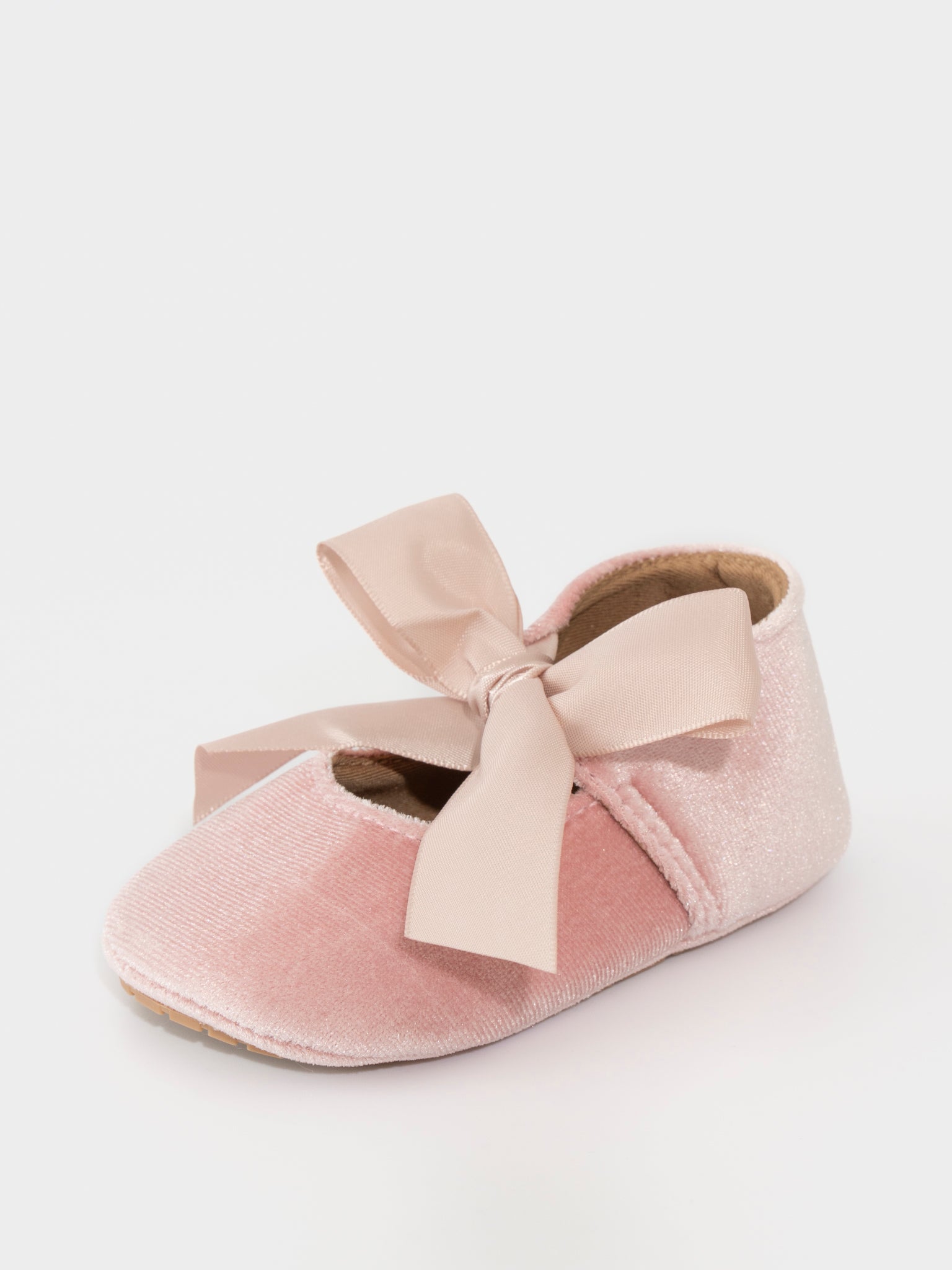 Velvet Ribbon Bow Baby Shoe Dusty Pink