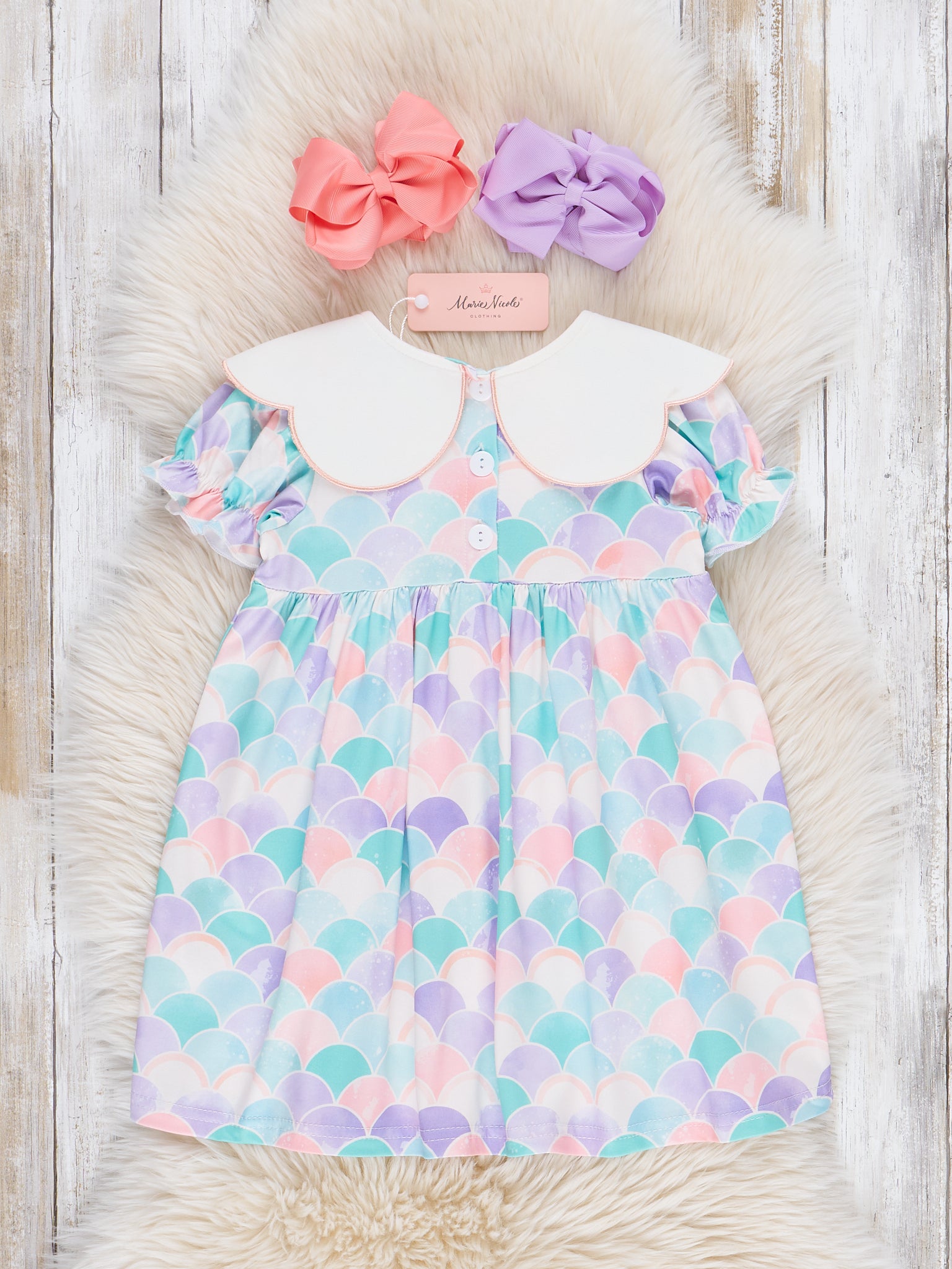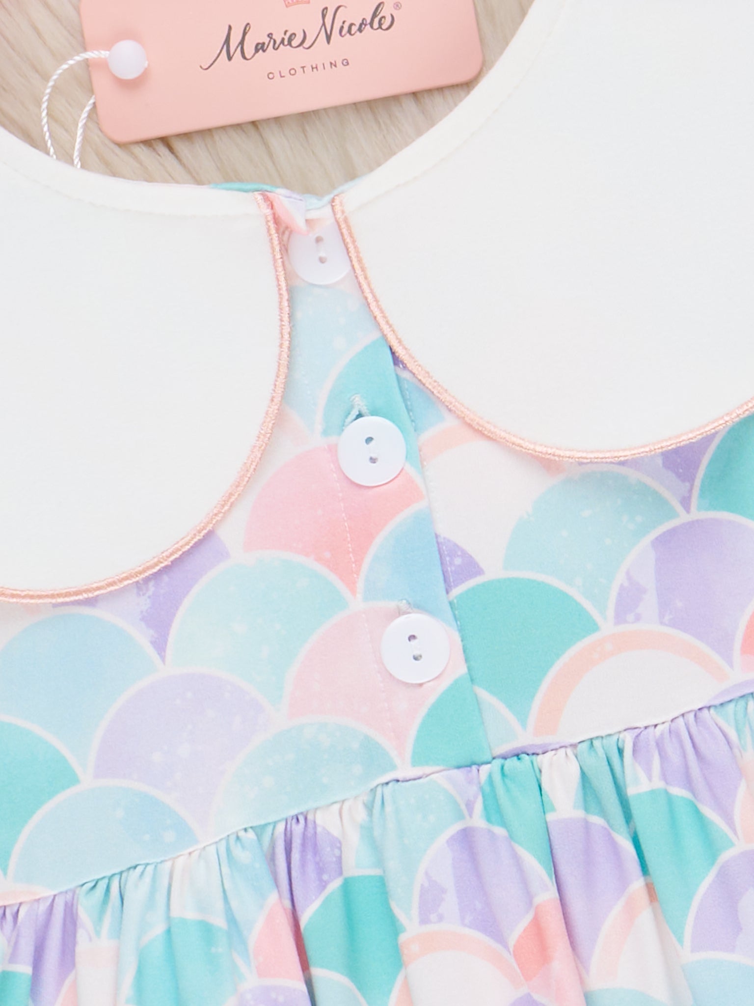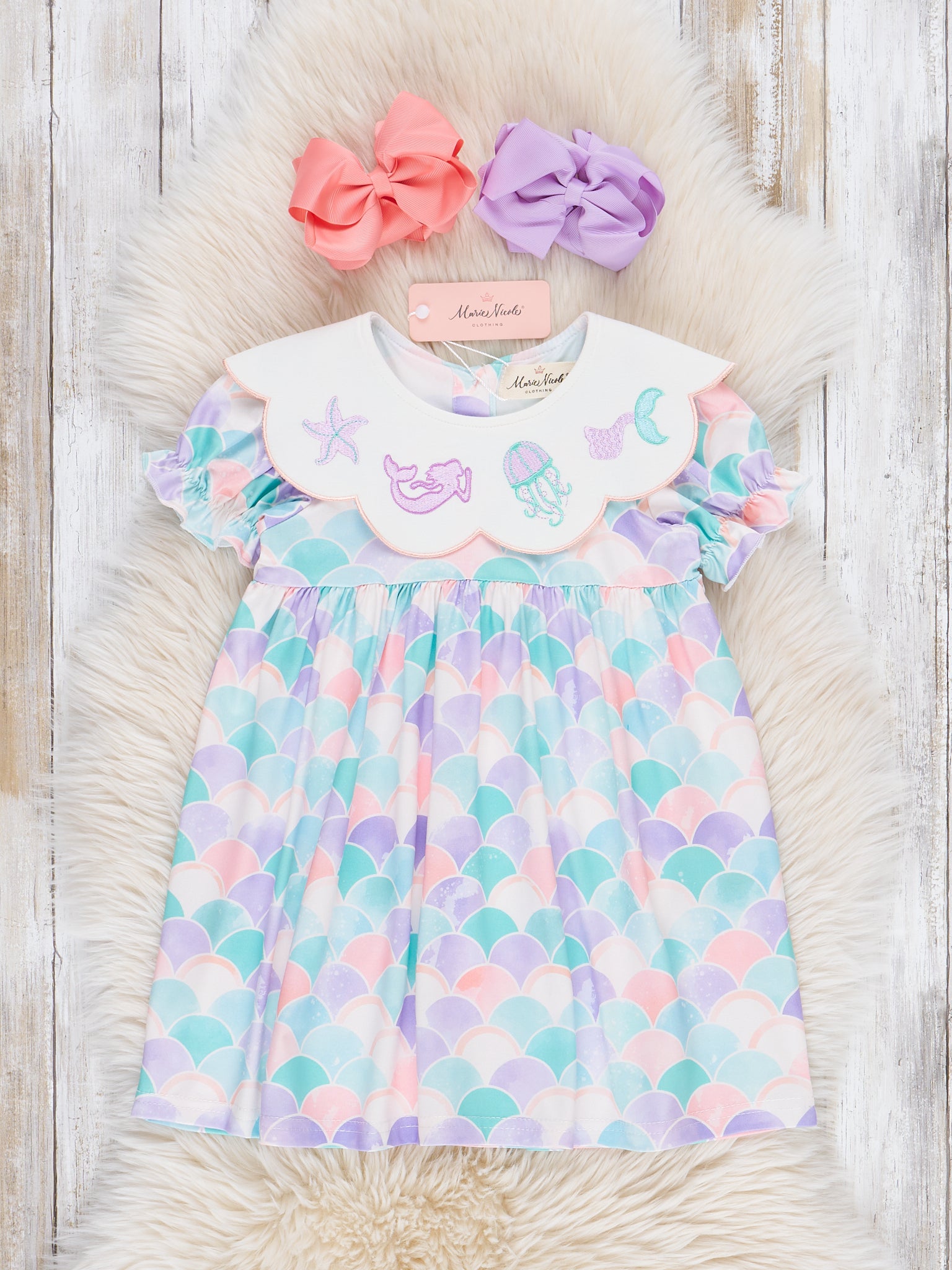 The Embroidered Mermaid Life Ruffle Dress is a magical piece featuring whimsical mermaid embroidery and soft accents for a playful, ocean-inspired look. From Marie Nicole Clothing this dress is perfect for sunny days and seaside adventures.