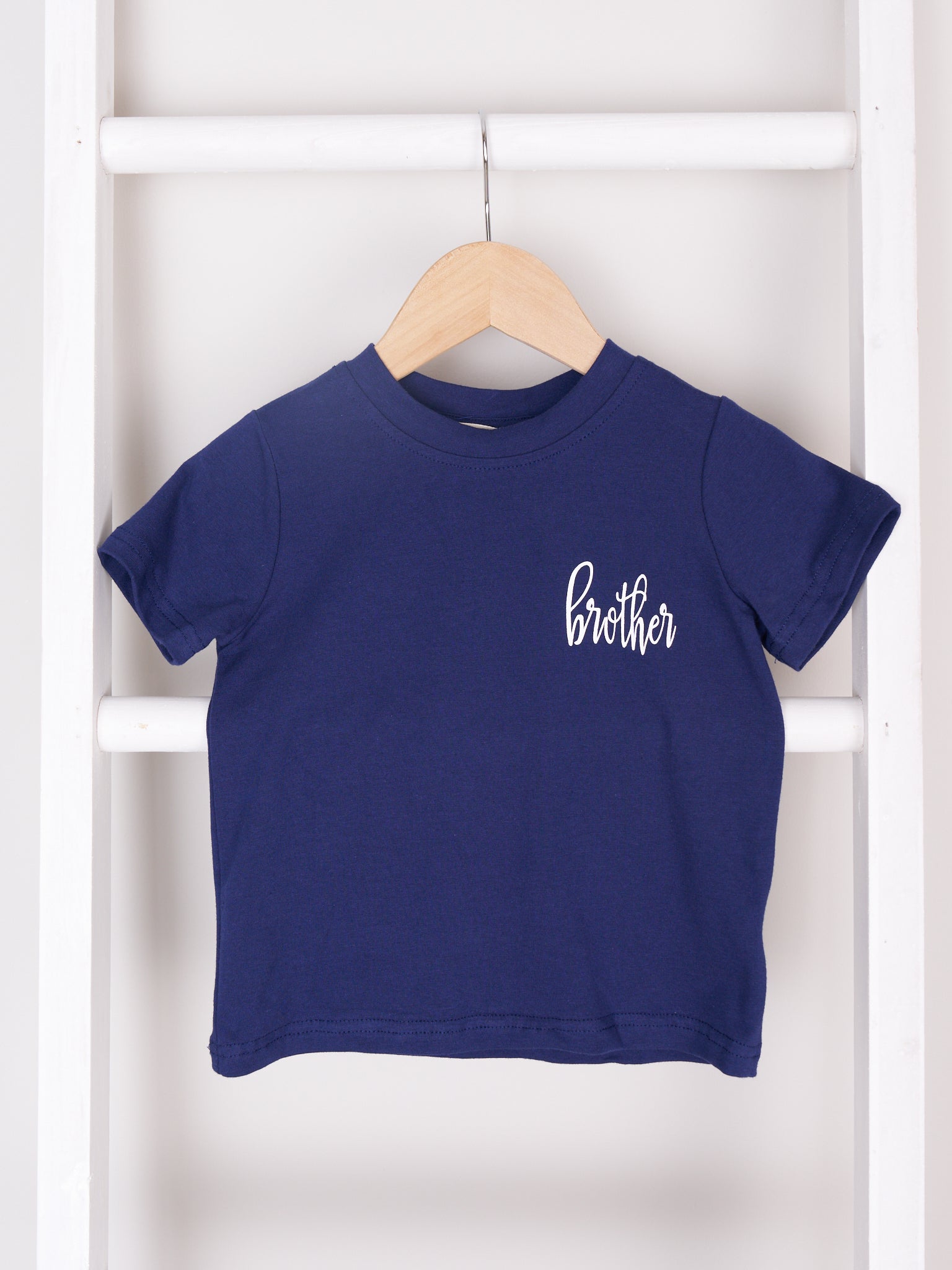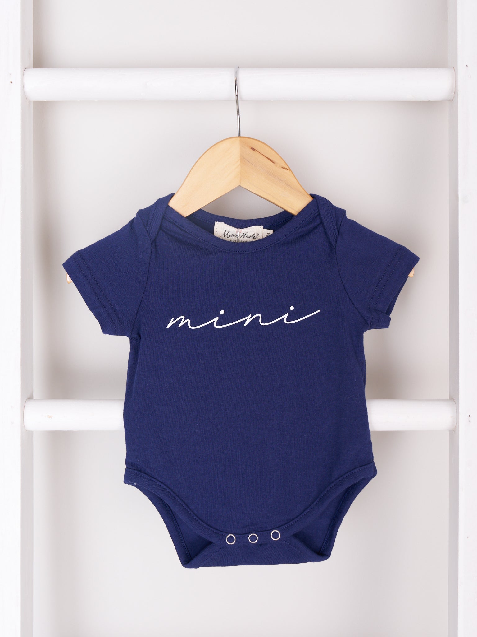 The whole family will look adorable in this matching set!! Let Dad be a cool "Dada," little brother is a stylish "Mini" in a navy romper, and big brother rock the "brother" shirt.