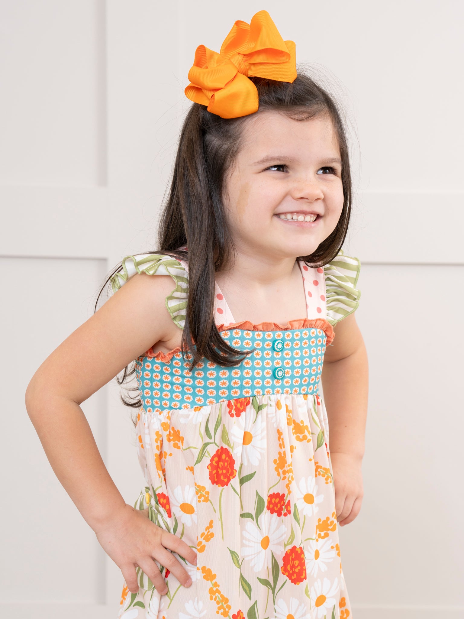 Put a playful spin on your spring wardrobe with Daisy Janes Pocket Tunic. This MNC Exclusive Collection piece celebrates the season with vibrant greens, oranges, and florals. Plus the striped pockets & ruffles add a fun twist. Parade around town with confidence and style!