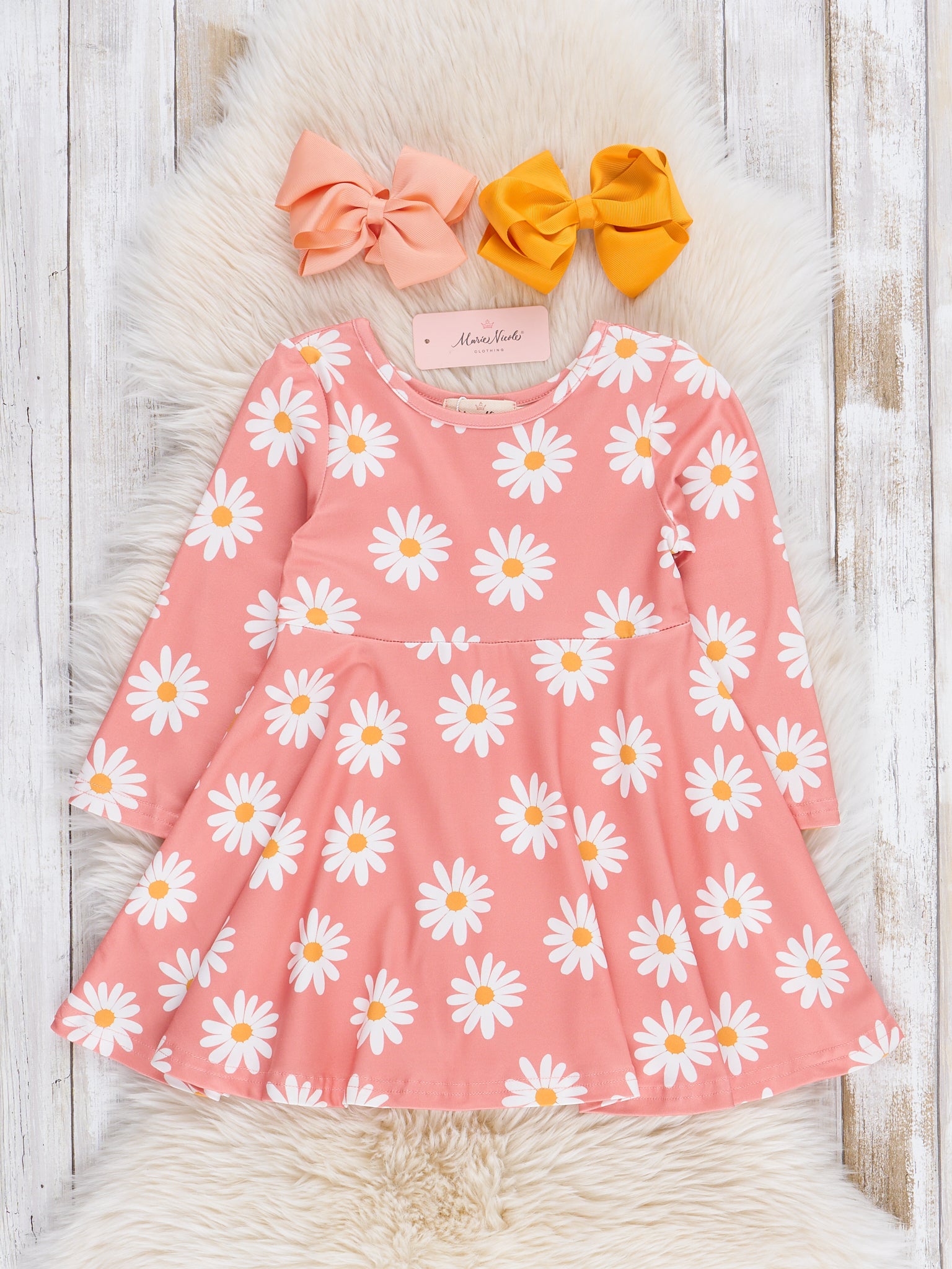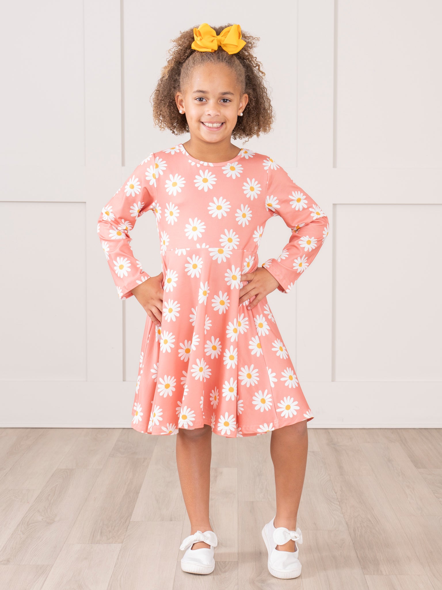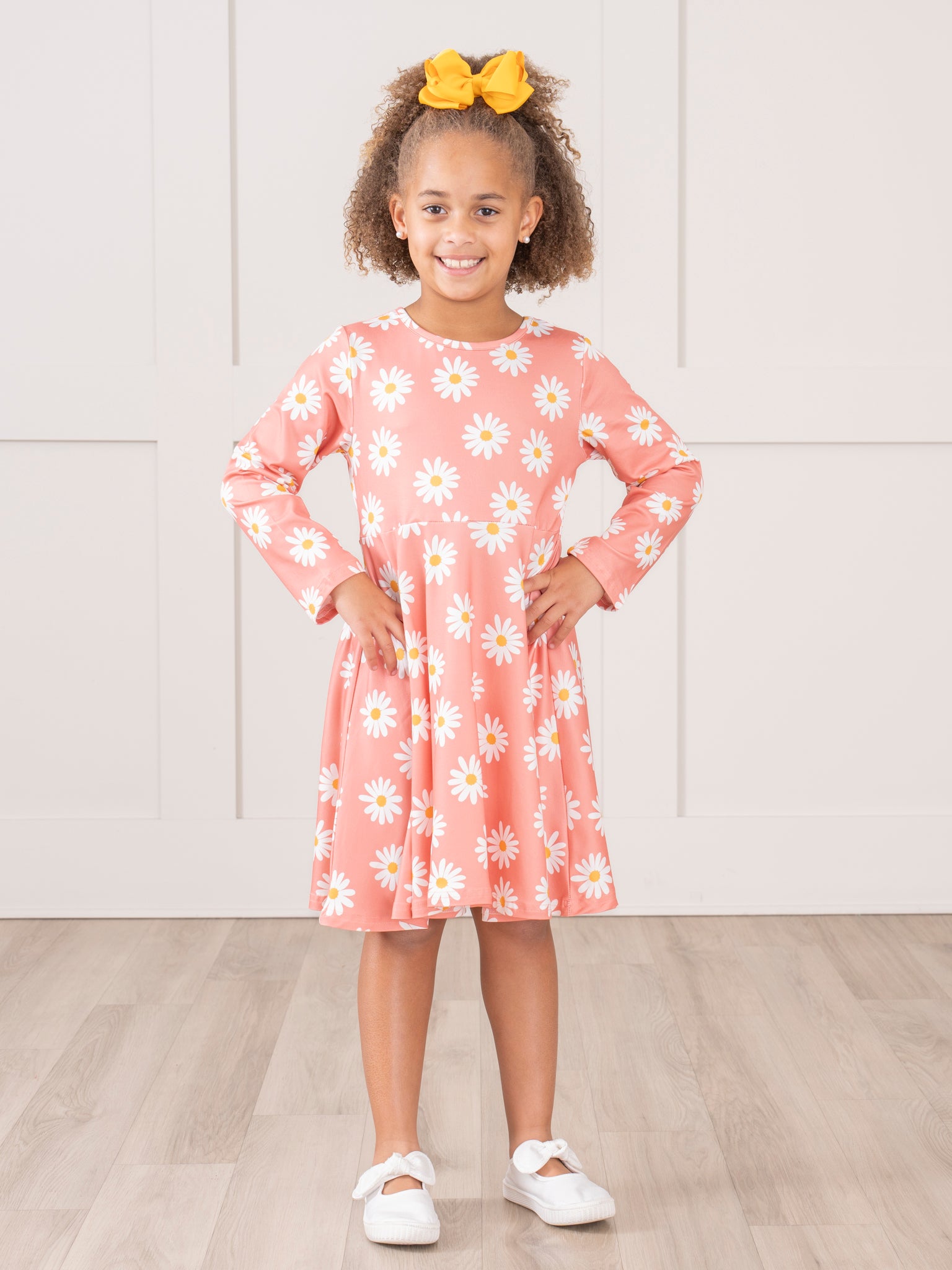 Embrace everyday fancy with our Peach Daisy Blooms Swing Dress! This classic silhouette boasts a playful daisy print, perfect for adding a touch of whimsy to your wardrobe. Say hello to your new favorite outfit (and goodbye to boring dresses)!