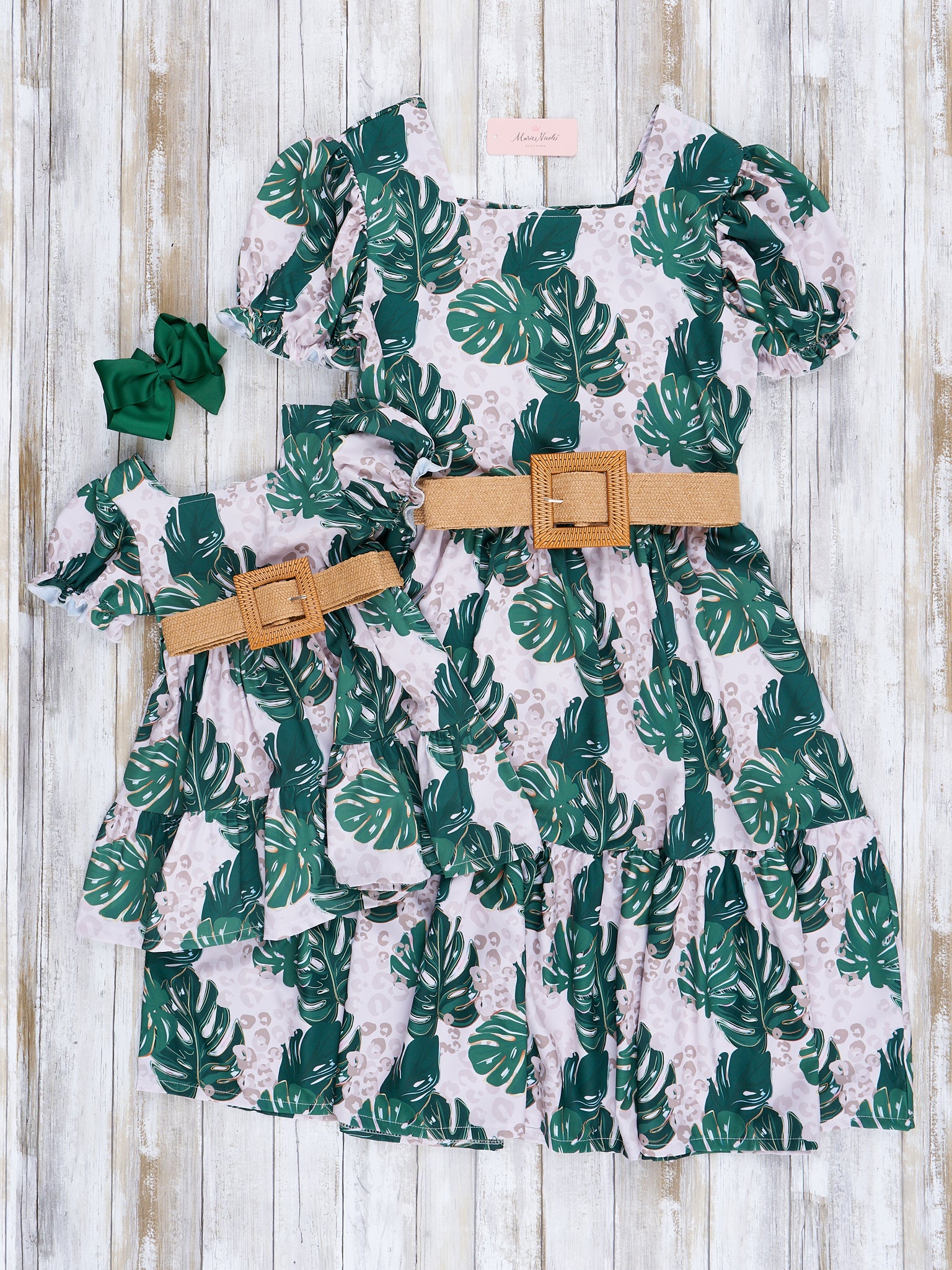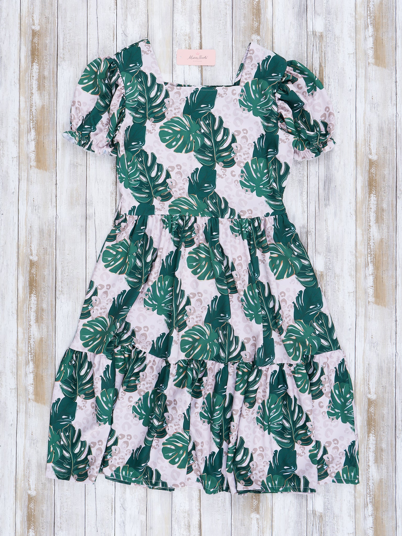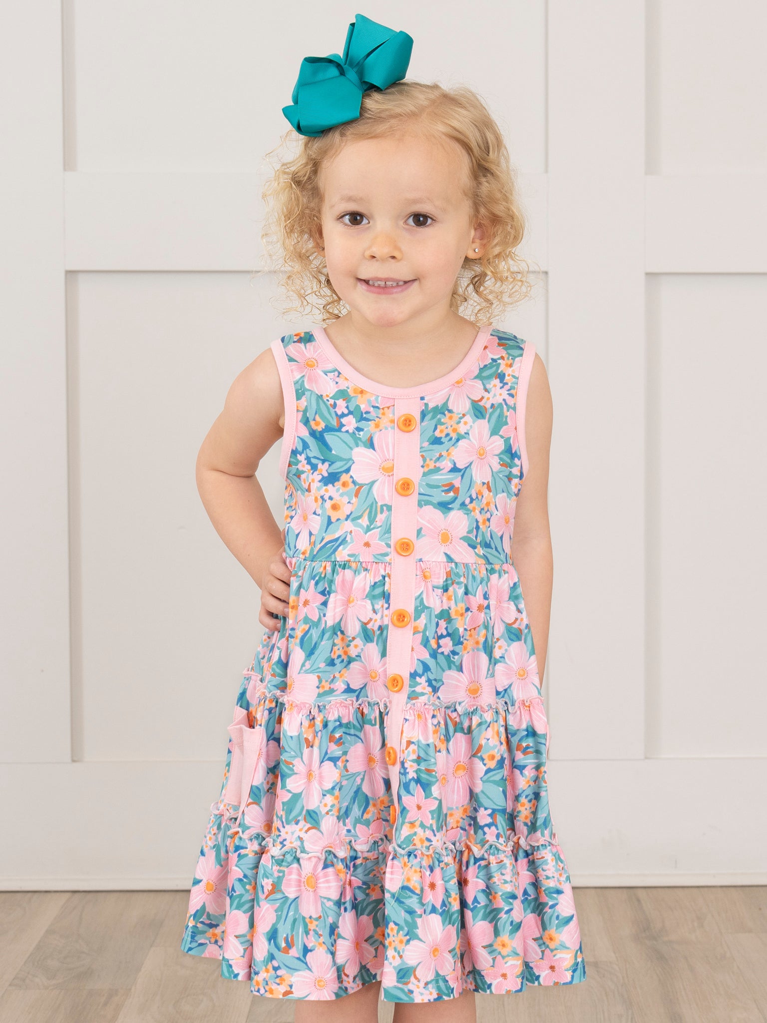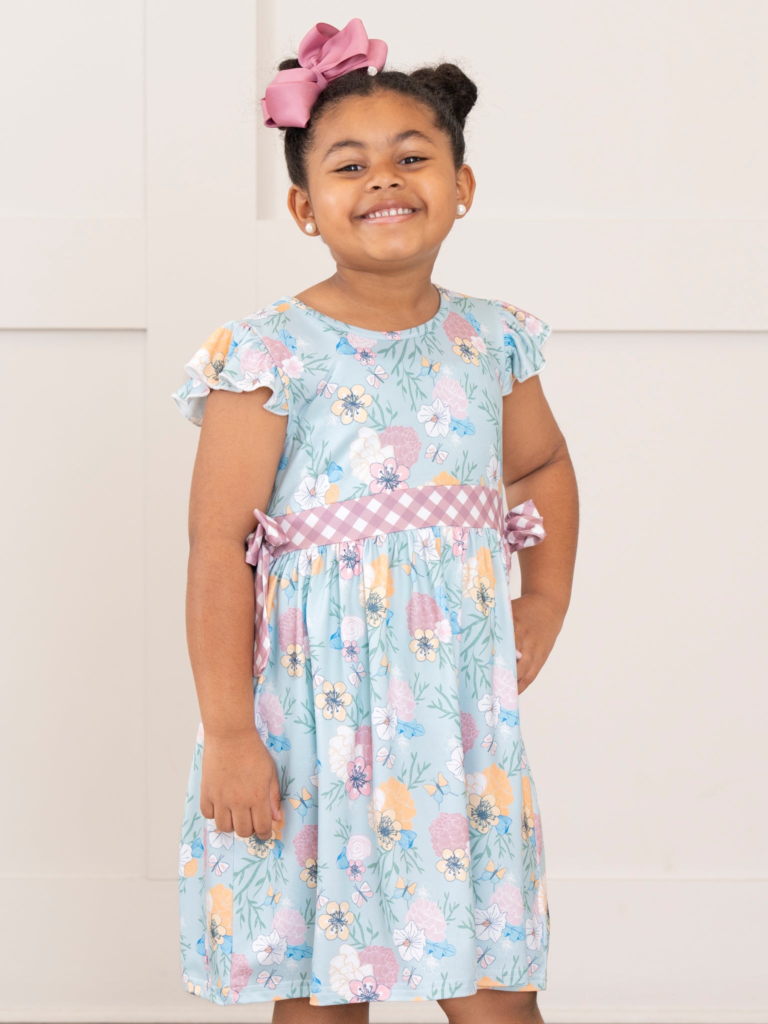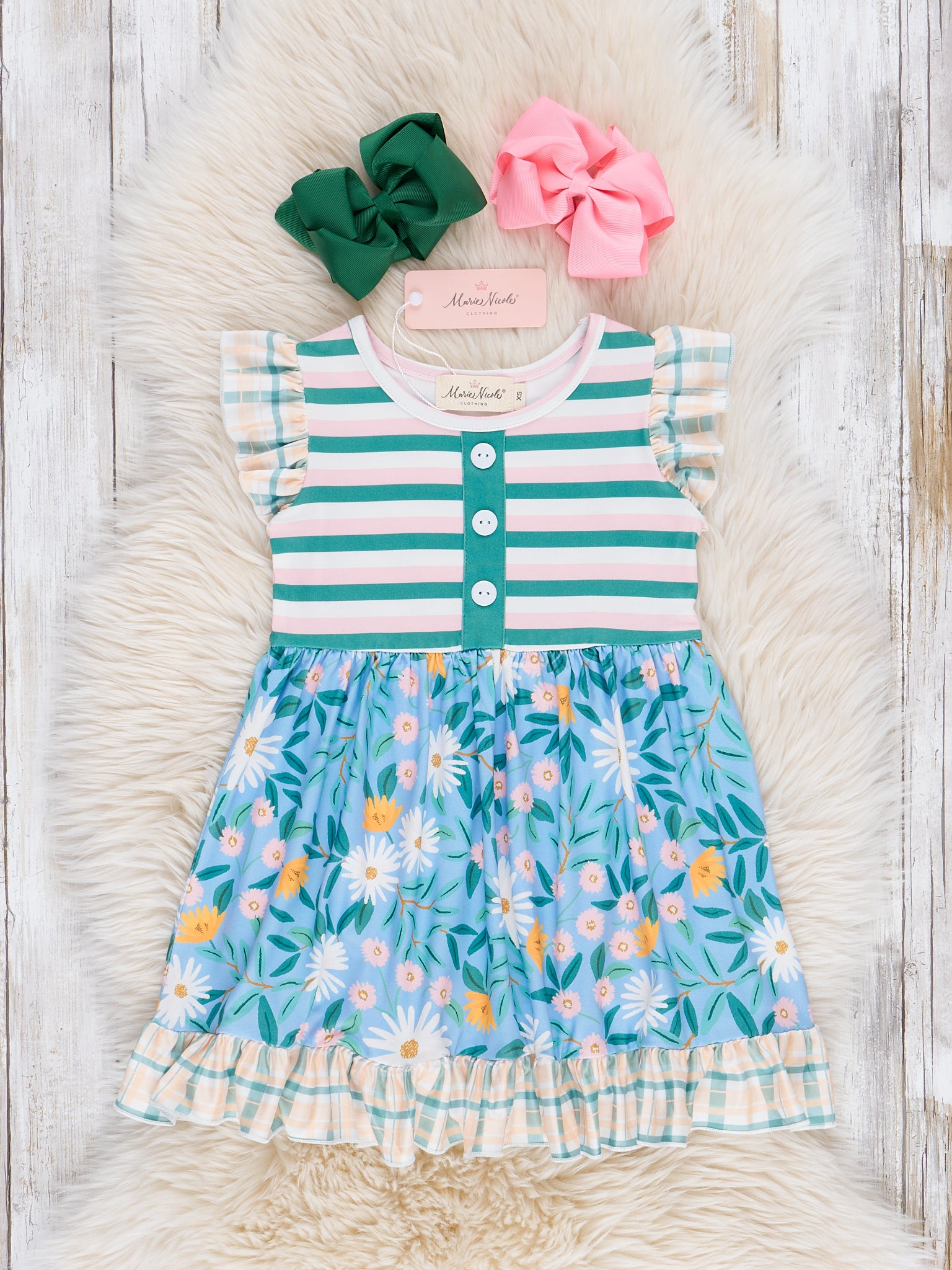 Turquoise Gingham & Pink Florals Ruffle Dress