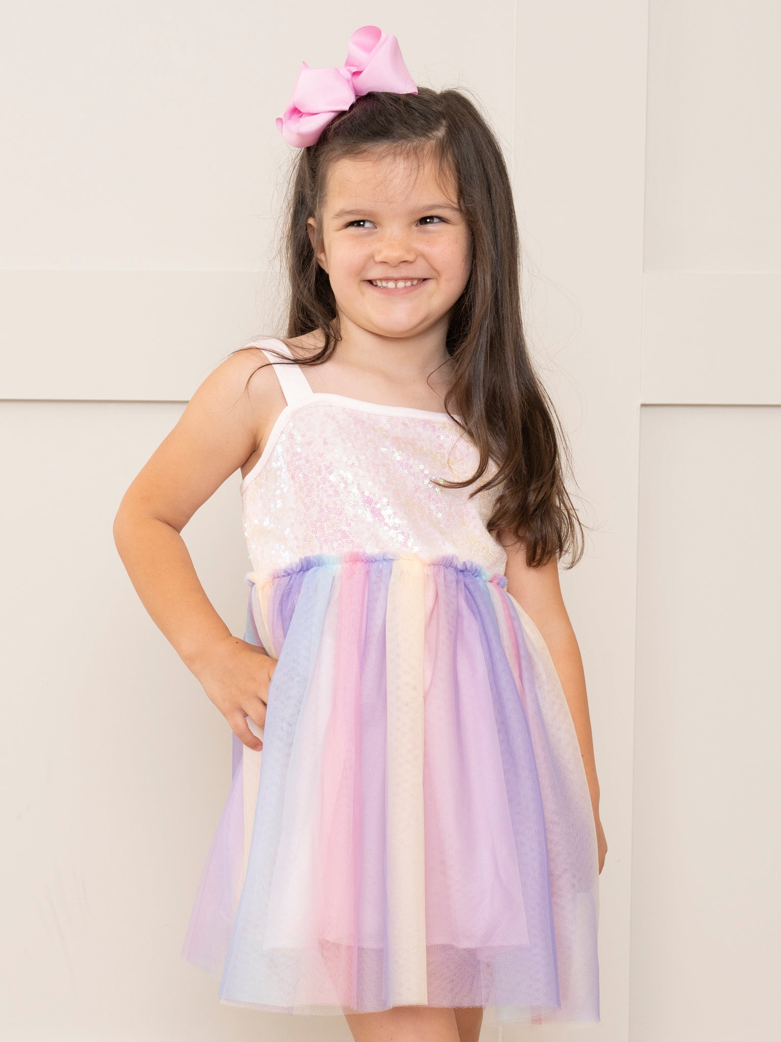 Smocked Rainbow Streamers Tiered Ruffle Dress