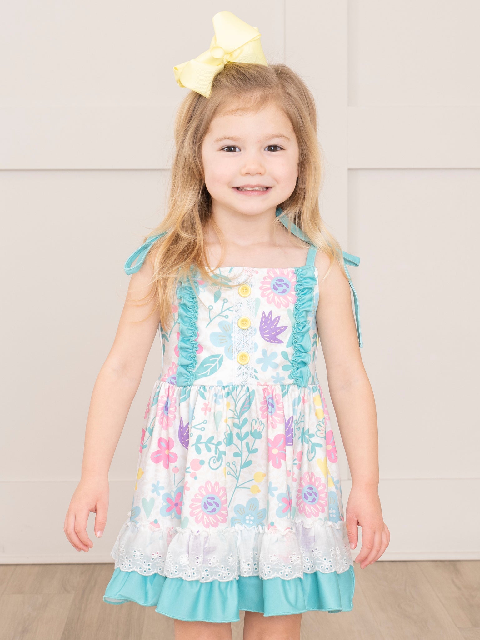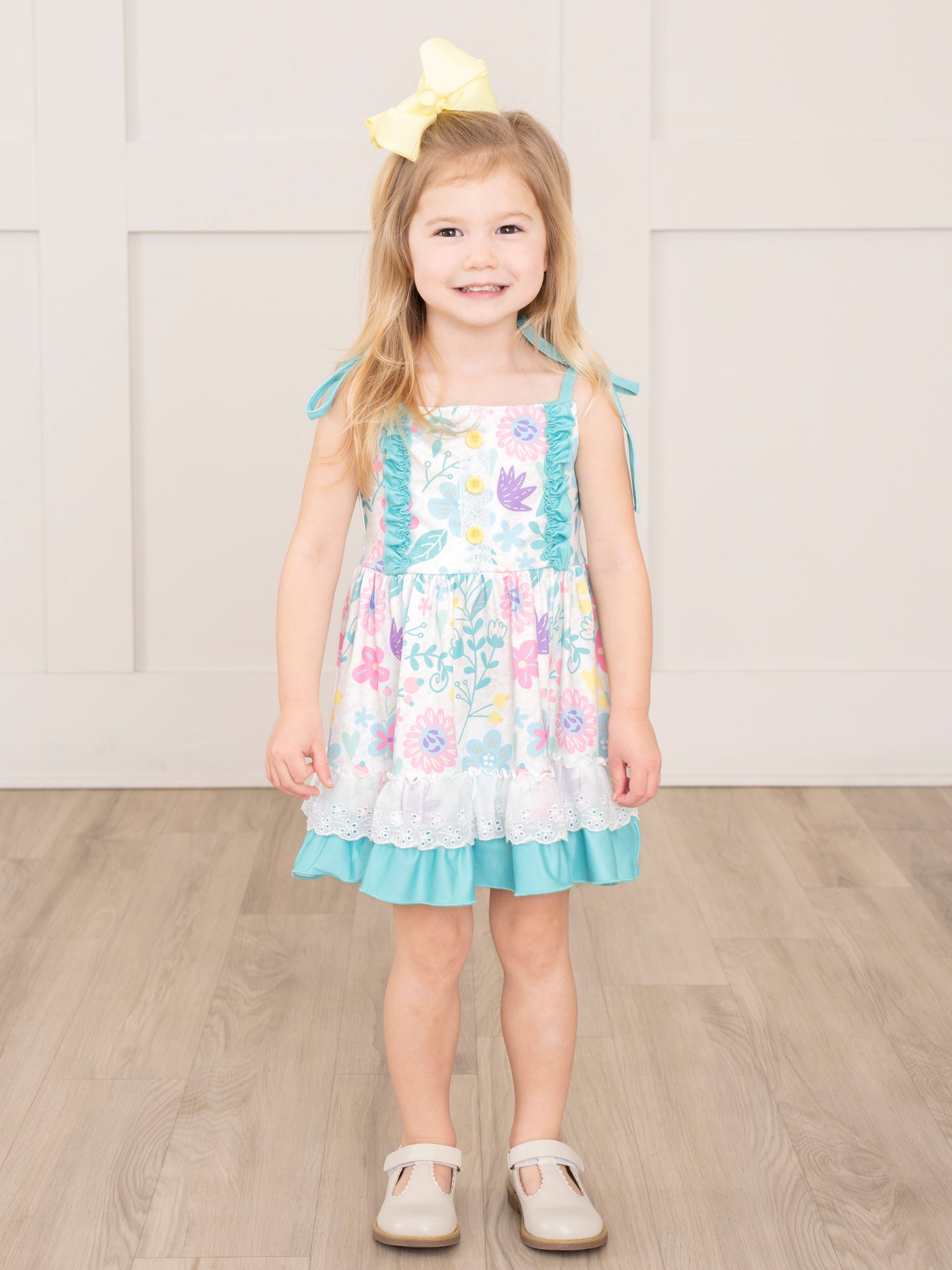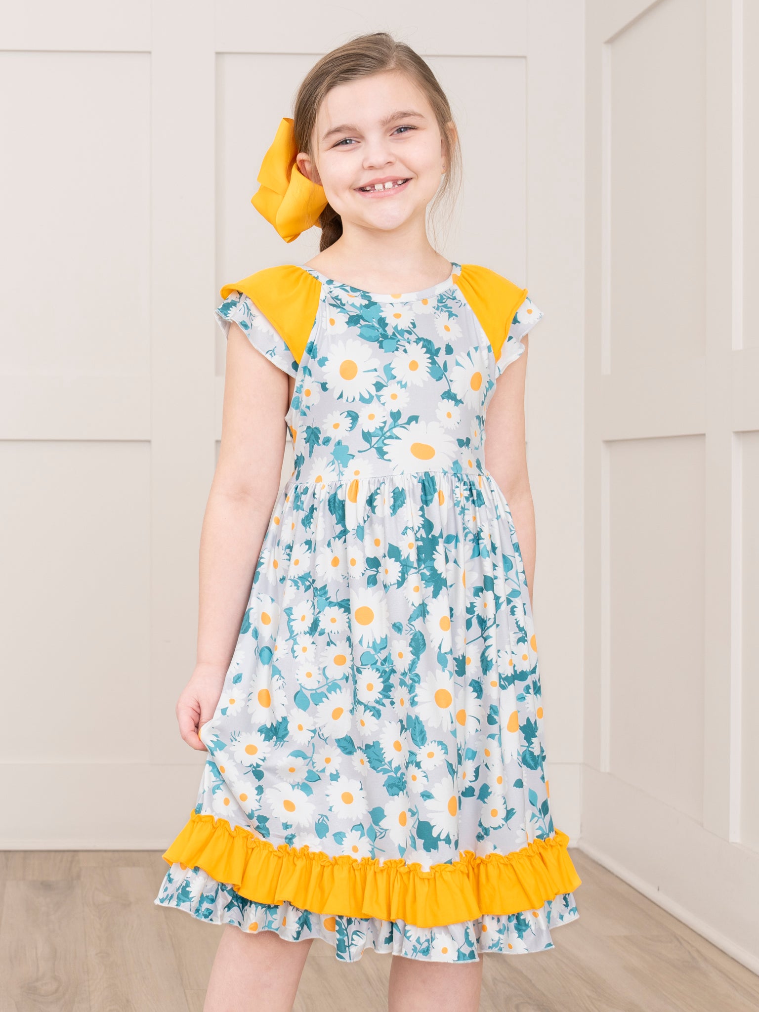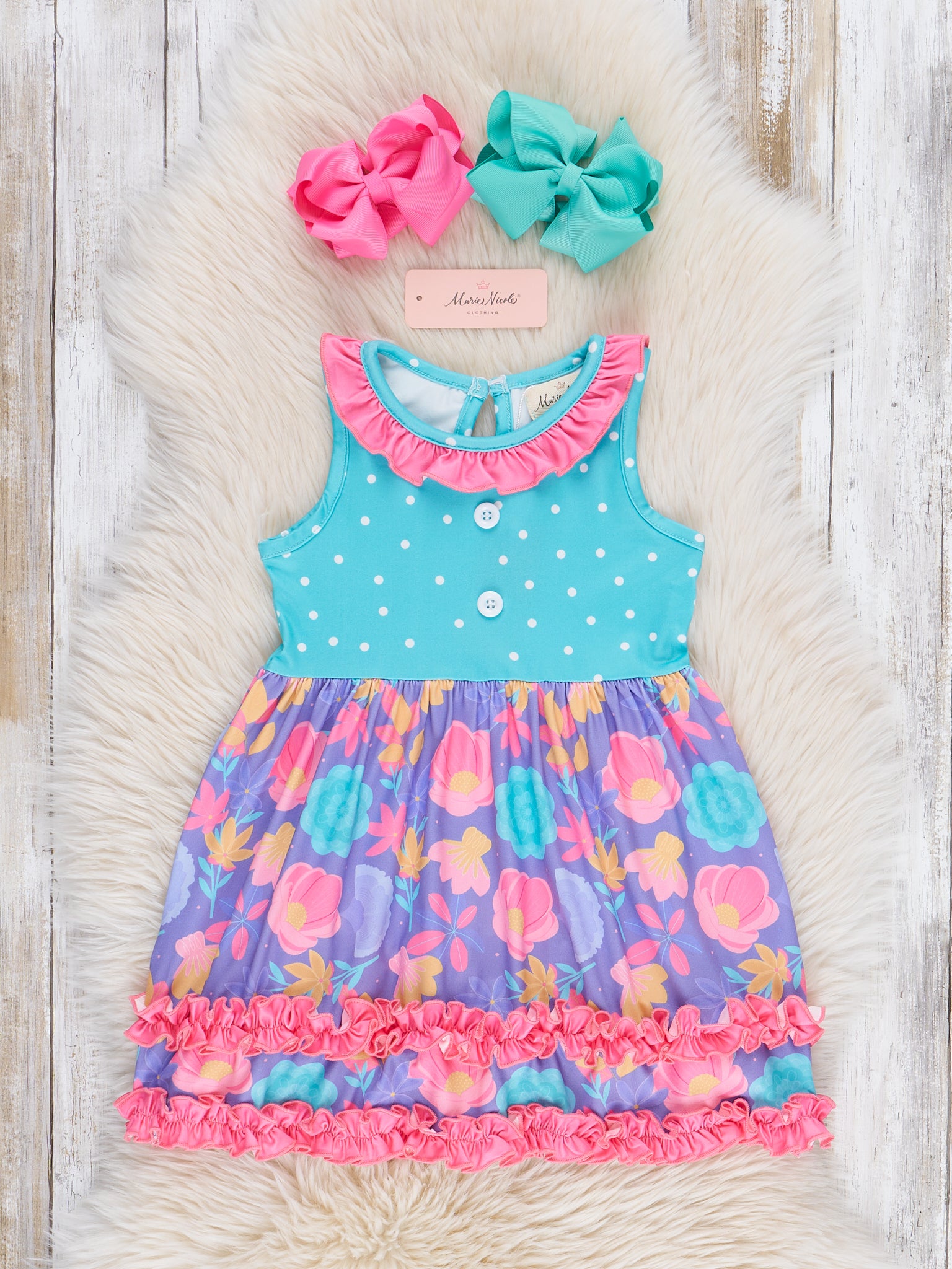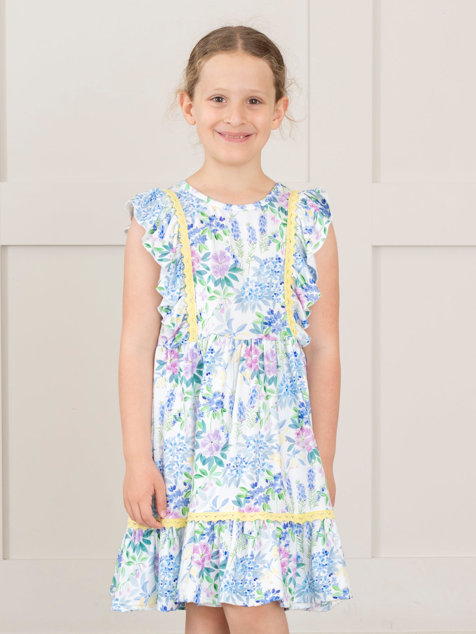 Periwinkle & Yellow Painted Blooms Ruffle Dress