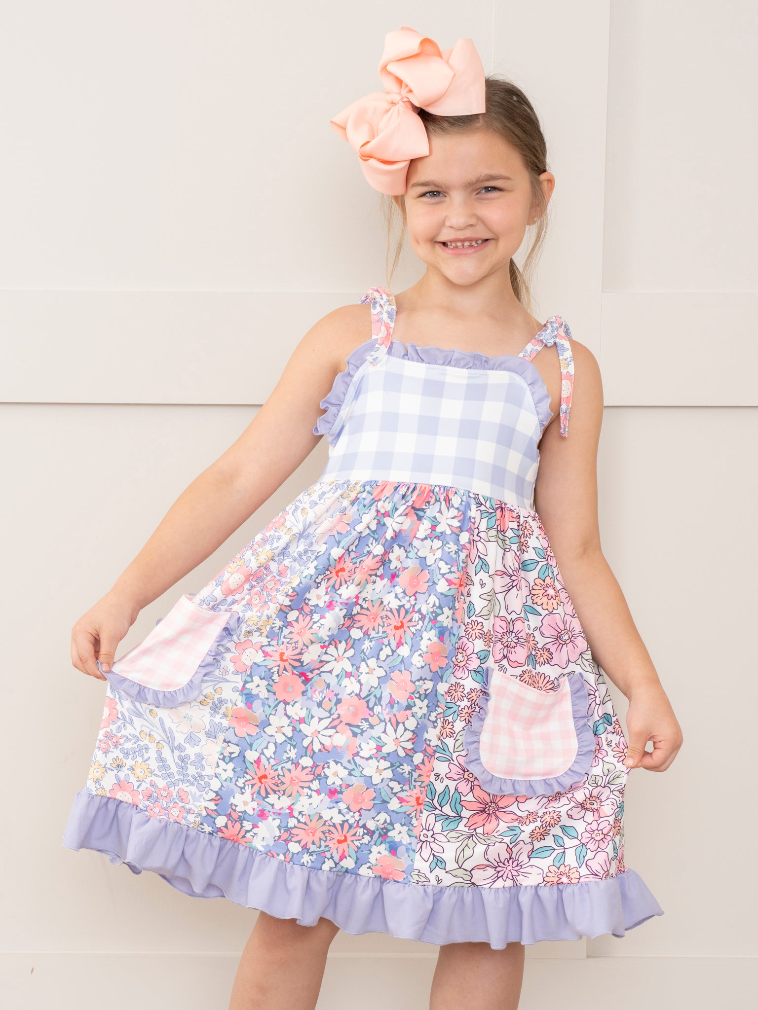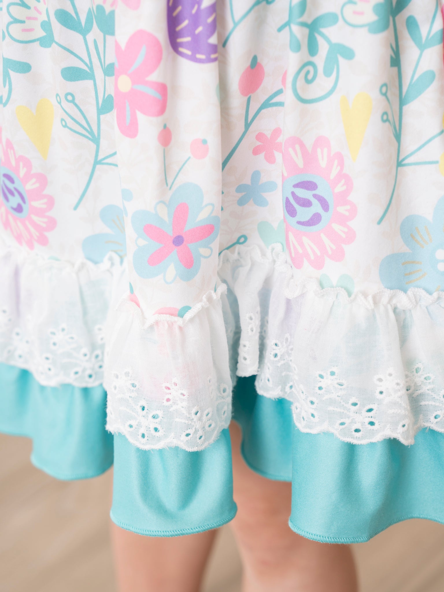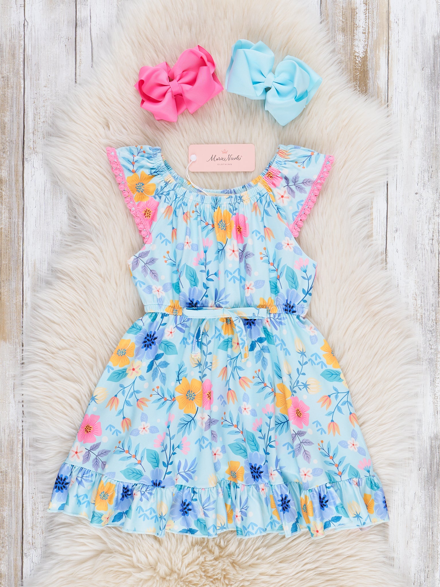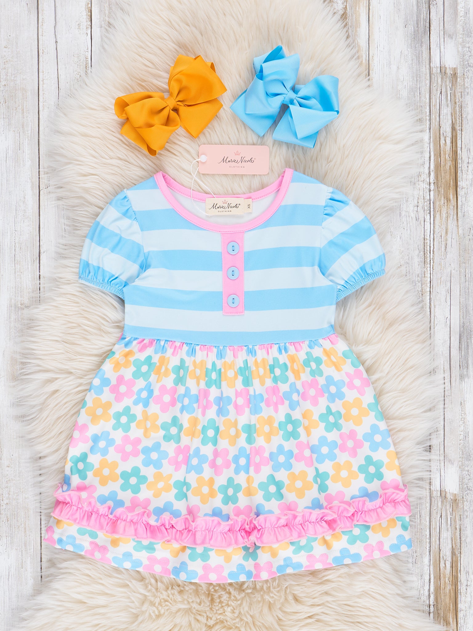 Periwinkle & Yellow Painted Blooms Ruffle Dress