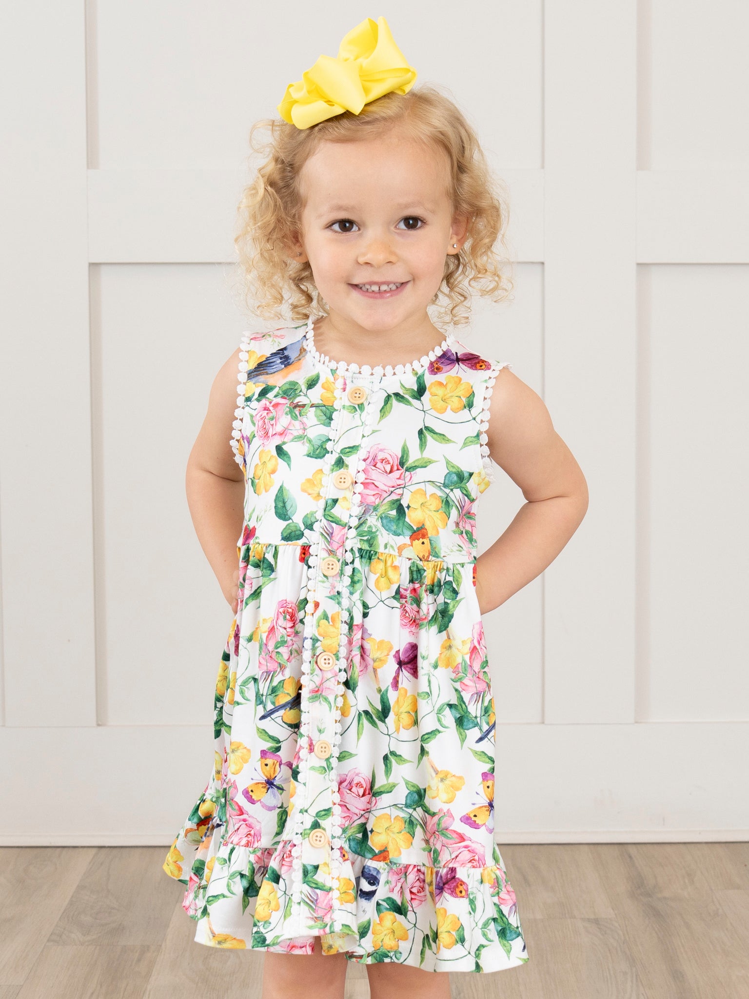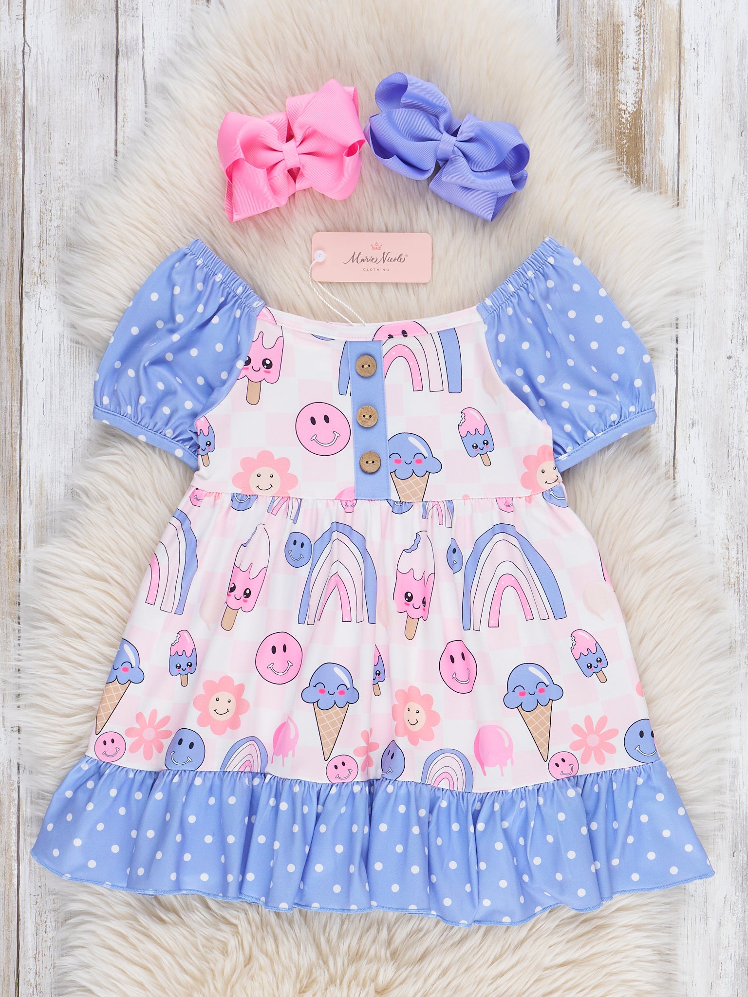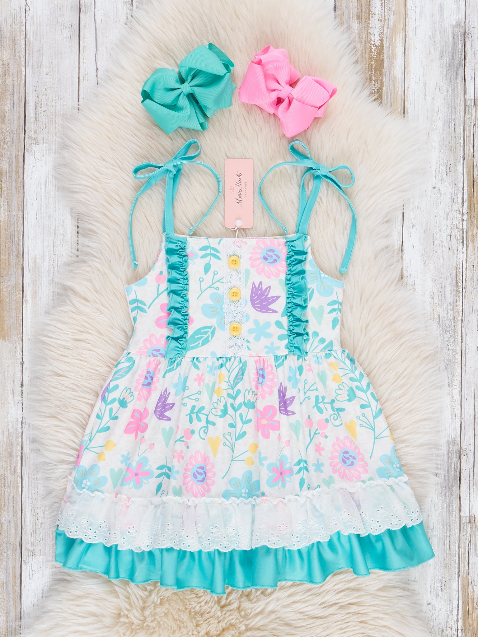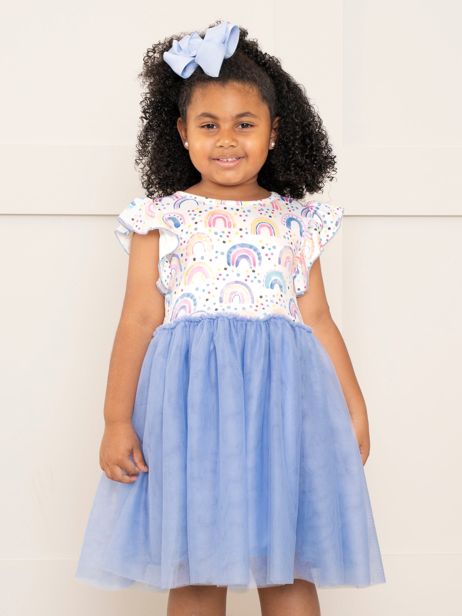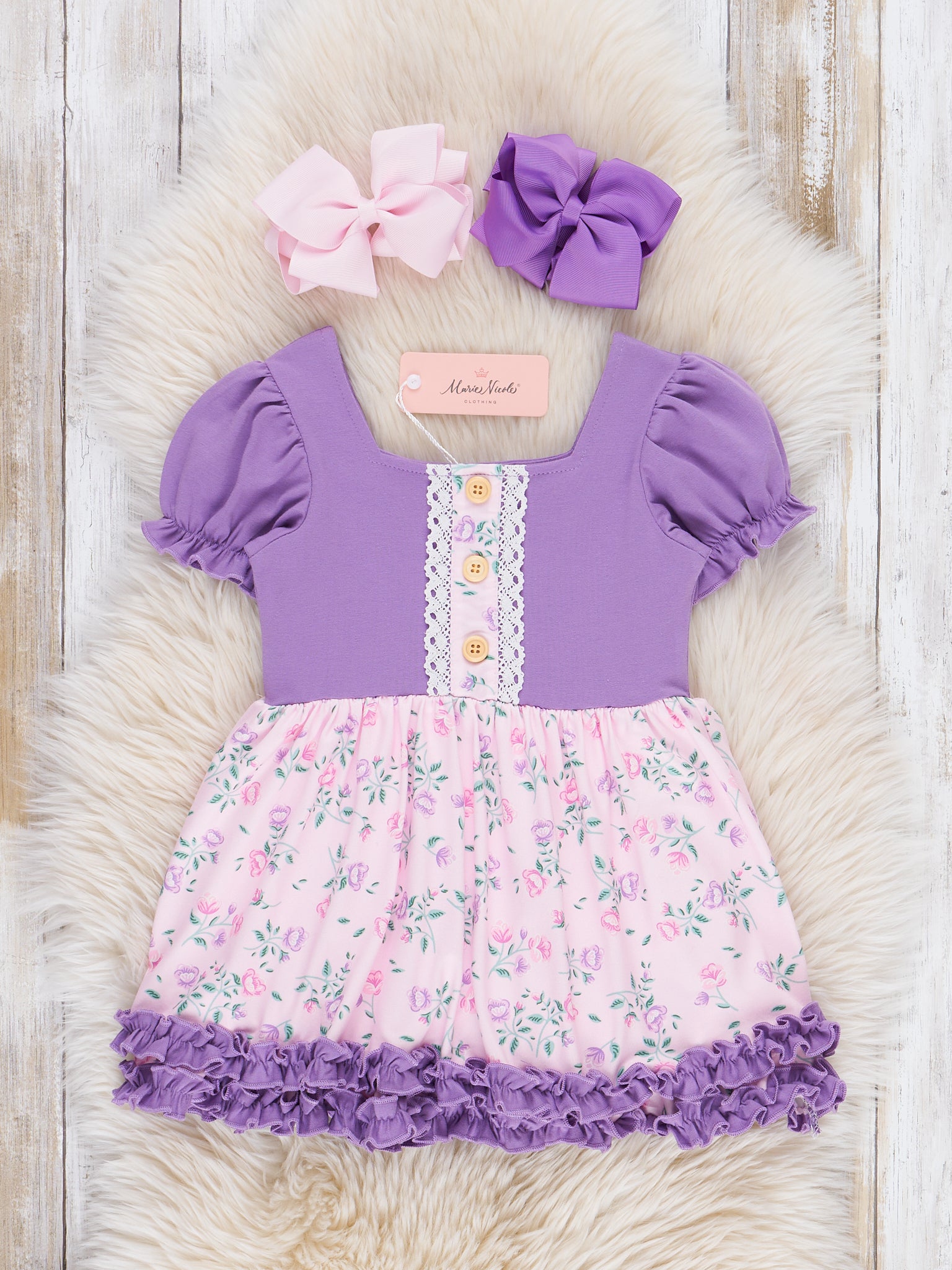 Periwinkle & Yellow Painted Blooms Ruffle Dress