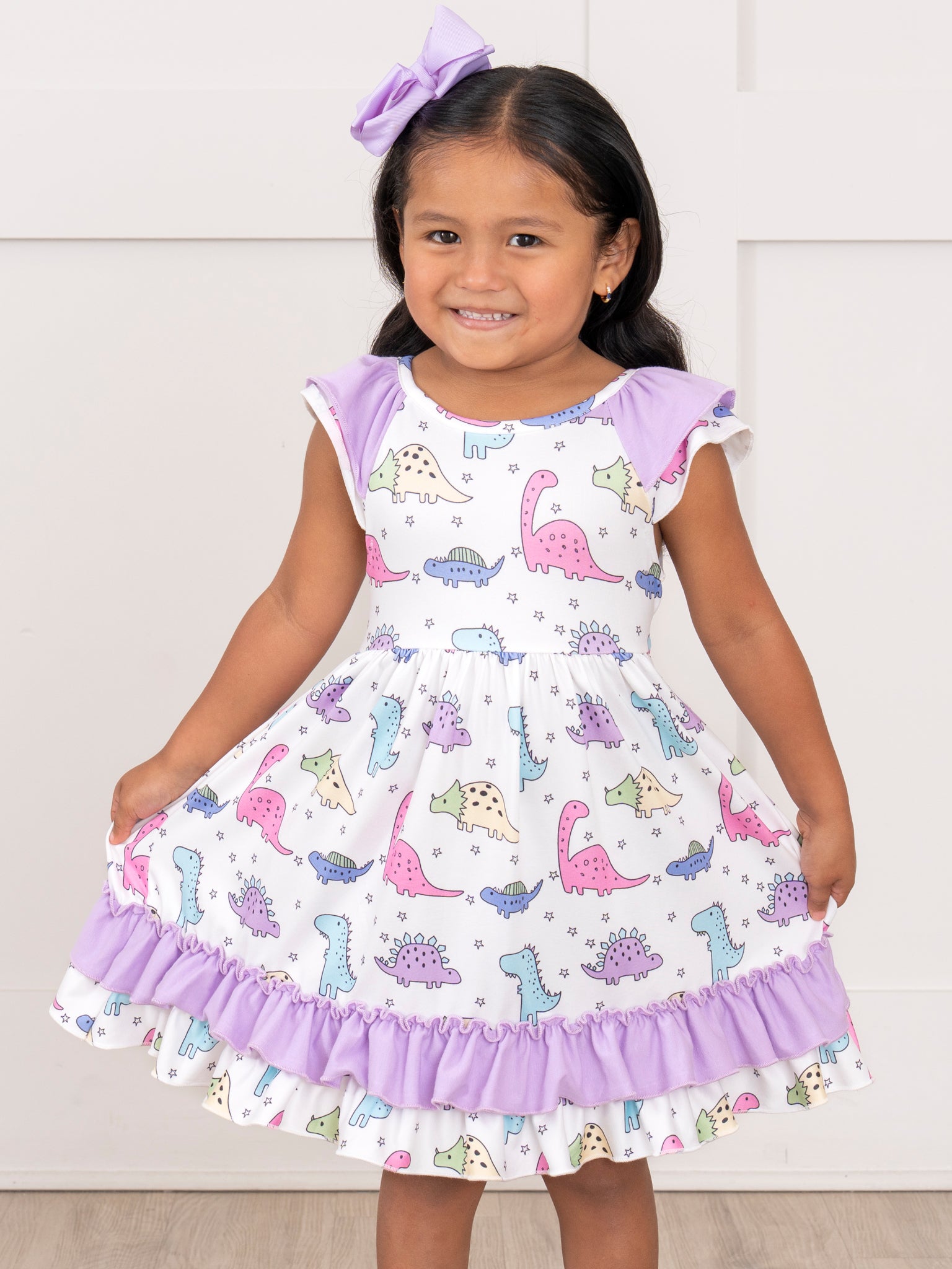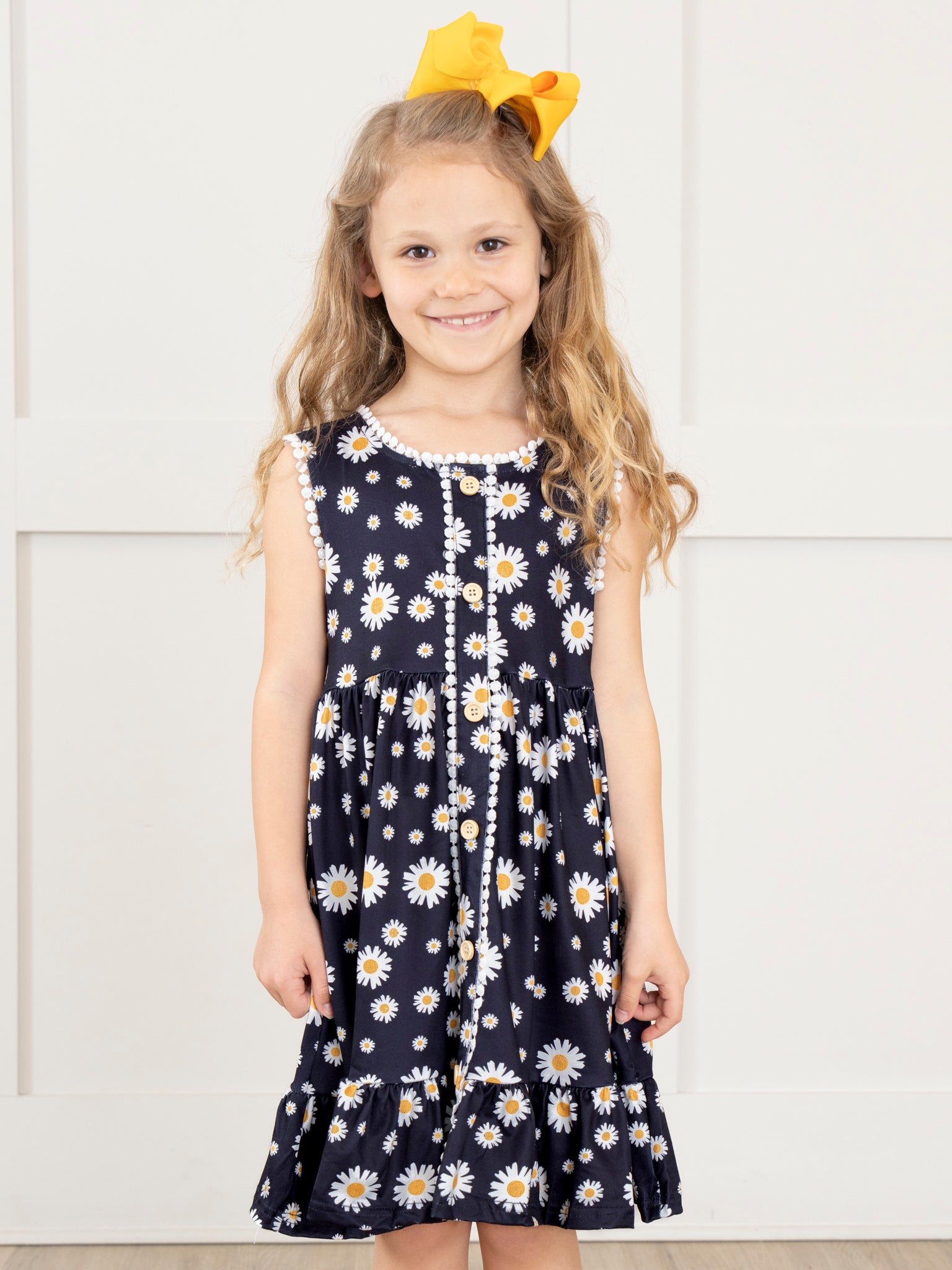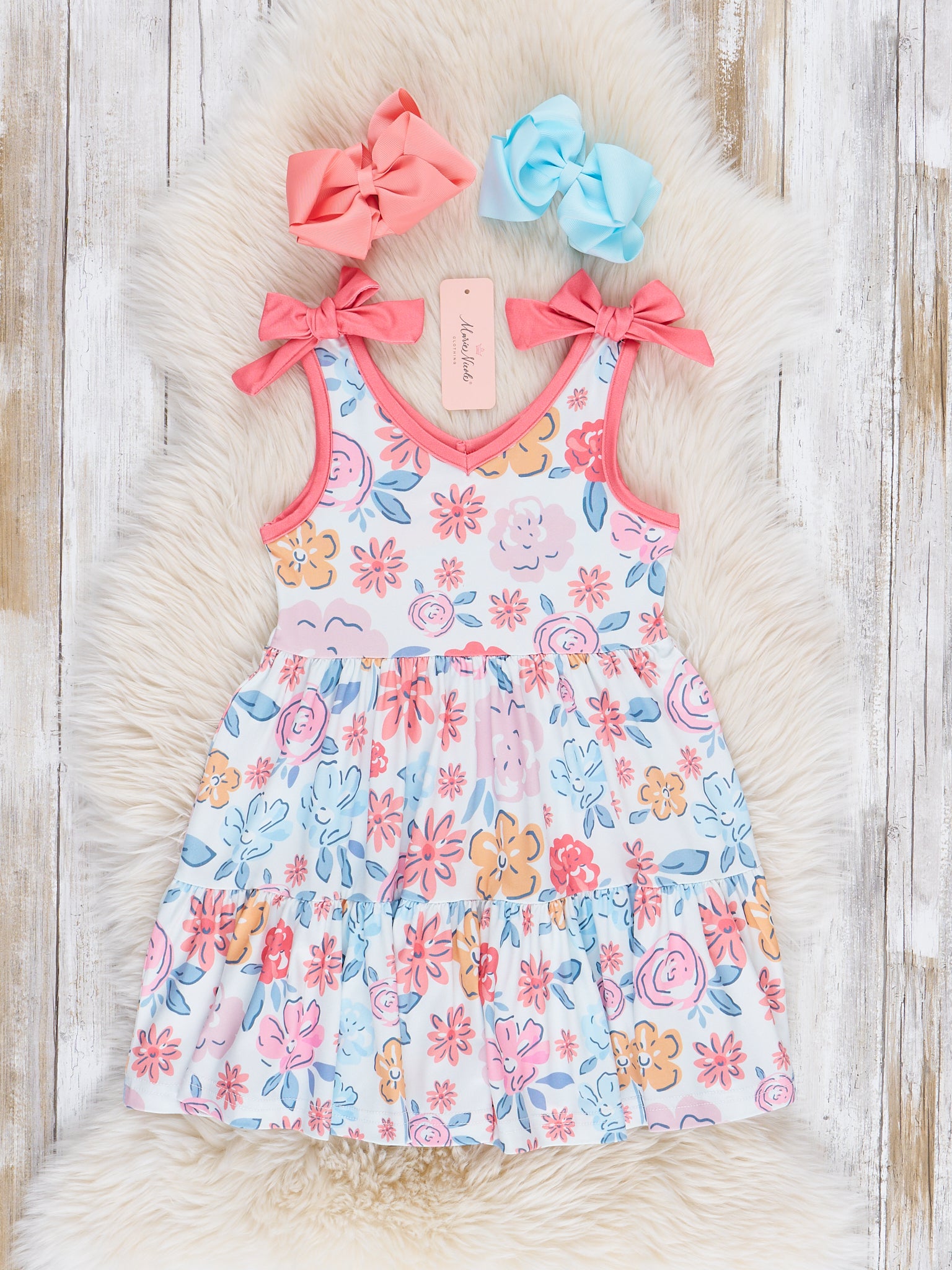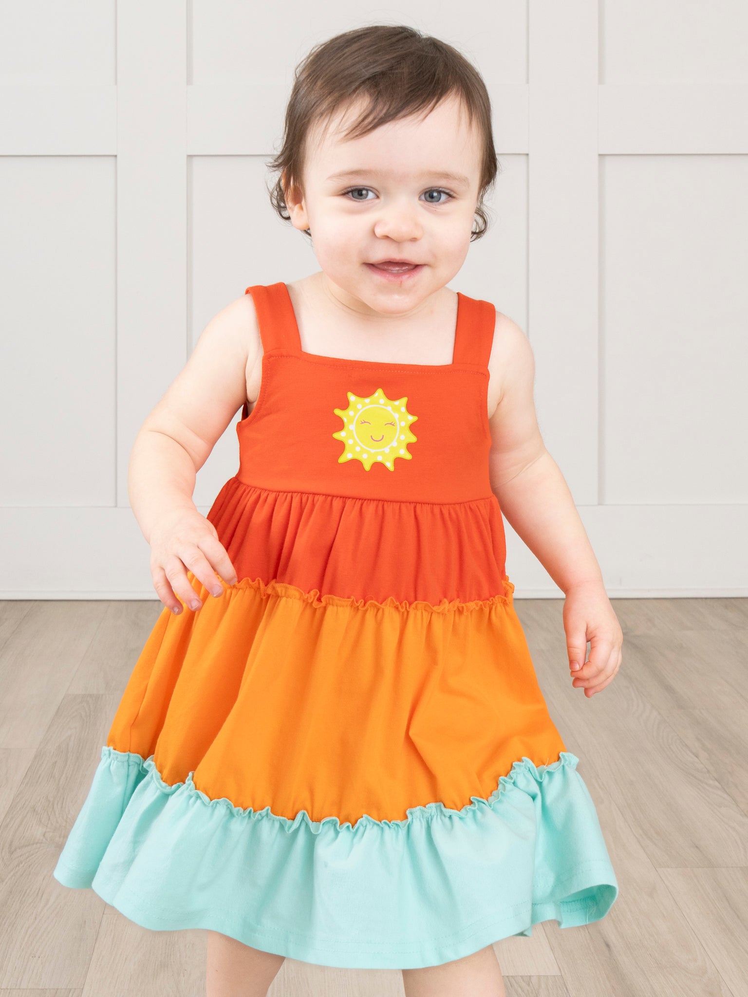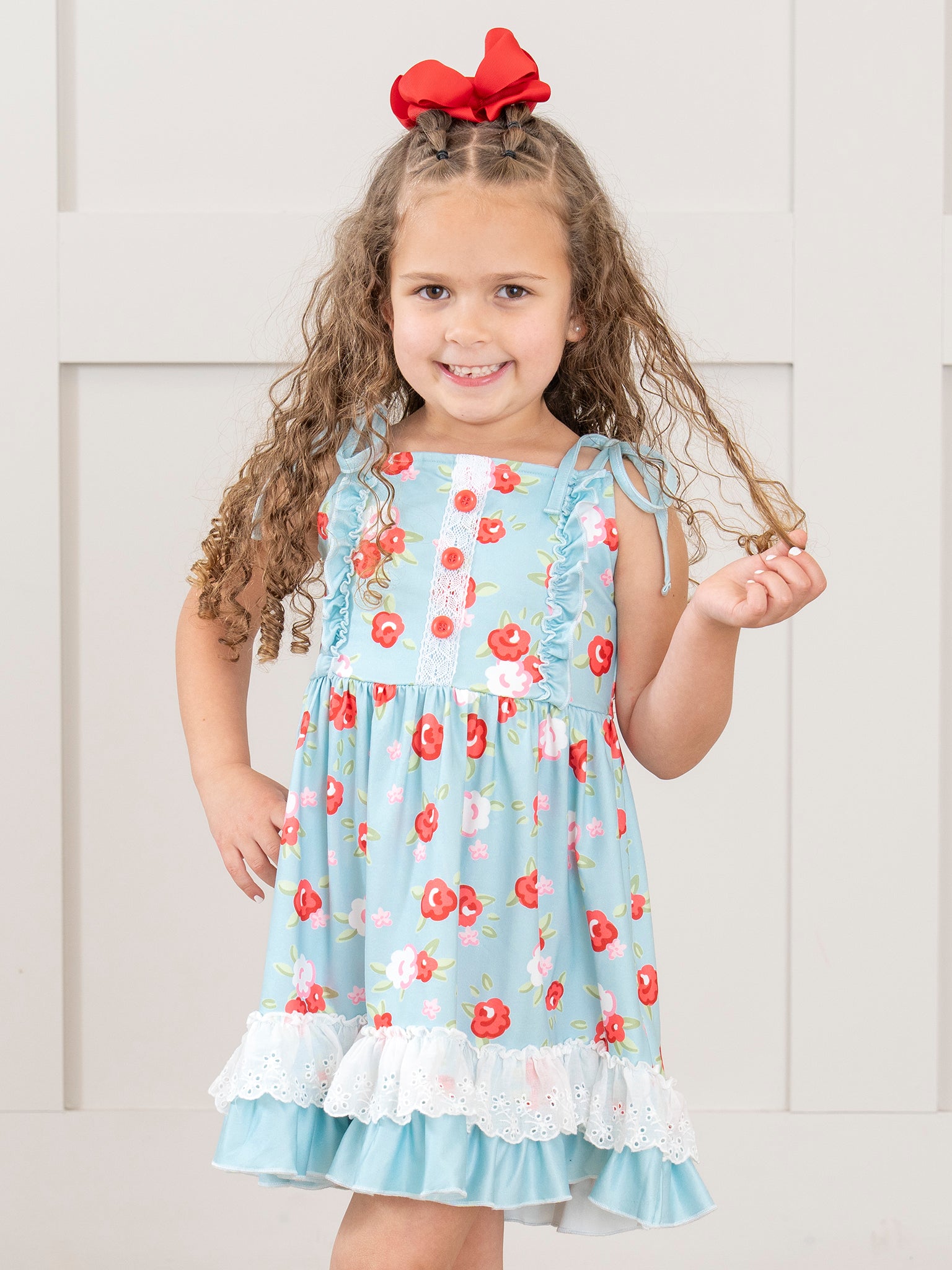 Periwinkle & Yellow Painted Blooms Ruffle Dress