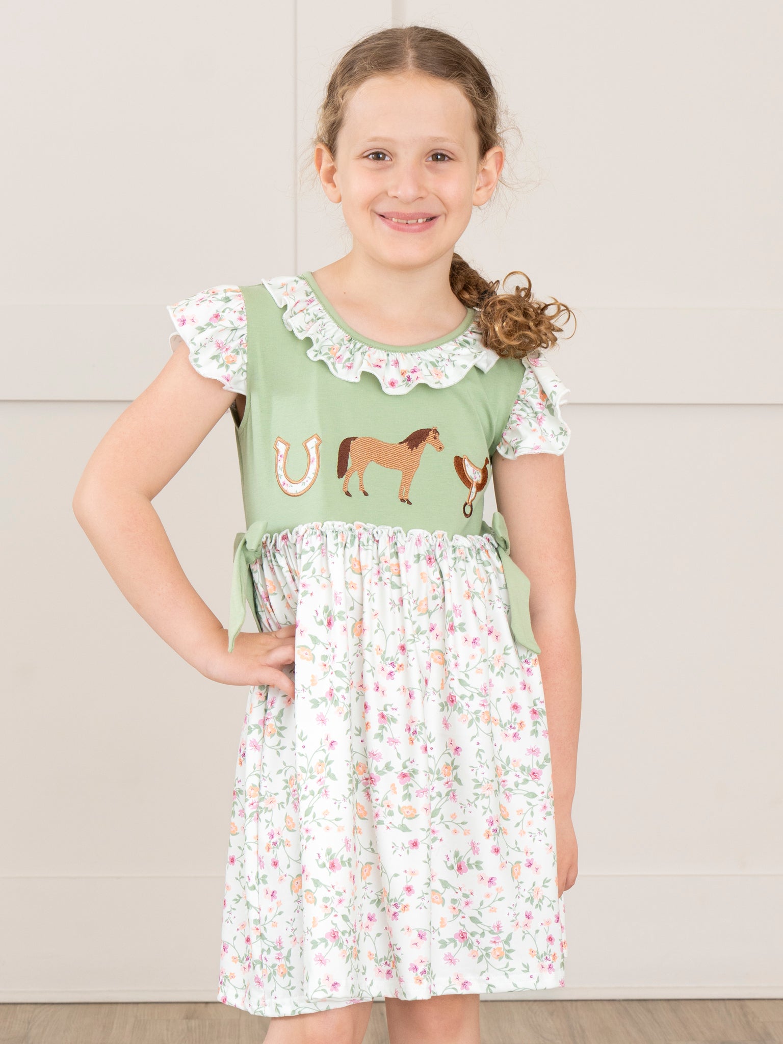 Green Gingham Mama's Girl Smocked Ruffle Dress
