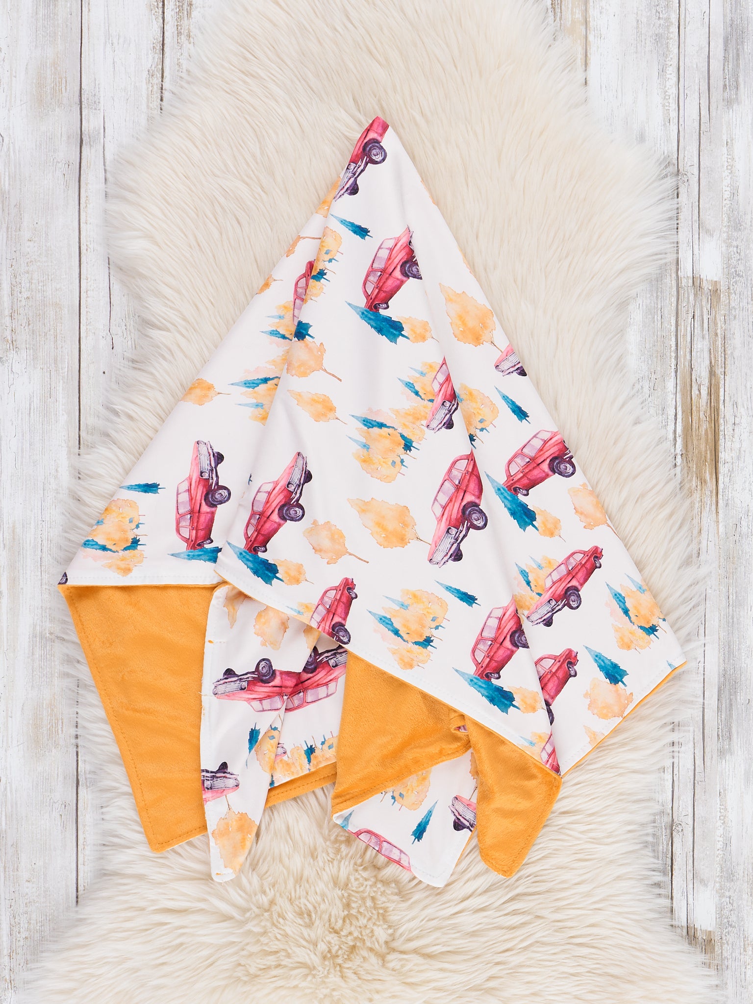 Rustic Blue Pumpkin Trucks Minky Blanket