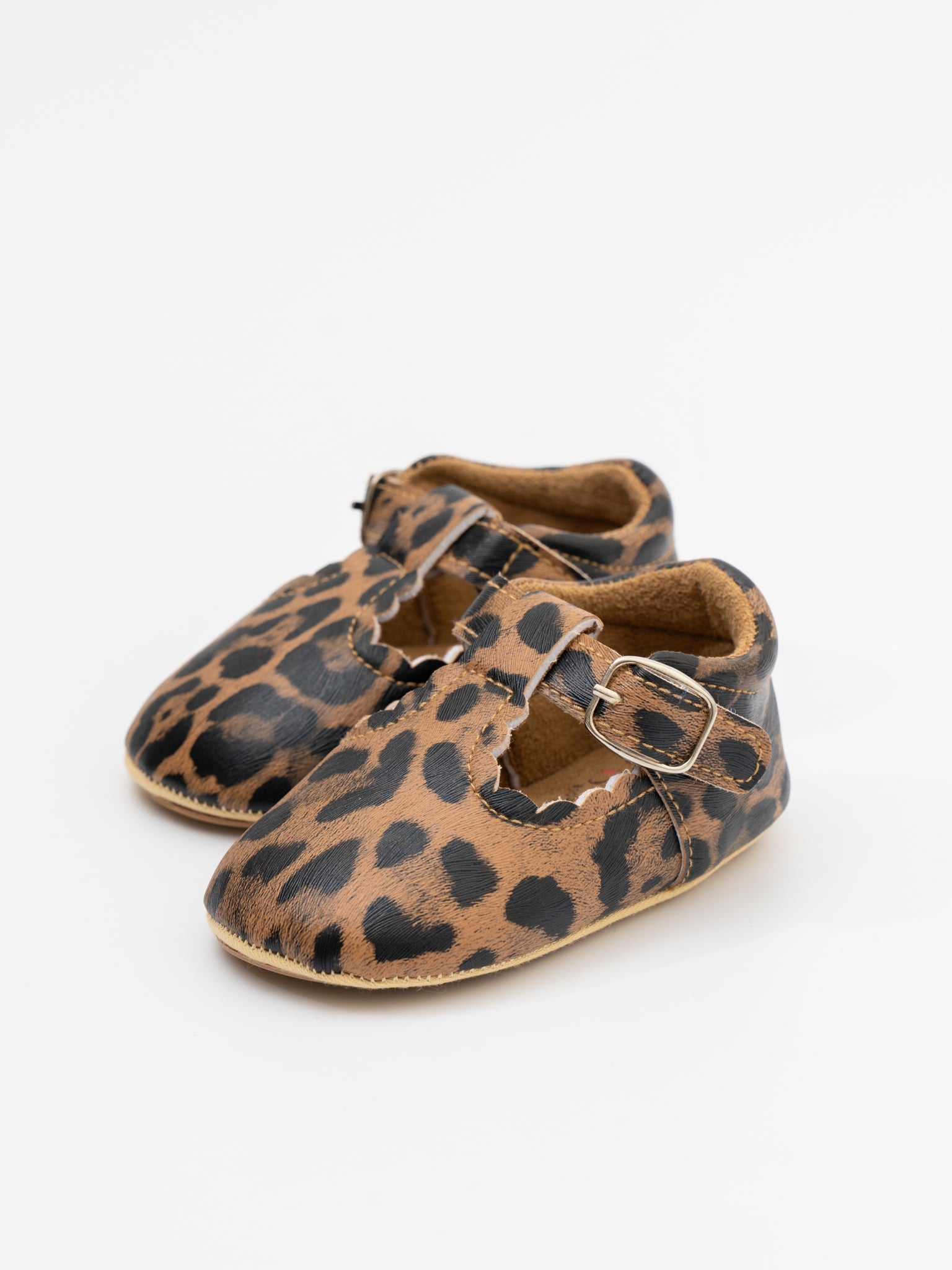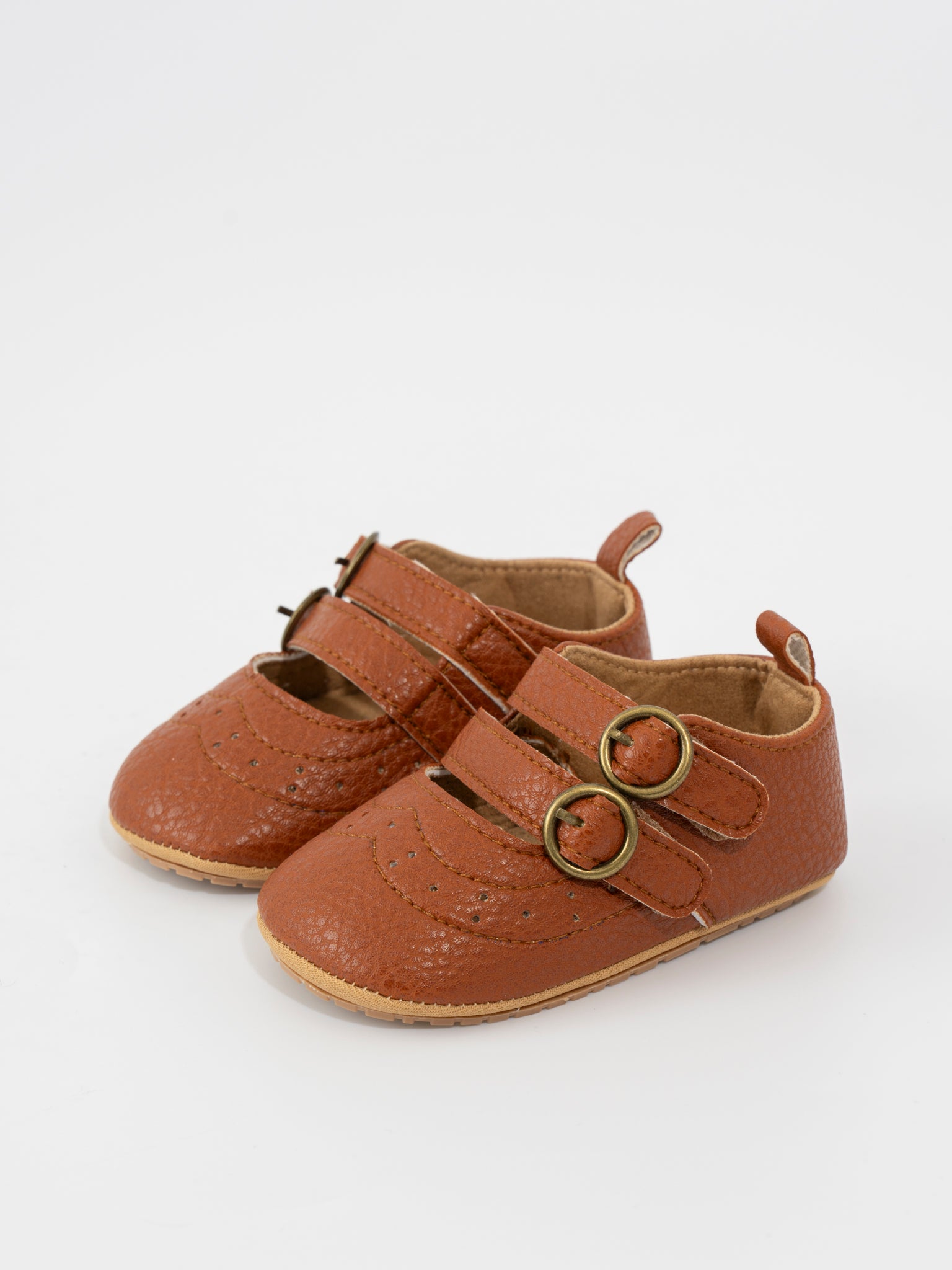 Scalloped Heel Bows Mary Jane Baby Shoes Brown