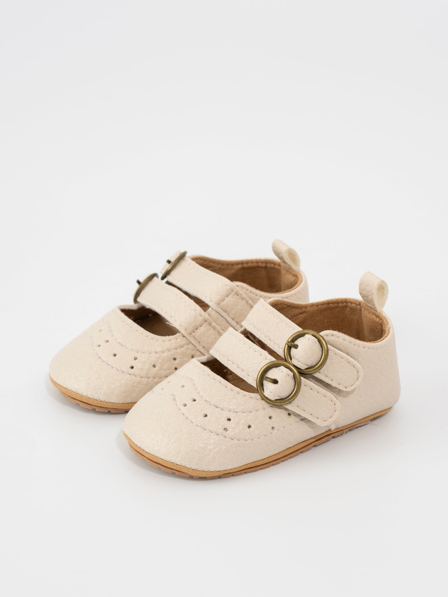 T-Strap Scalloped Buckle Shoes - Oatmeal