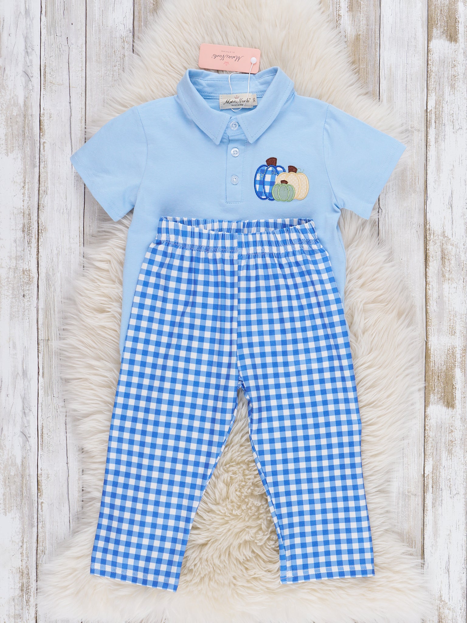 Pumpkin Patch Skies Embroidered Plaid Outfit