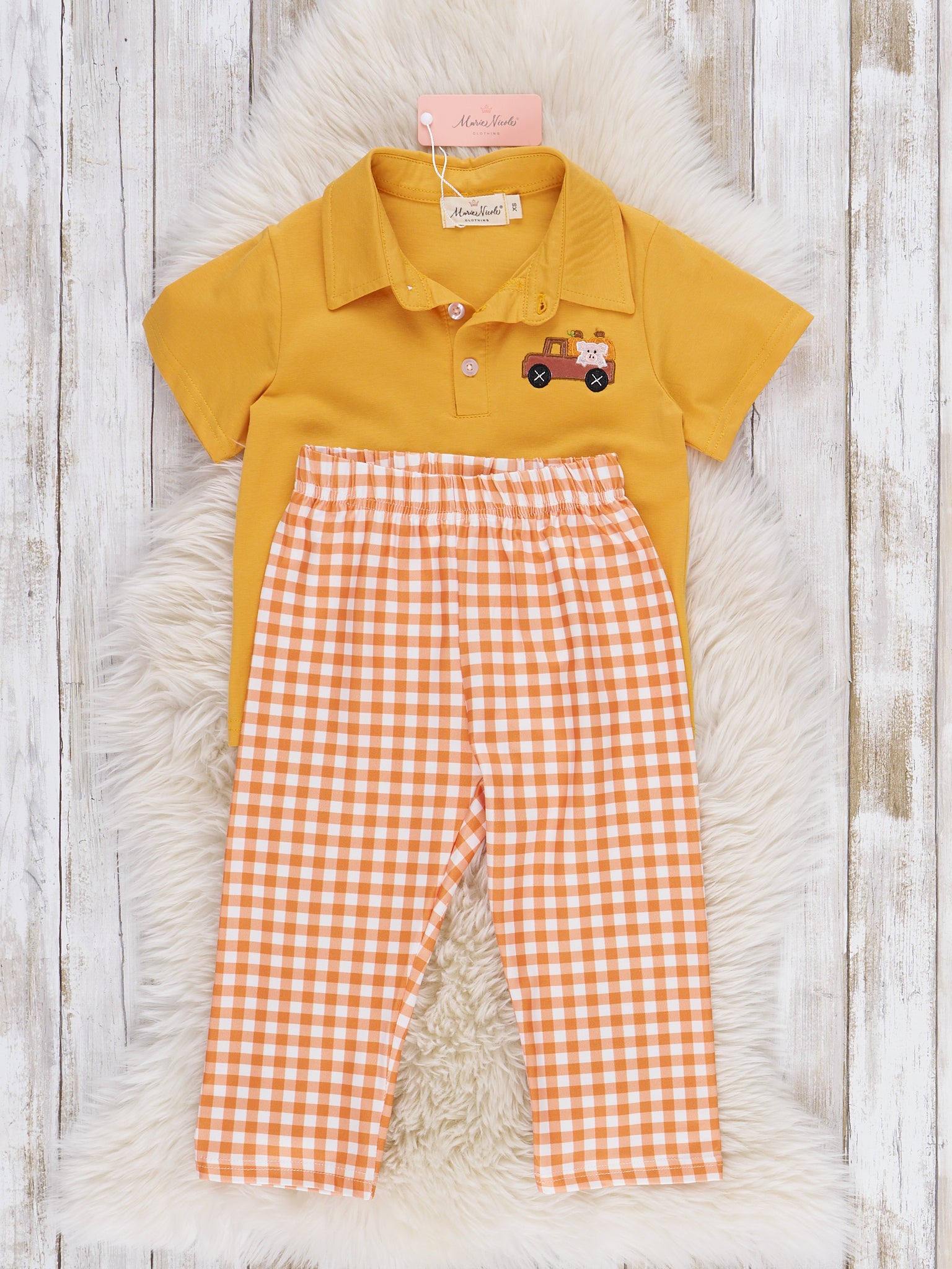 Sunshine Pumpkin Embroidered Plaid Outfit