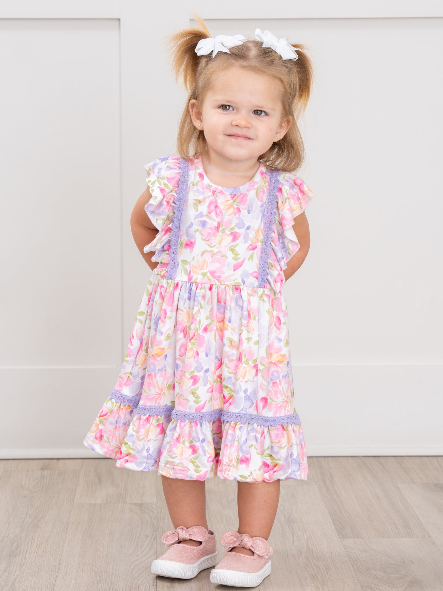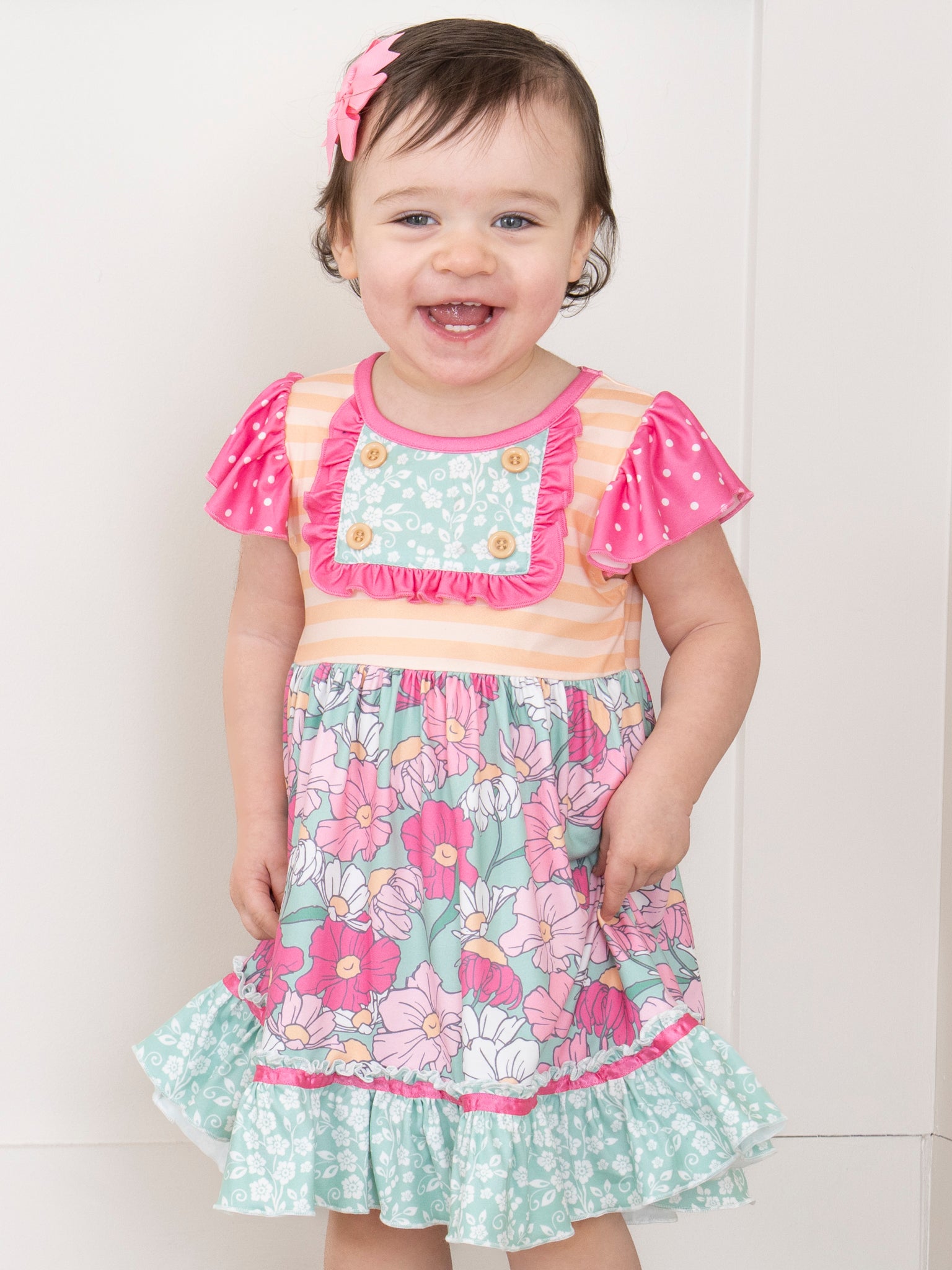 Sweet Blooms Floral Ruffle Dress - Cosmos