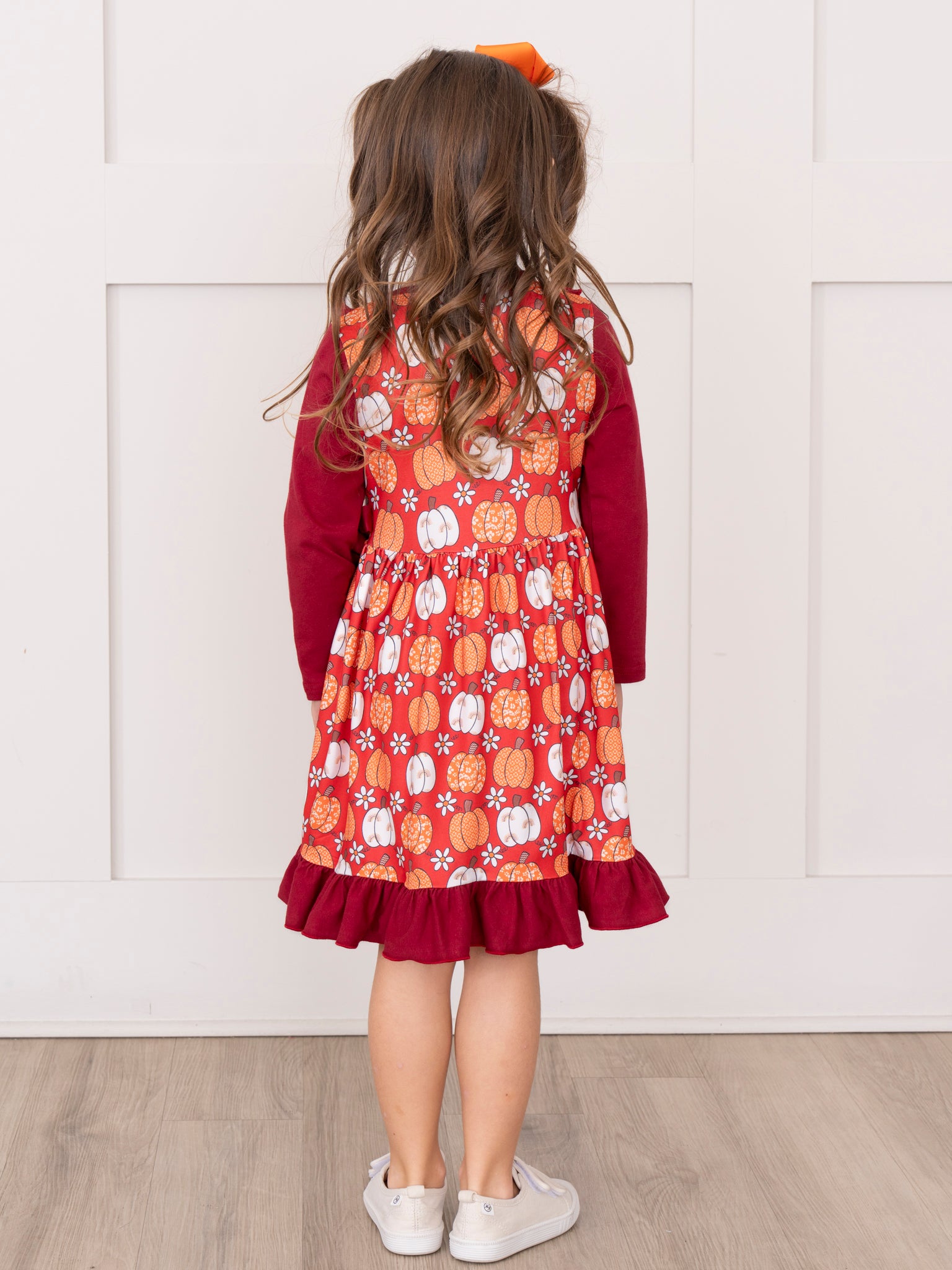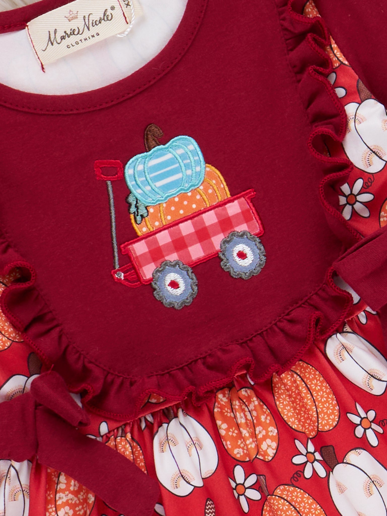 Maroon Pumpkin Wagon Embroidered Bow Dress