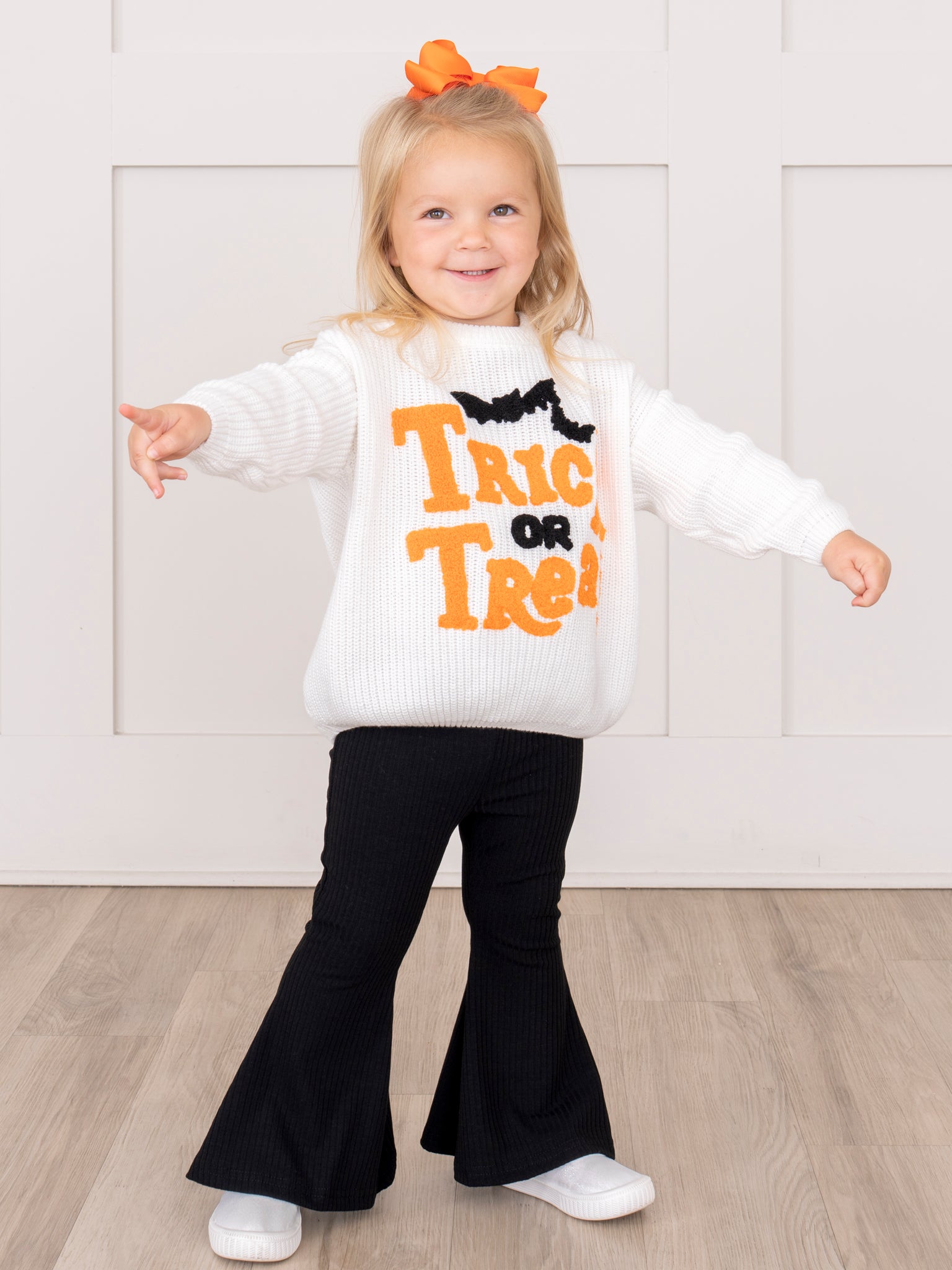 Take on the season with style! The Black Ribbed Bell Bottoms introduce an elevated texture with an iconic bell bottom silhouette. In soft, sleek black fabric, this Marie Nicole Clothing piece is versatile, matching well with any top. It is suitable for casual and dressed-up occasions, so make sure to add this staple to your little girl's wardrobe!