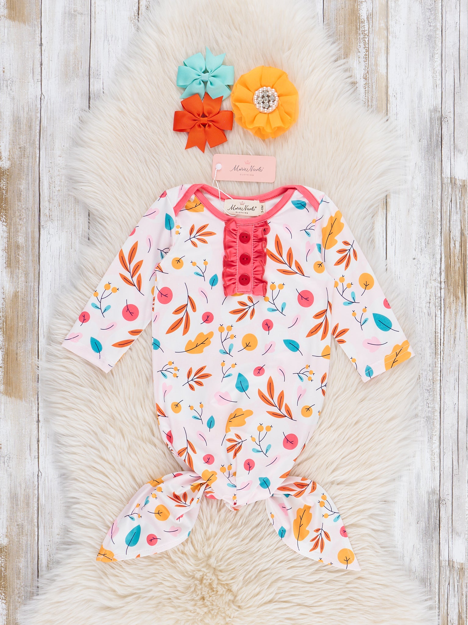 Peach & Green Daisy Garden Ruffle Knot Gown