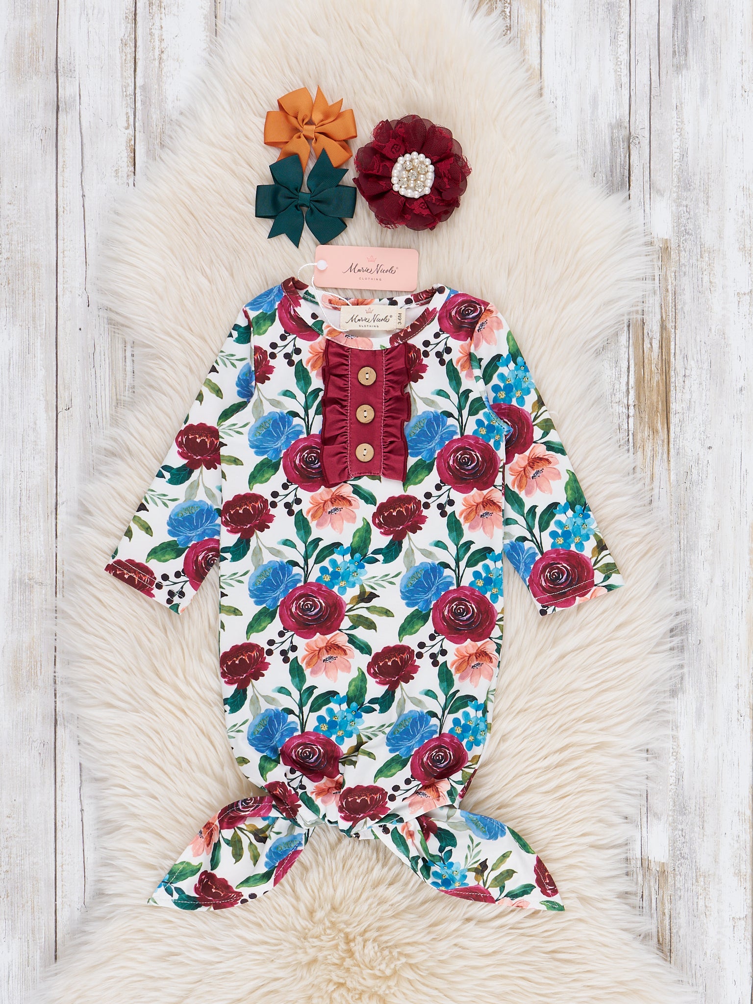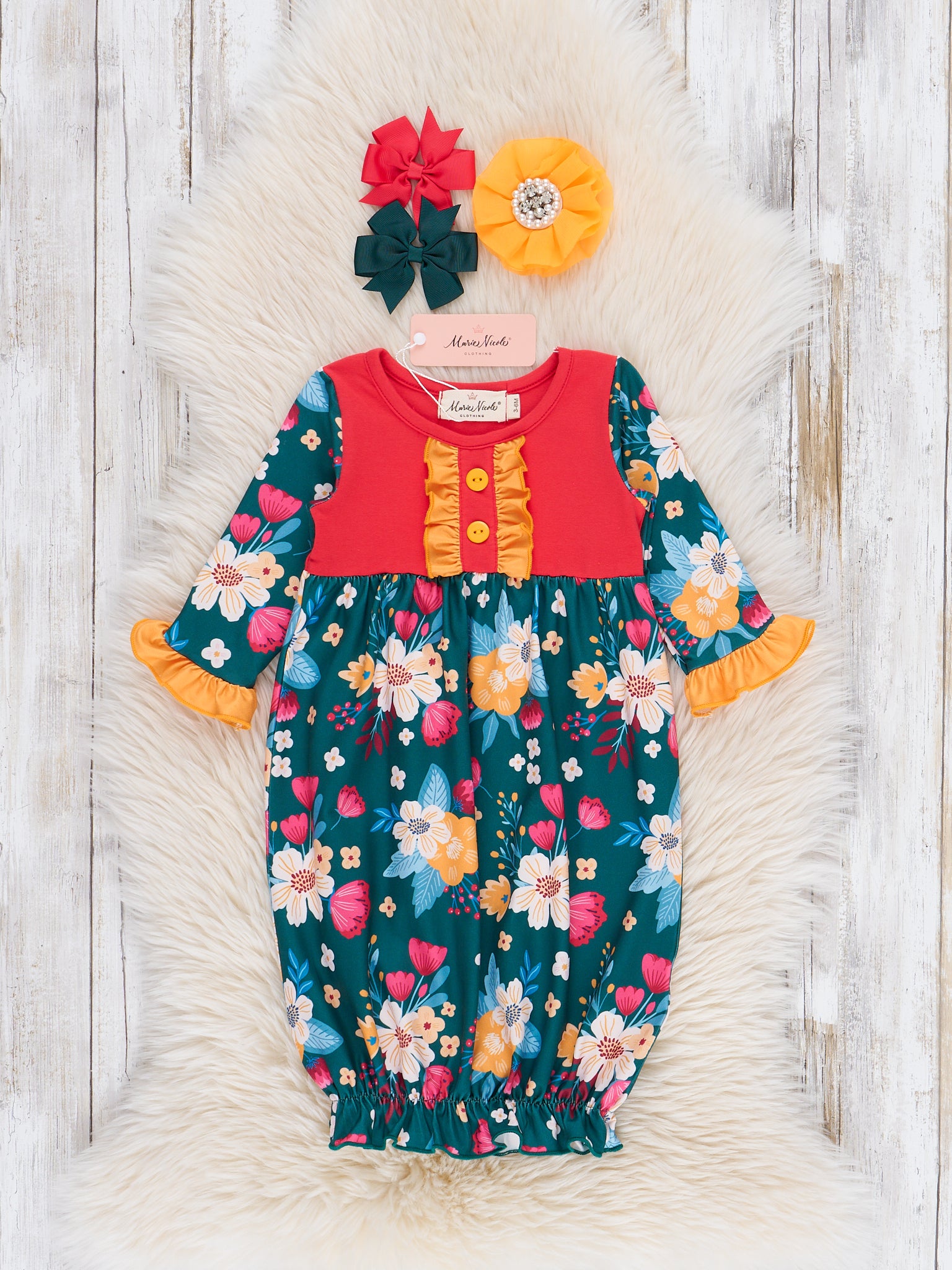Pink & Blue Beautiful Blooms Sleeper Gown
