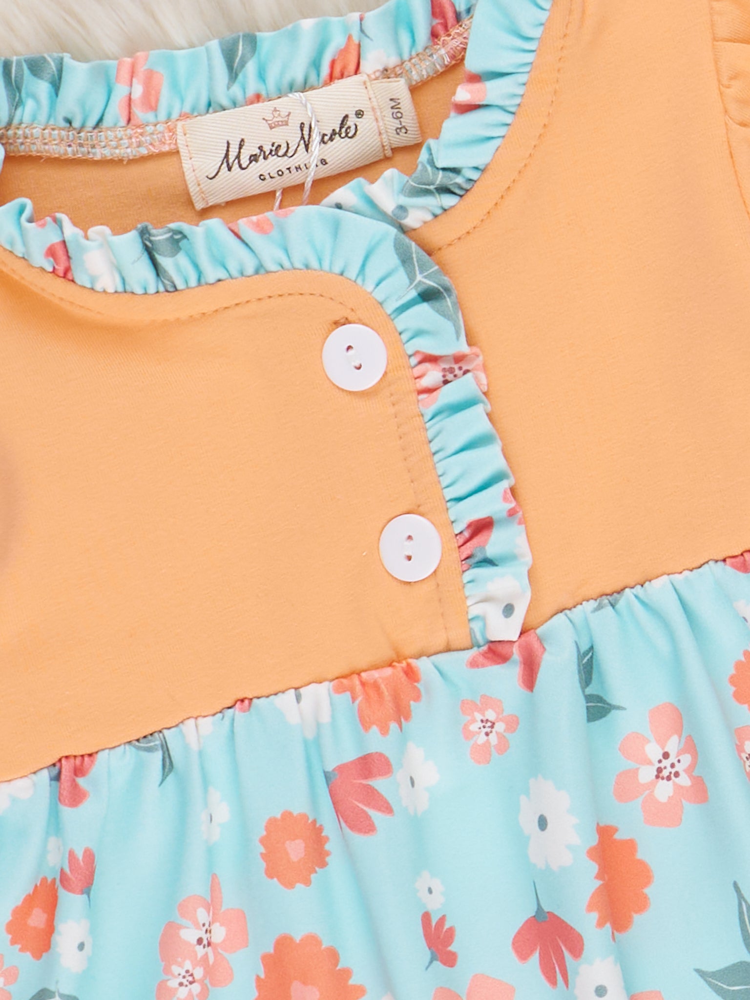 The Golden Blooms Floral Ruffle Knot Gown is a sweet and cozy choice perfect for your little one’s first moments and dreamy days. Featuring the same delicate floral print in warm golden tones as the dress, this gown from Marie Nicole Clothing is finished with soft ruffle accents and an easy knot bottom for quick changes. Made from soft, breathable fabric, it’s ideal for snuggles, naps, and capturing those golden hour memories.