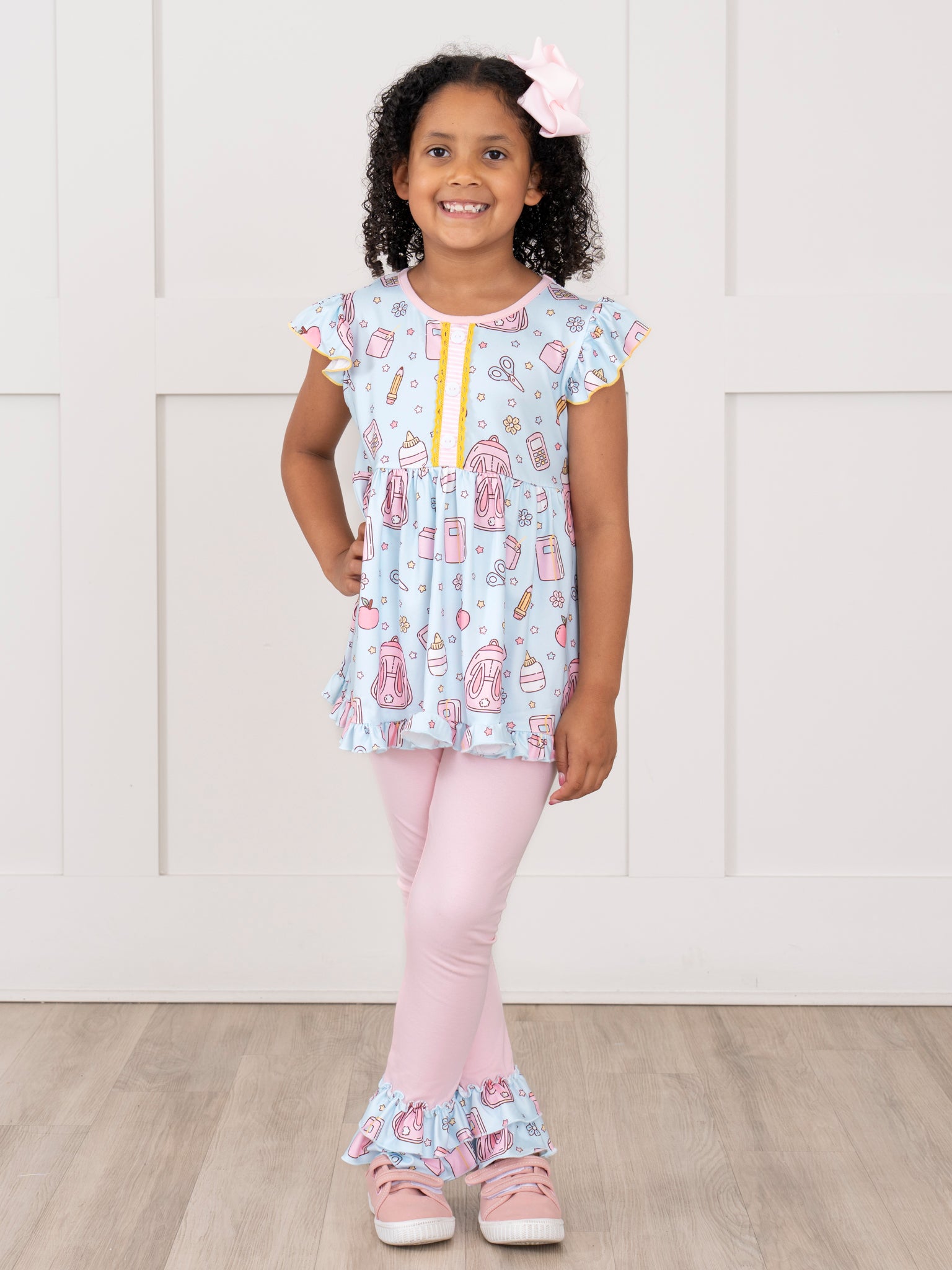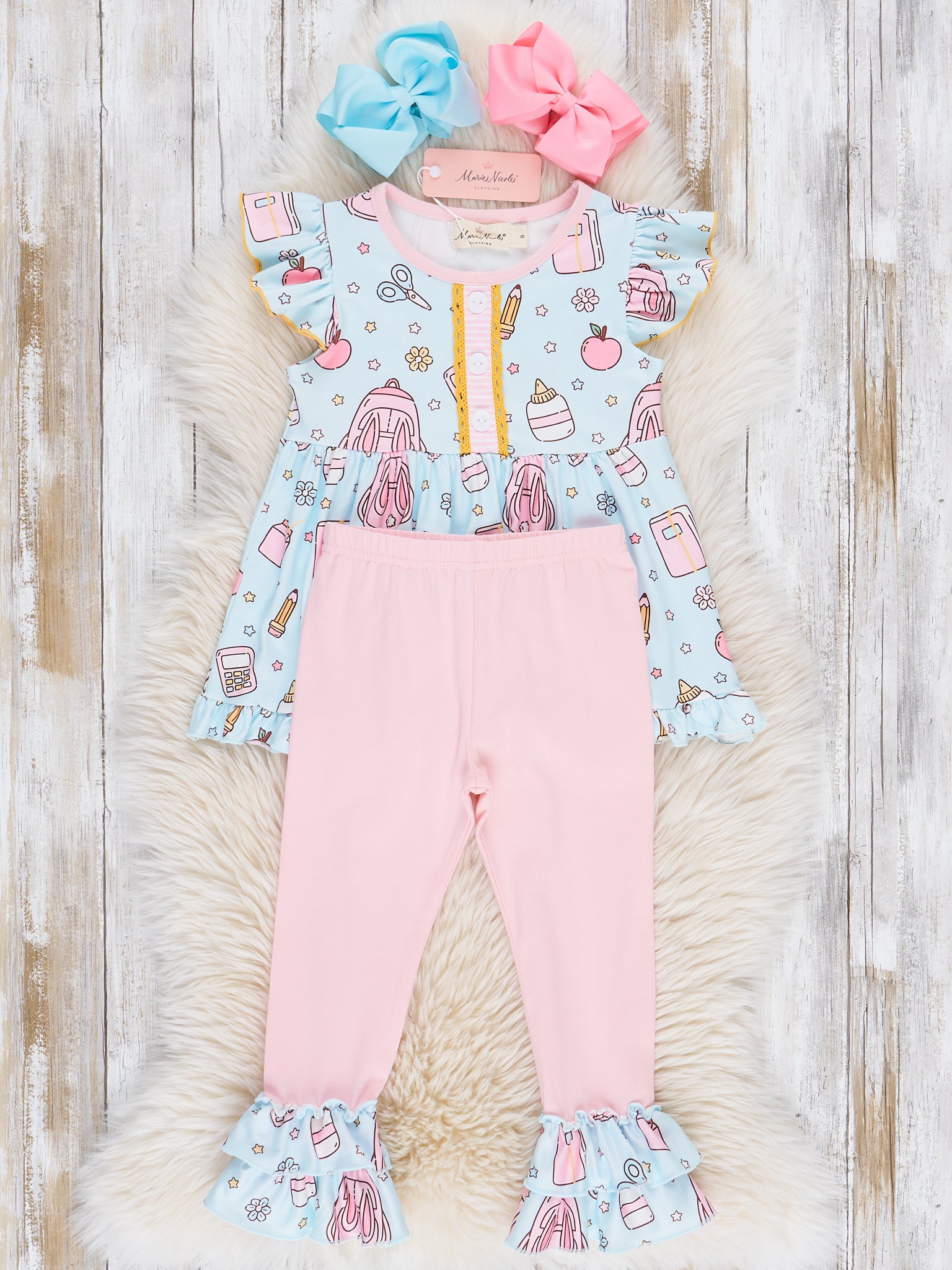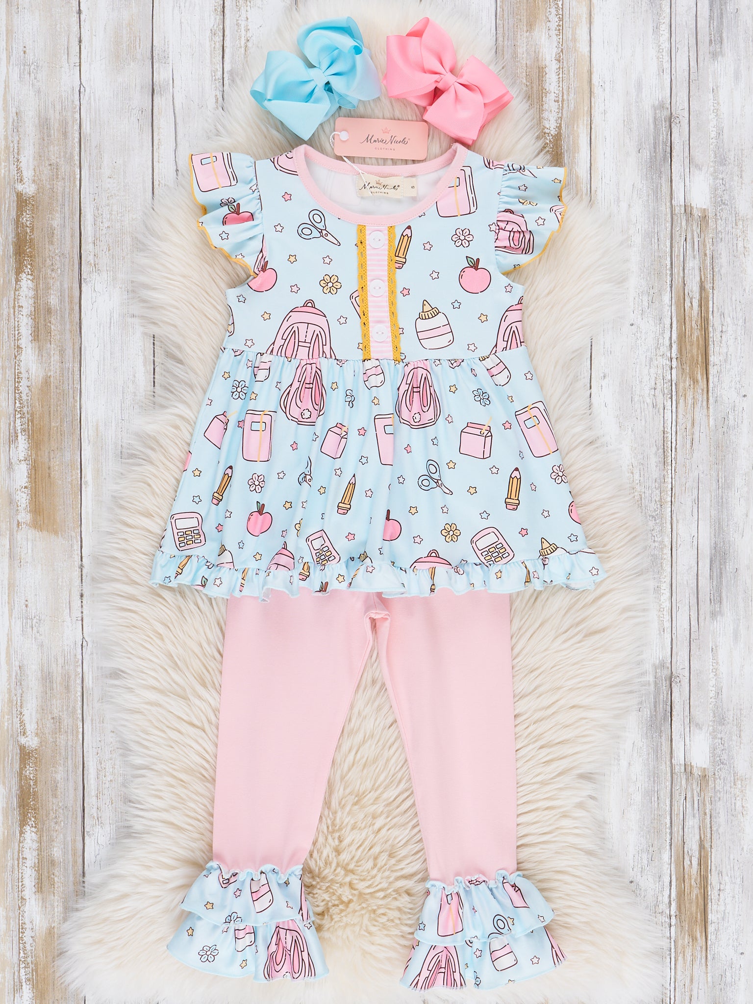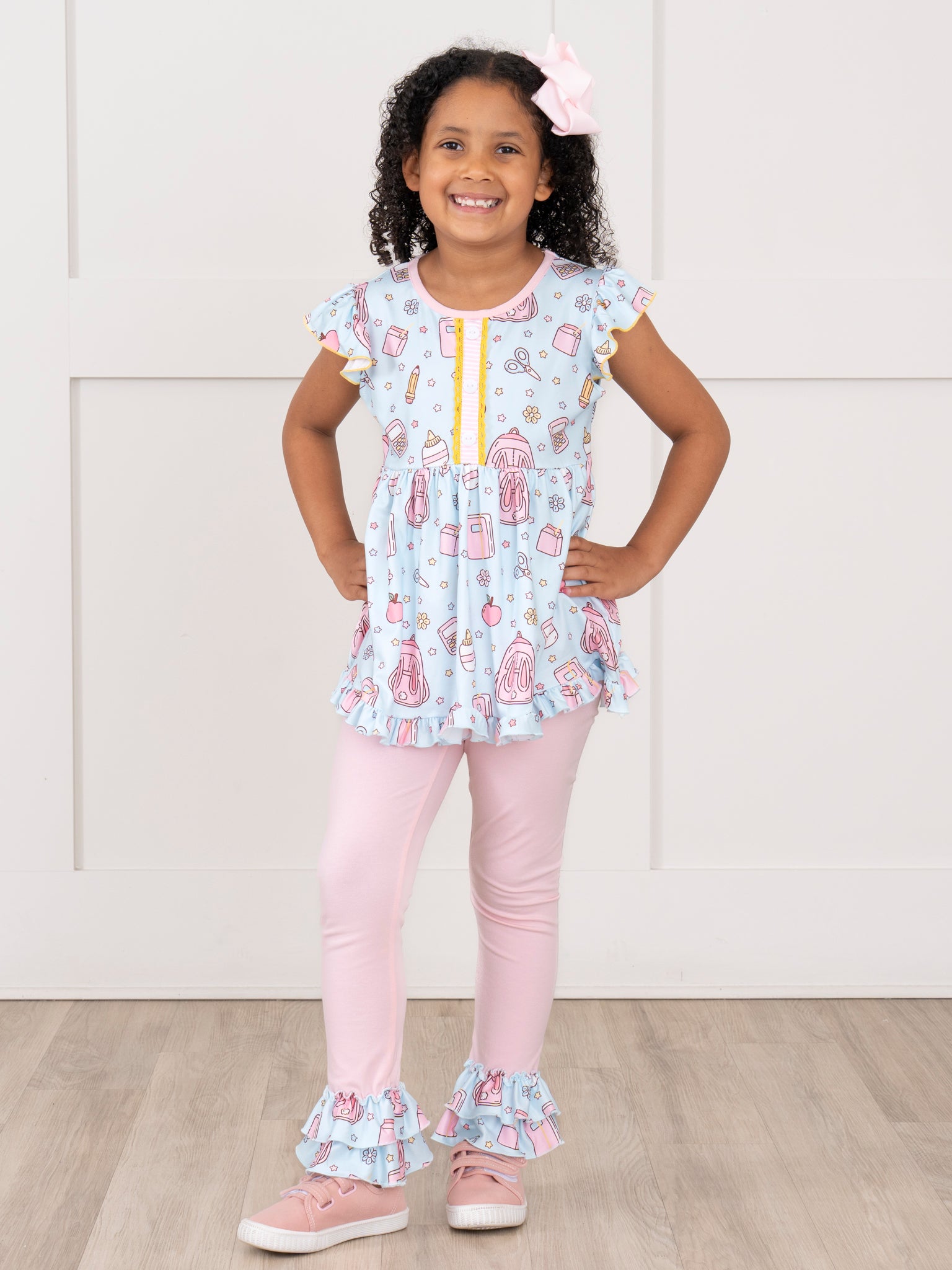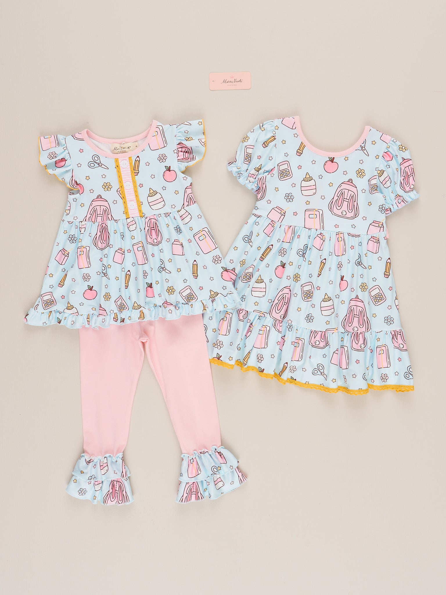 The Off to Class Ruffle Outfit is a polished and playful piece that’s perfect for picture day, classroom fun, or any school-day adventure. Featuring sweet ruffle details and classic back-to-school charm, this outfit from Marie Nicole Clothing blends timeless style with all-day comfort. Soft, breathable fabric makes it easy to wear from morning bell to afternoon play.