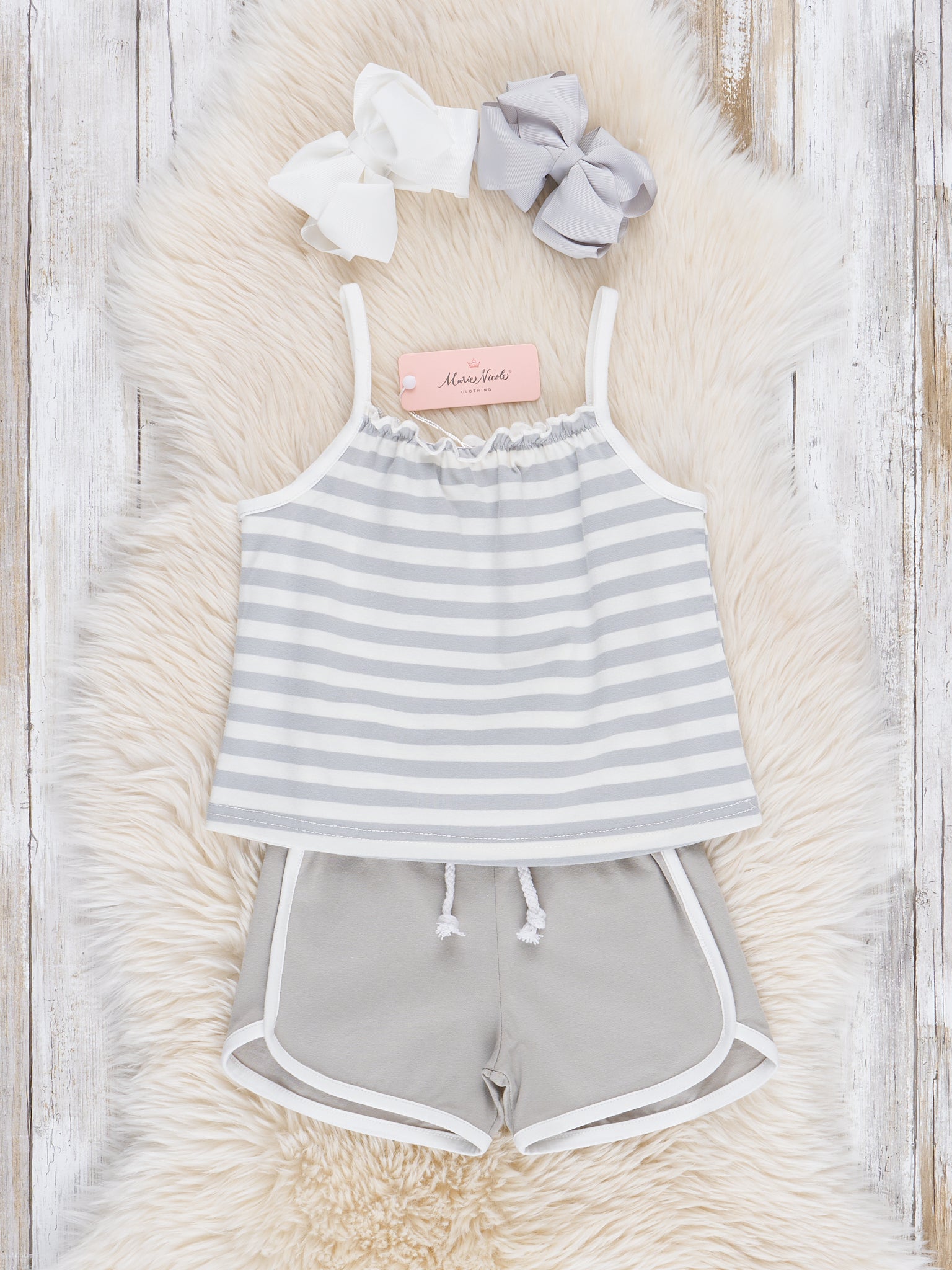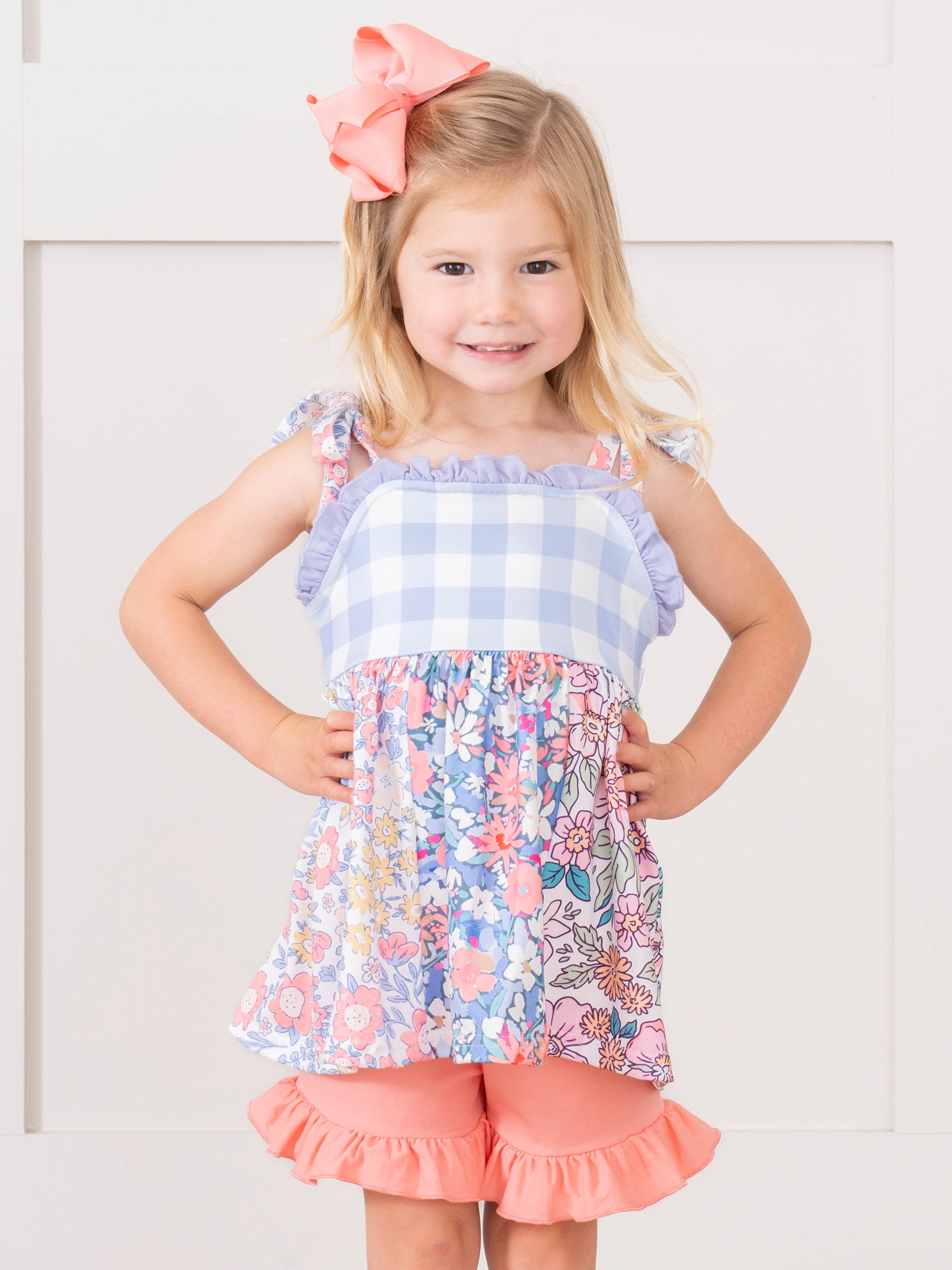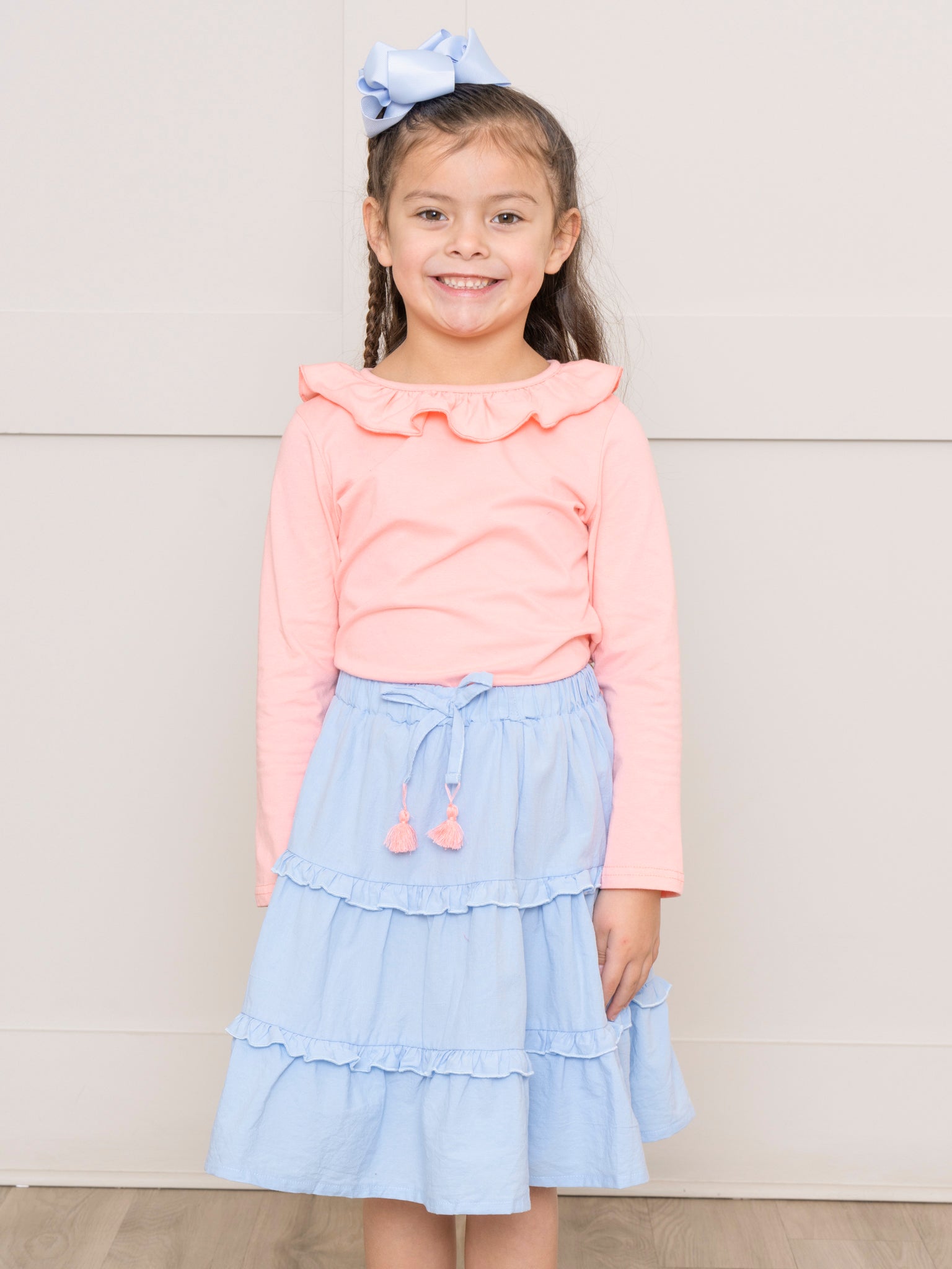 Peach & Chambray Ruffle Outfit w/ Skirt