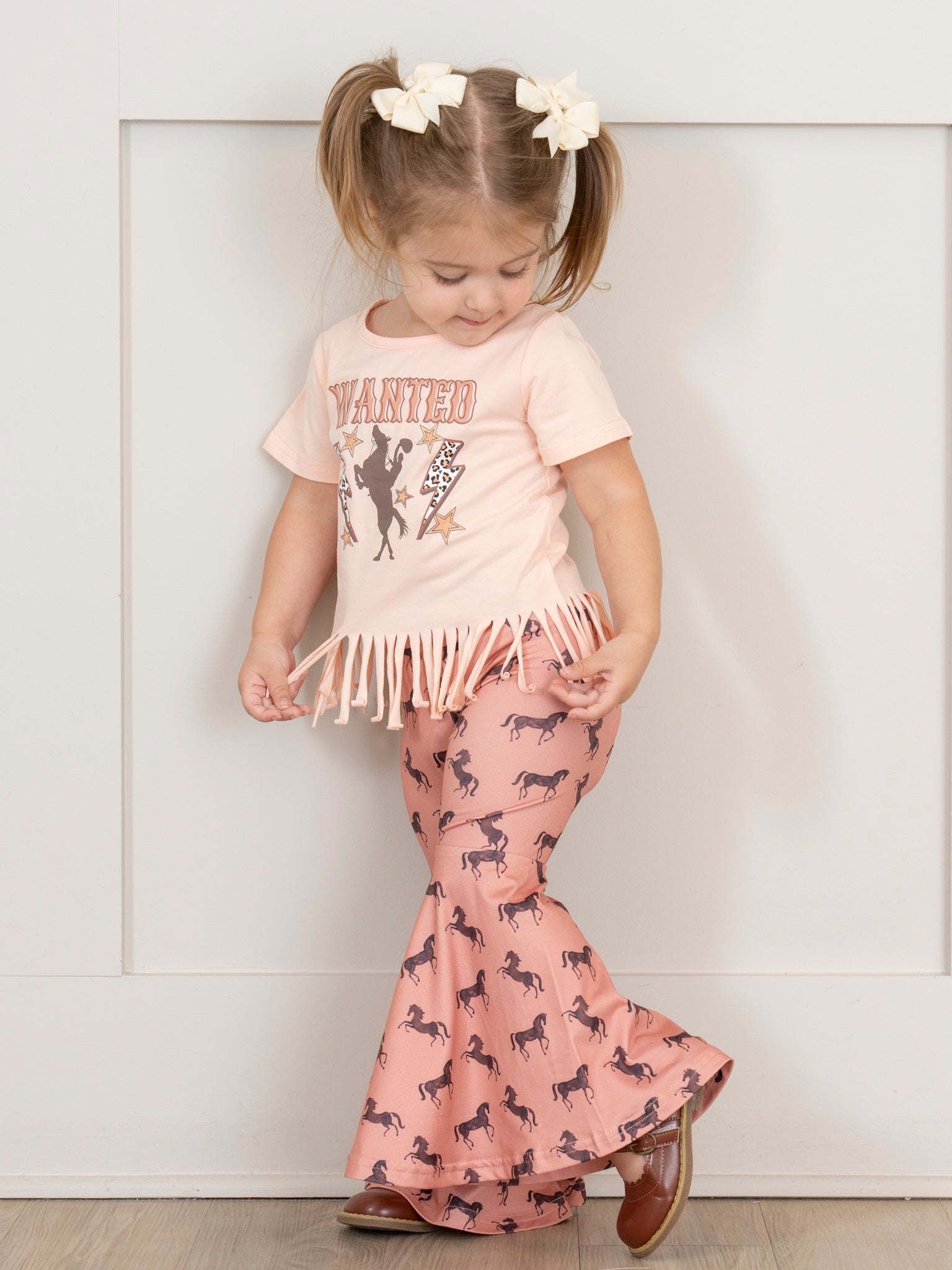 "Wanted" Fringe Top & Horse Bell Bottoms Outfit