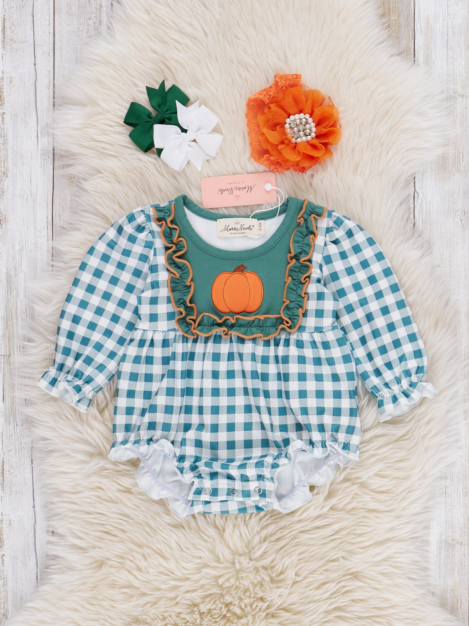Picnic in the Pumpkin Patch Embroidered Plaid Ruffle Romper