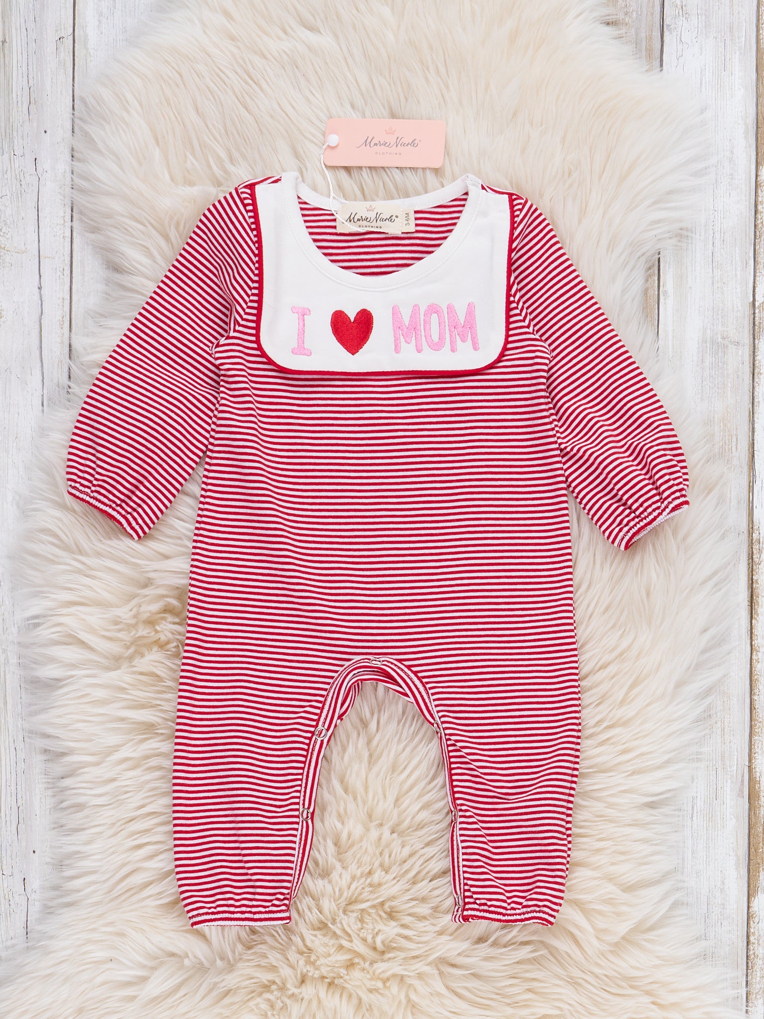 Maroon Pumpkin Wagon Embroidered Striped Romper