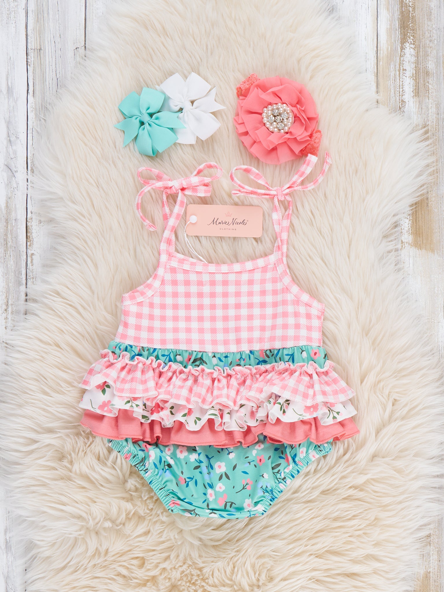 Tiny Spring Blossoms Smocked Ruffle Bubble