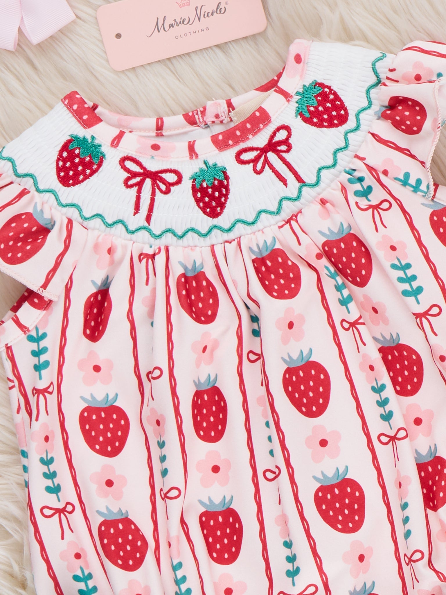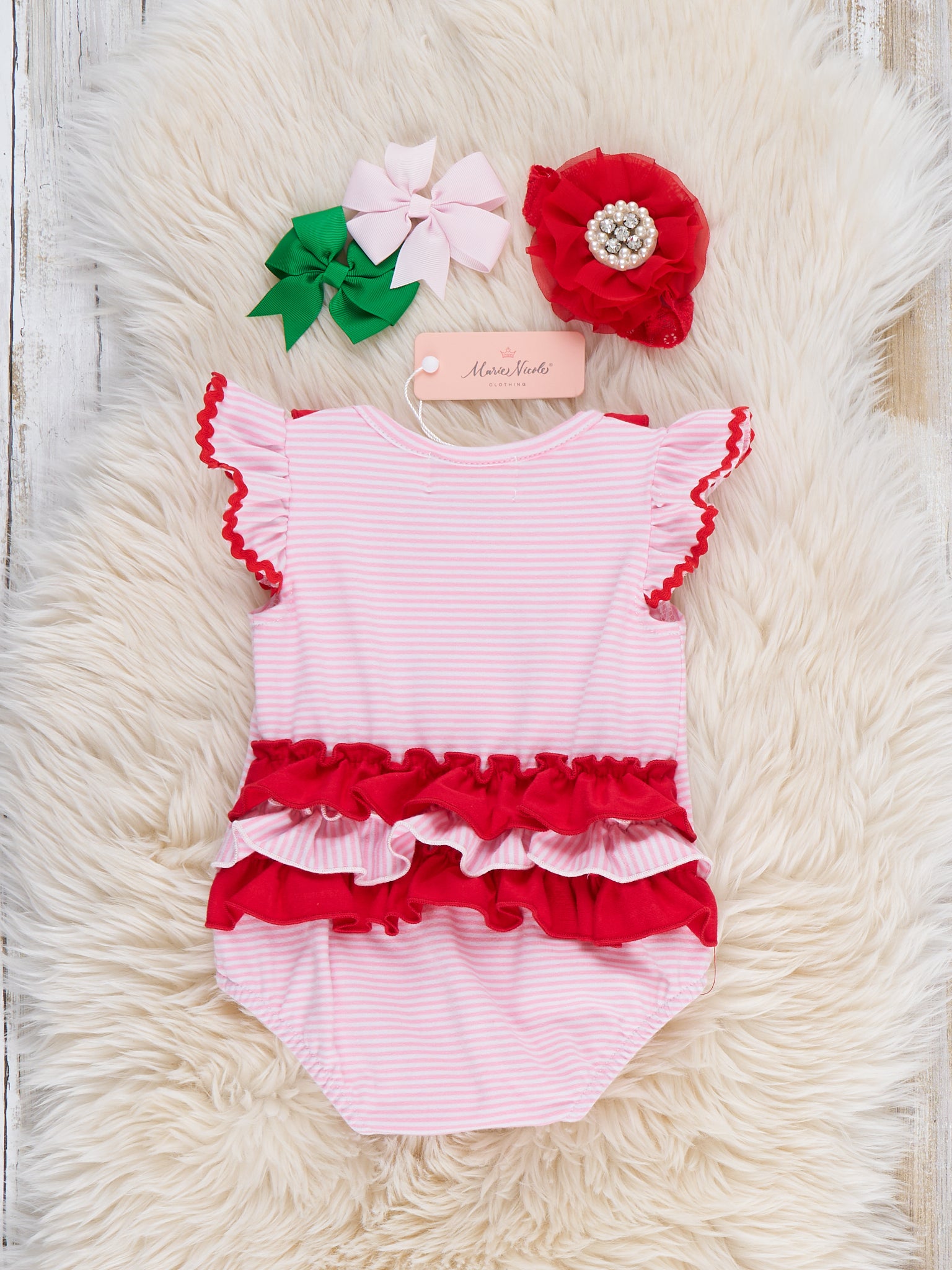 Strawberry Twins Striped Embroidered Cotton Ruffle Bubble