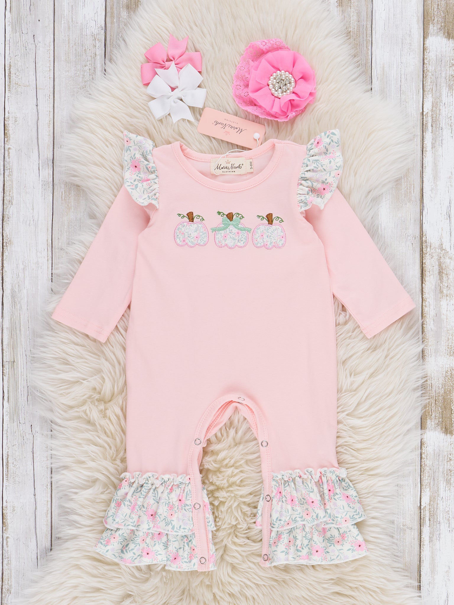 Pumpkins & Petals Ruffle Embroidered Romper