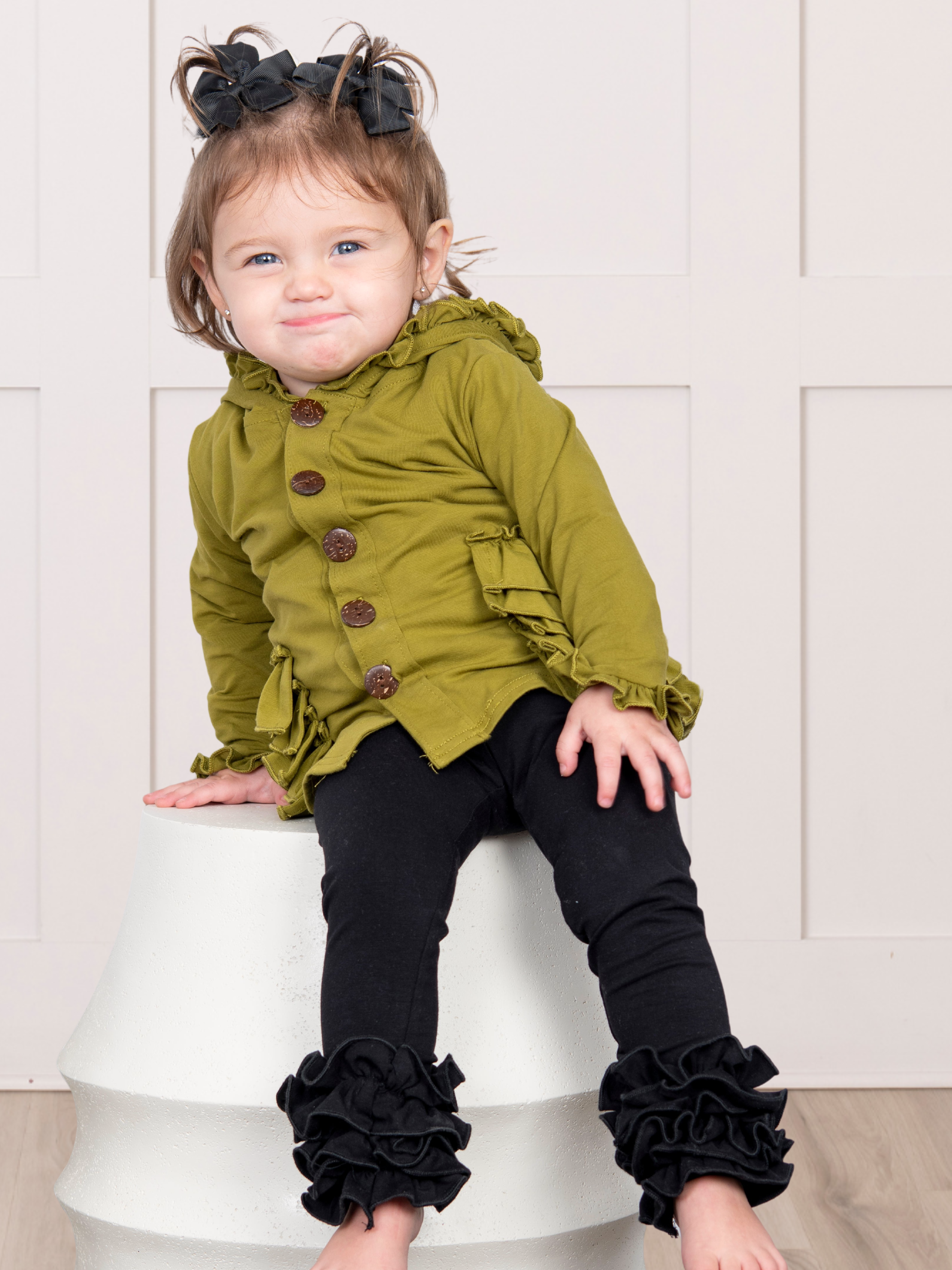 Cotton Ruffle Hooded Cardigan - Multiple Colors