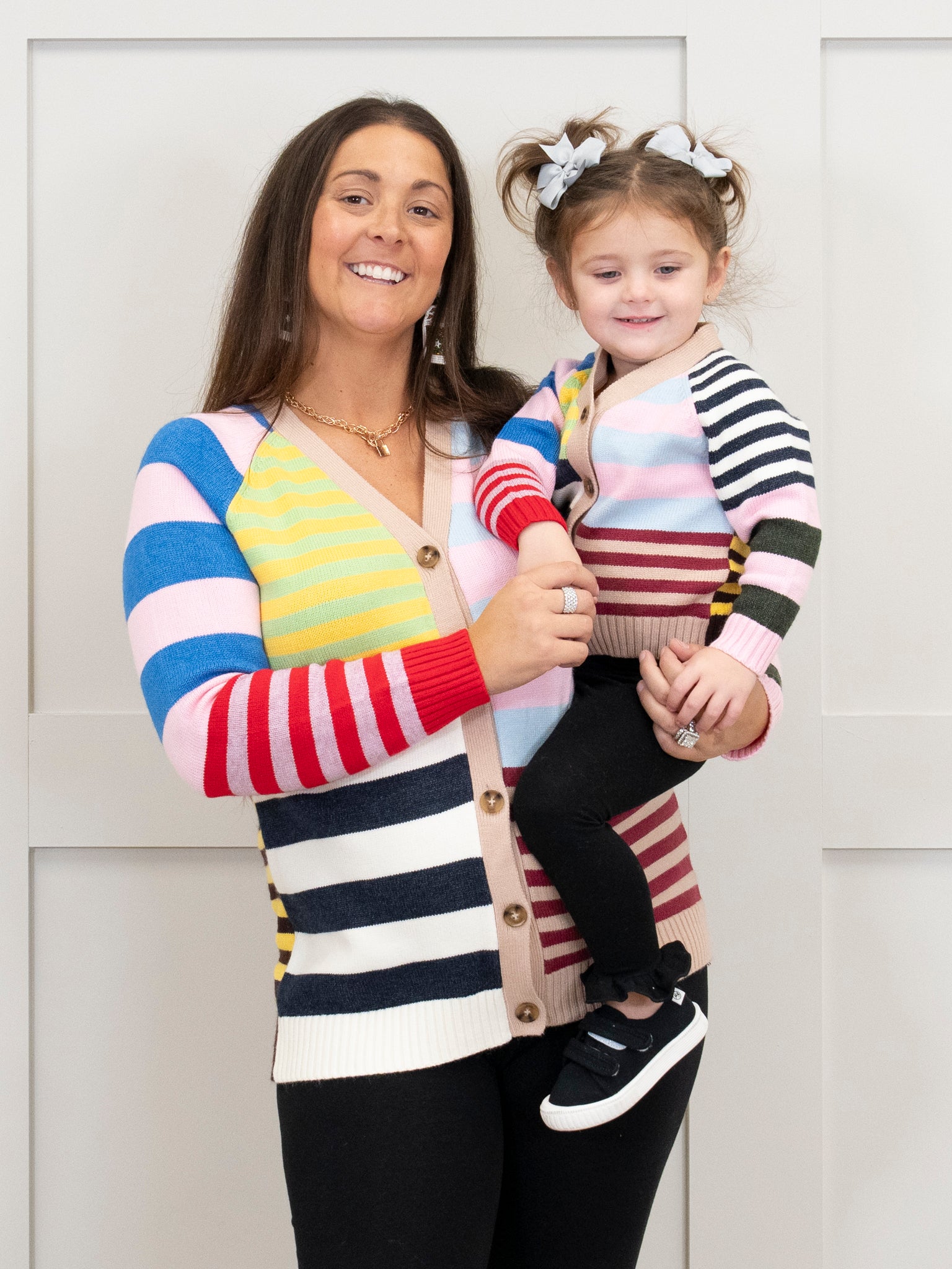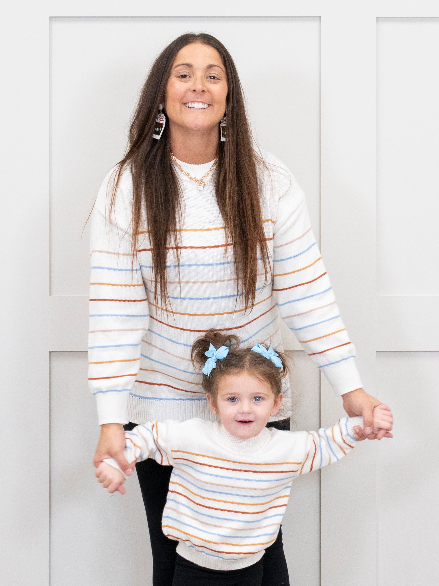 Mom & Me Bright Winter Stripes Mock Neck Sweater
