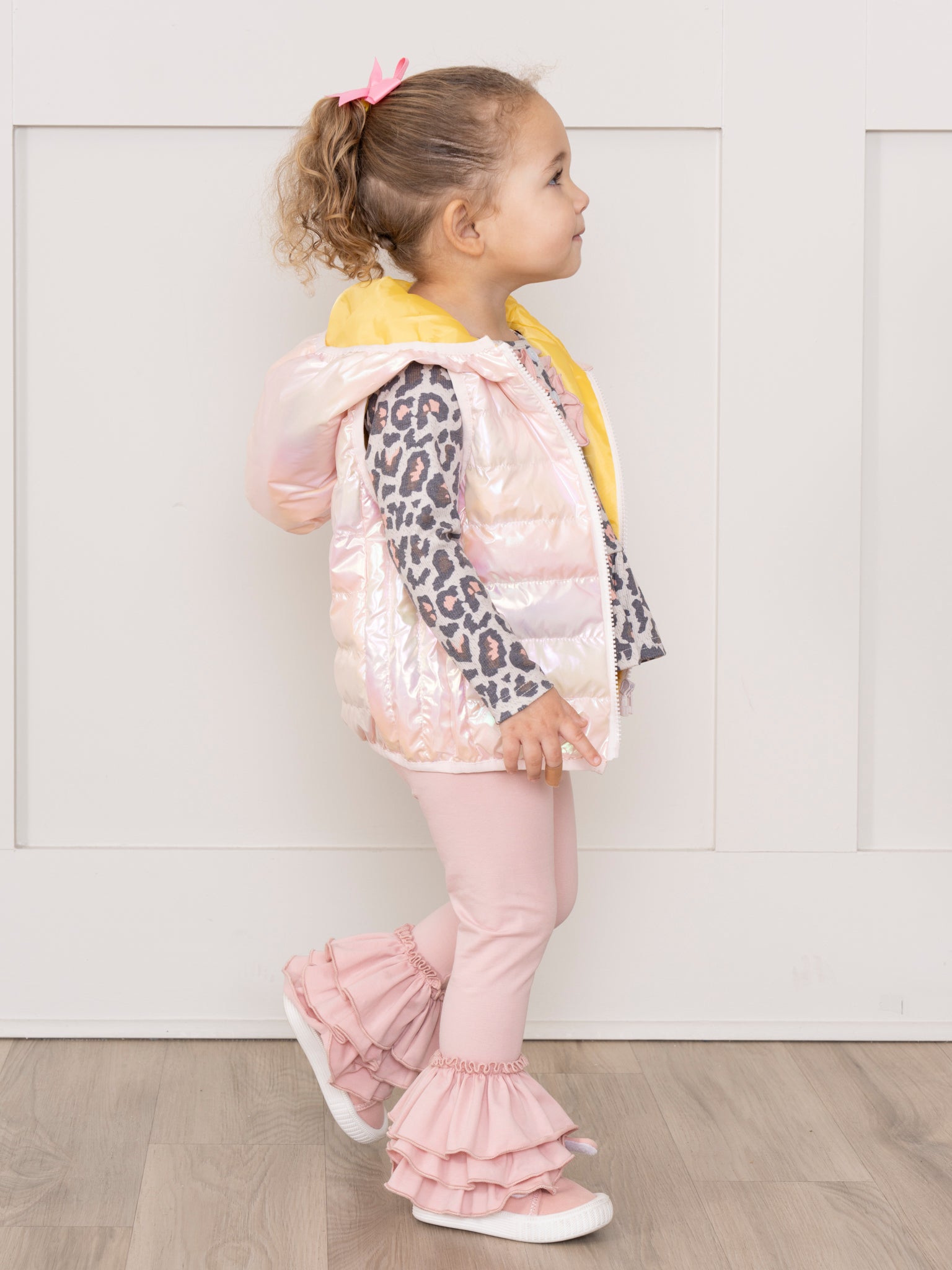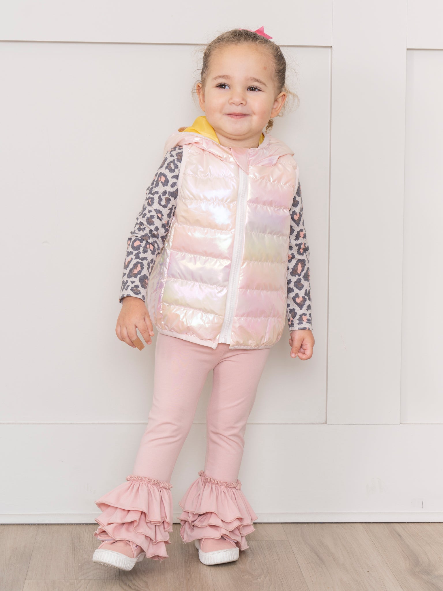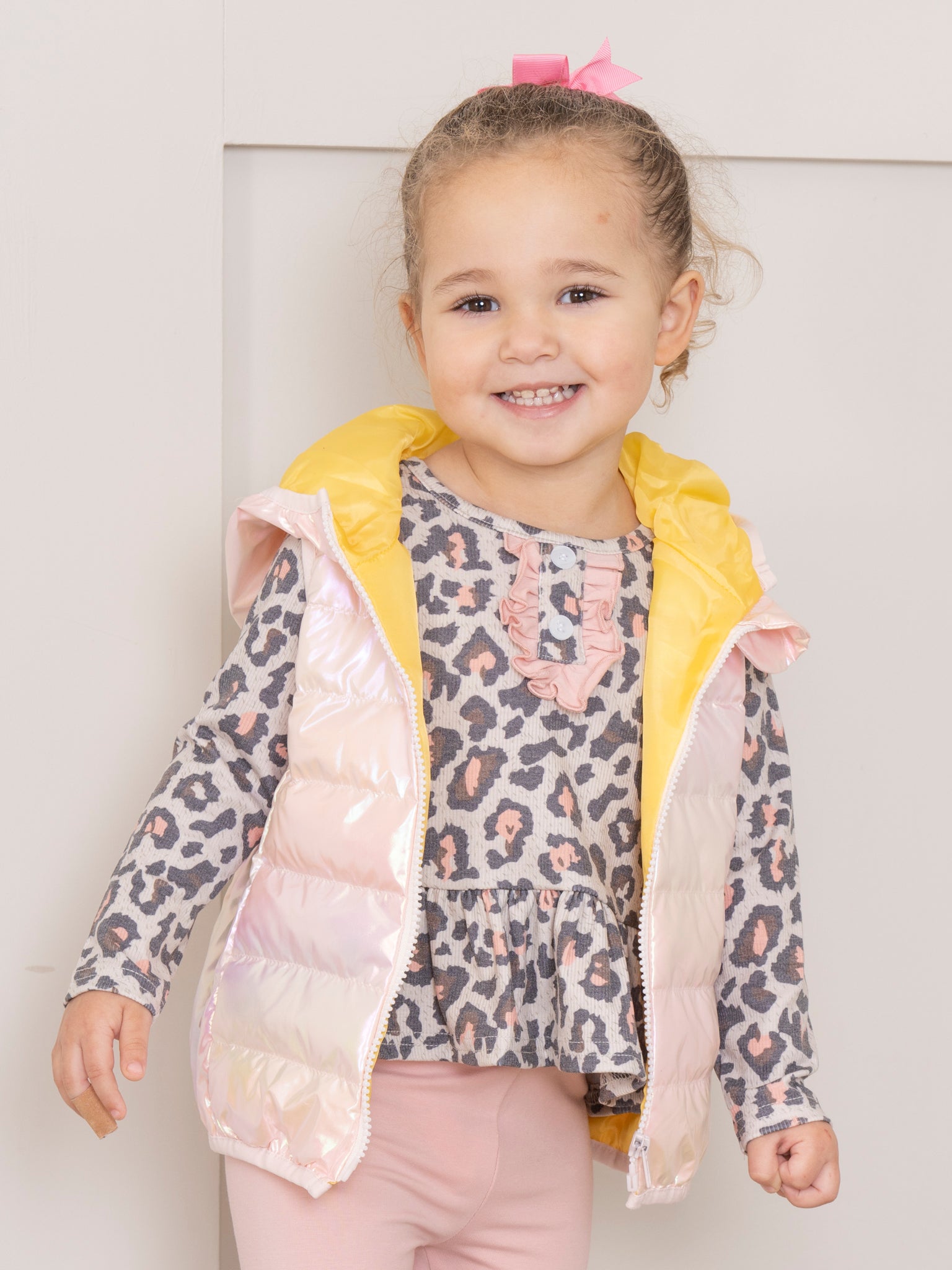 Elevate her winter wardrobe with our Girls' Hooded Iridescent Puffer Vest! ✨ This trendy vest adds a touch of sparkle to chilly days, featuring a shimmery iridescent finish that captures attention effortlessly. Perfect for layering, it's a stylish choice to keep her warm while shining bright through the season!
