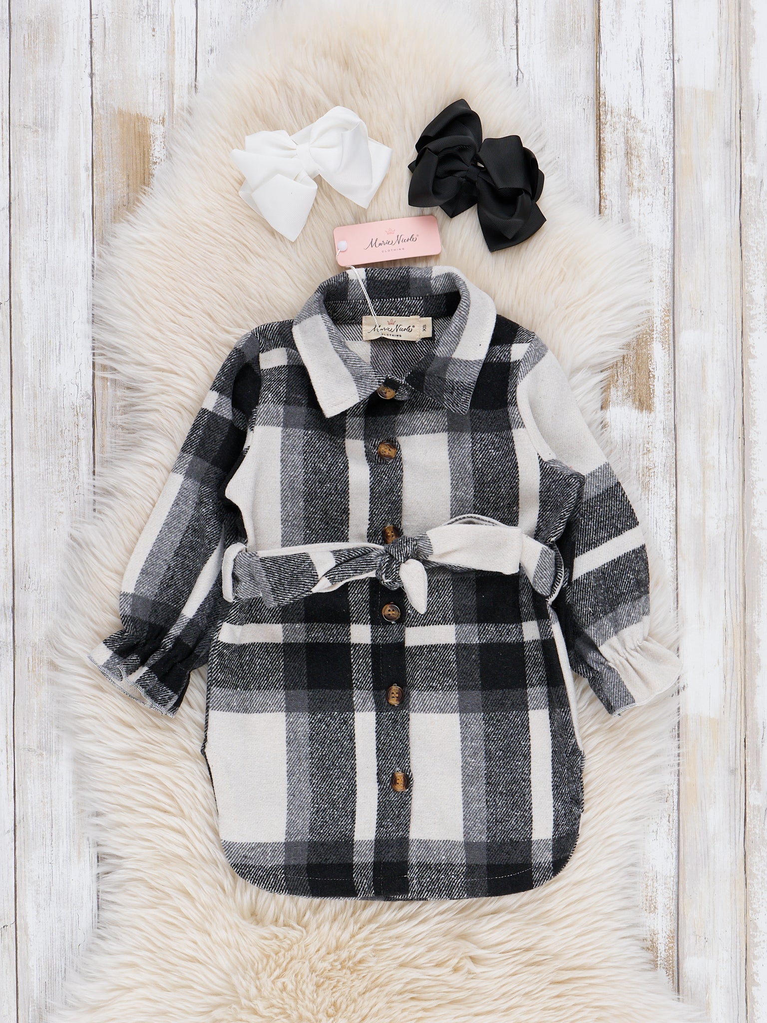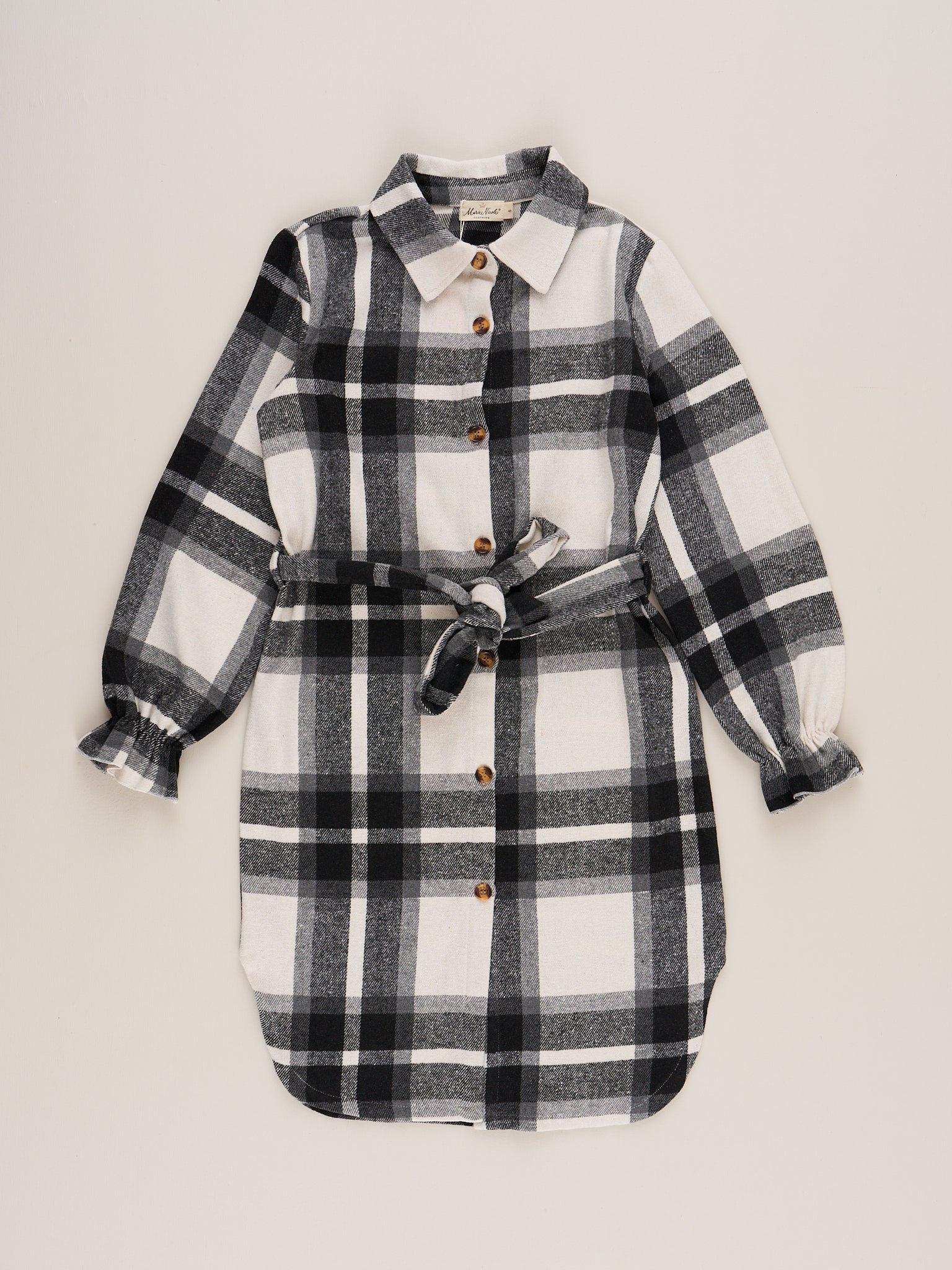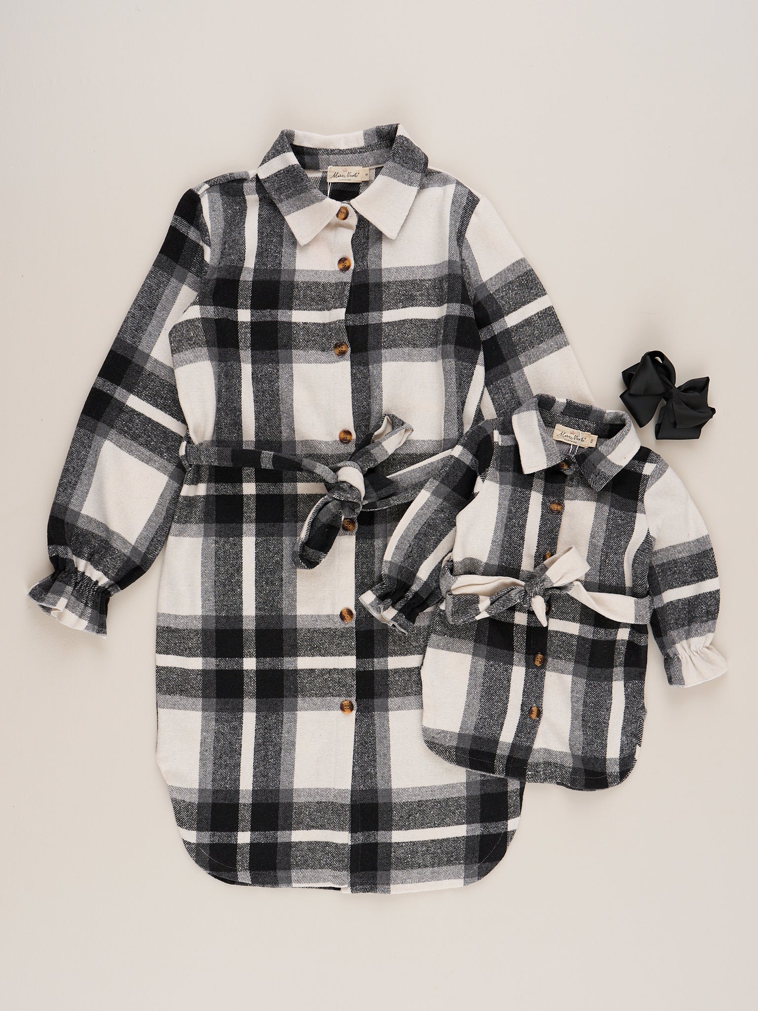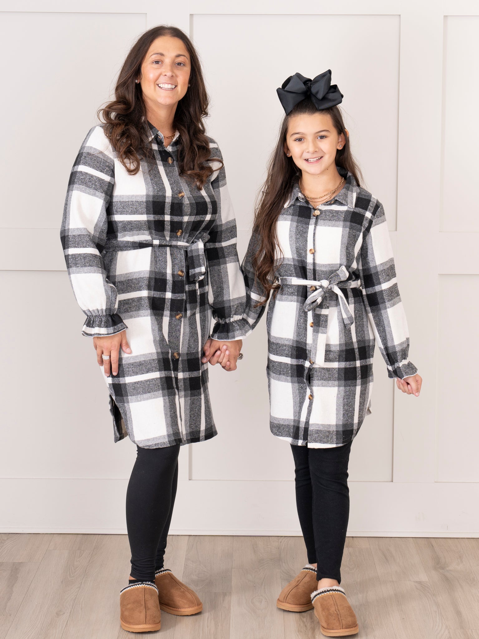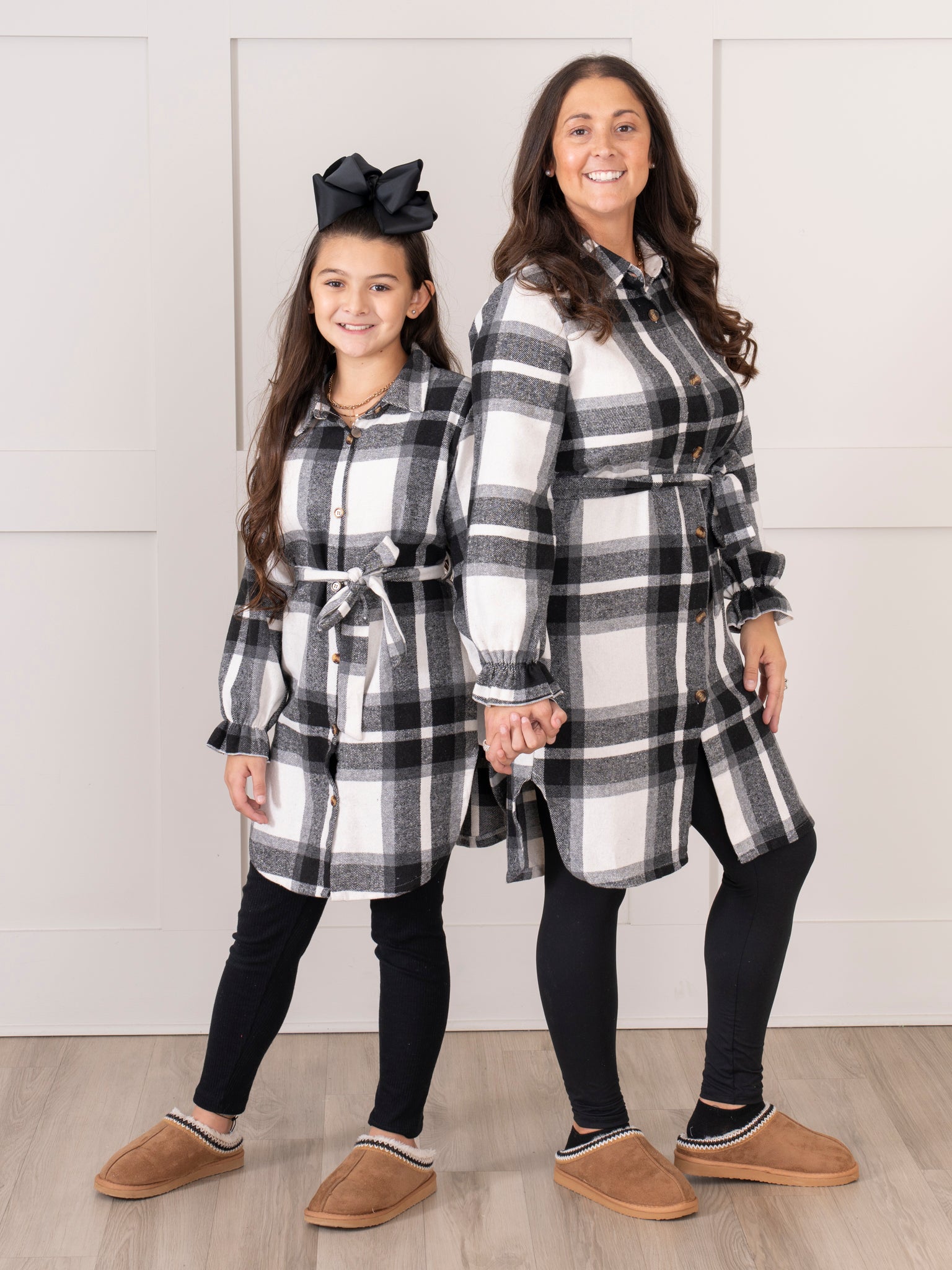 Mom & Me Long Flannel Tunic - Black & White Plaid