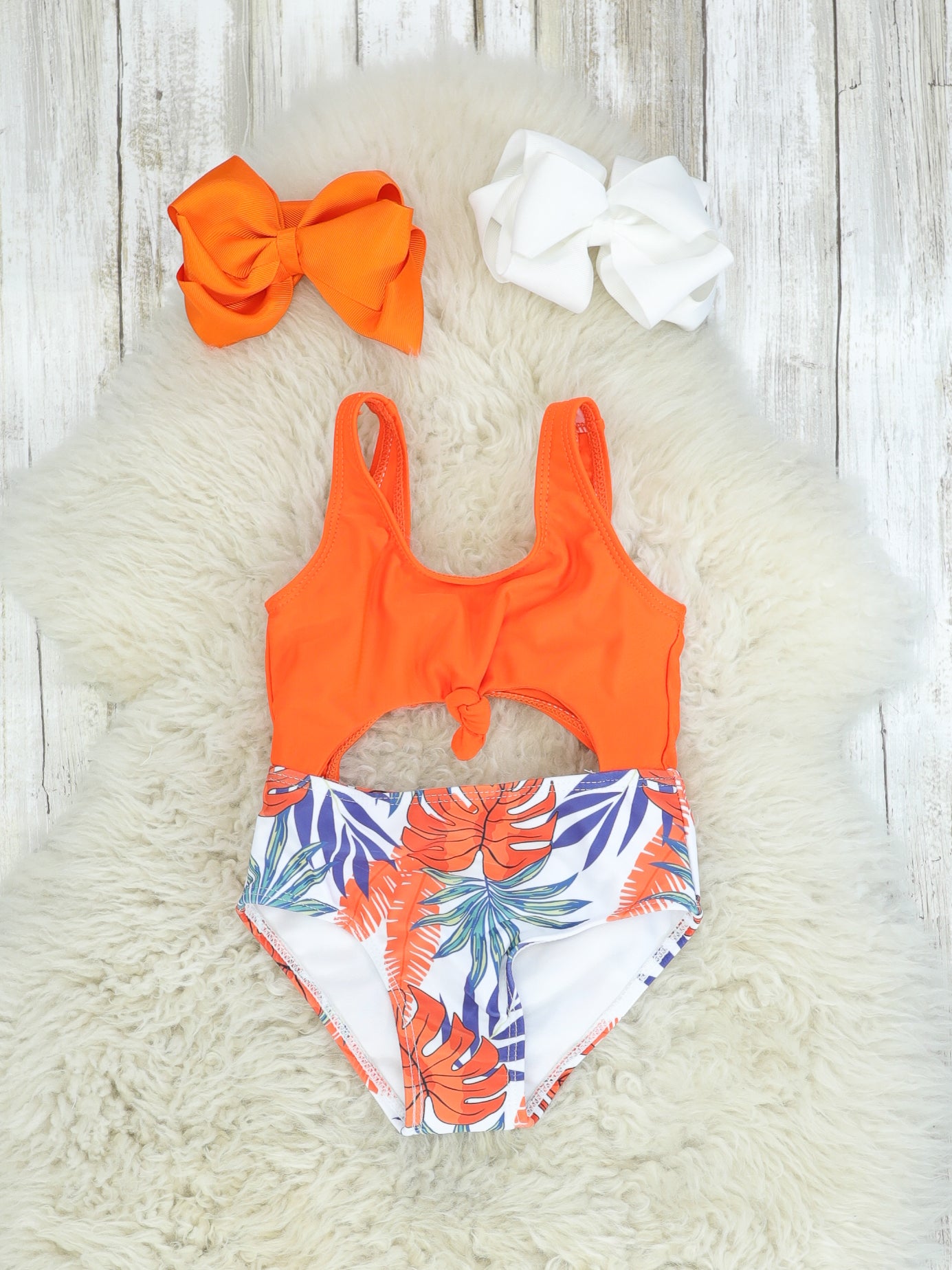 I love this suit so much! Love the one piece tie sides. The color is great, nice and bright! Size is perfect. My daughter wears between a 3t and 4t and the 3t suit fits great
