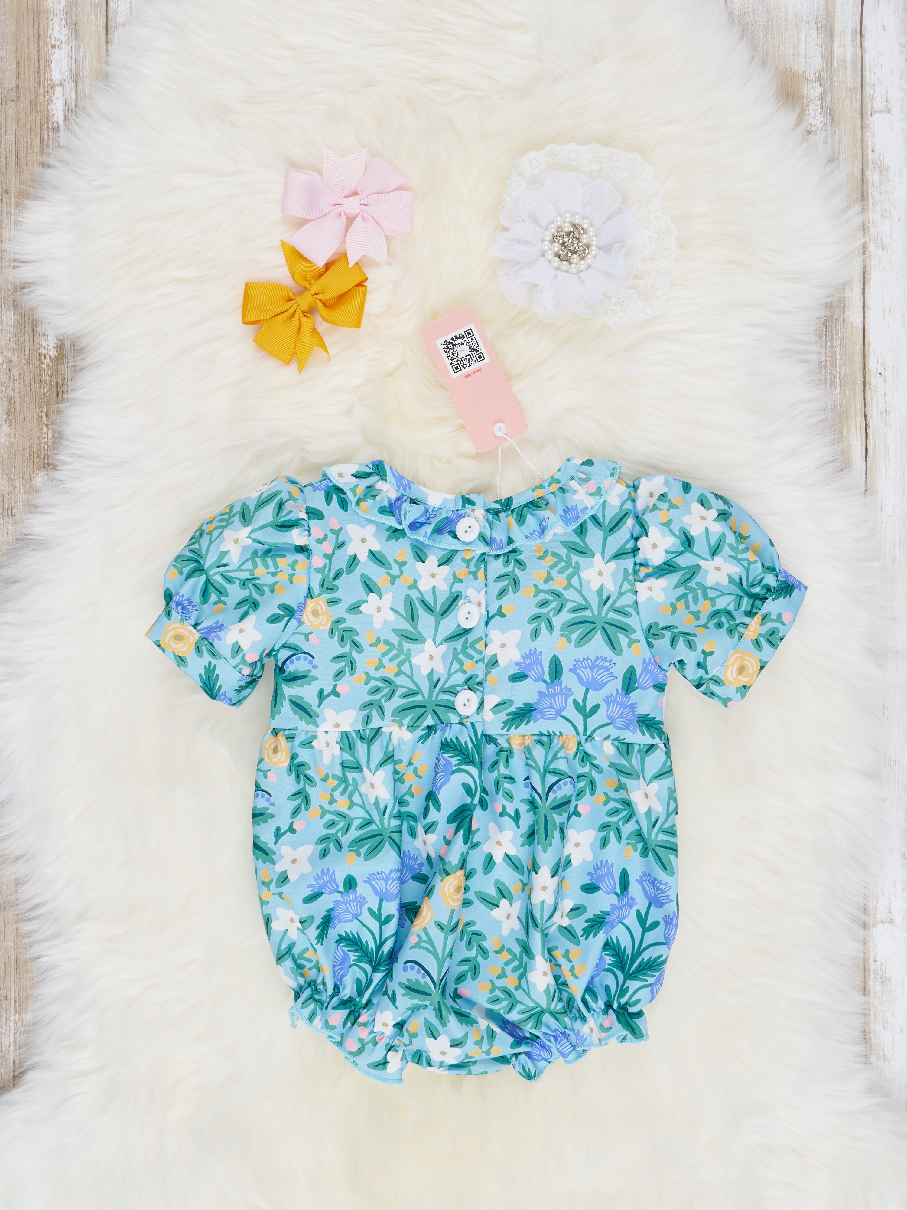 Let your little ones twin in style with this sweet sister set! Adorned with a smocked design and an embroidered "I Love Mom," this teal floral print bubble will surely melt momma's heart. The round ruffle neck adds a little extra sweetness for twice the love!