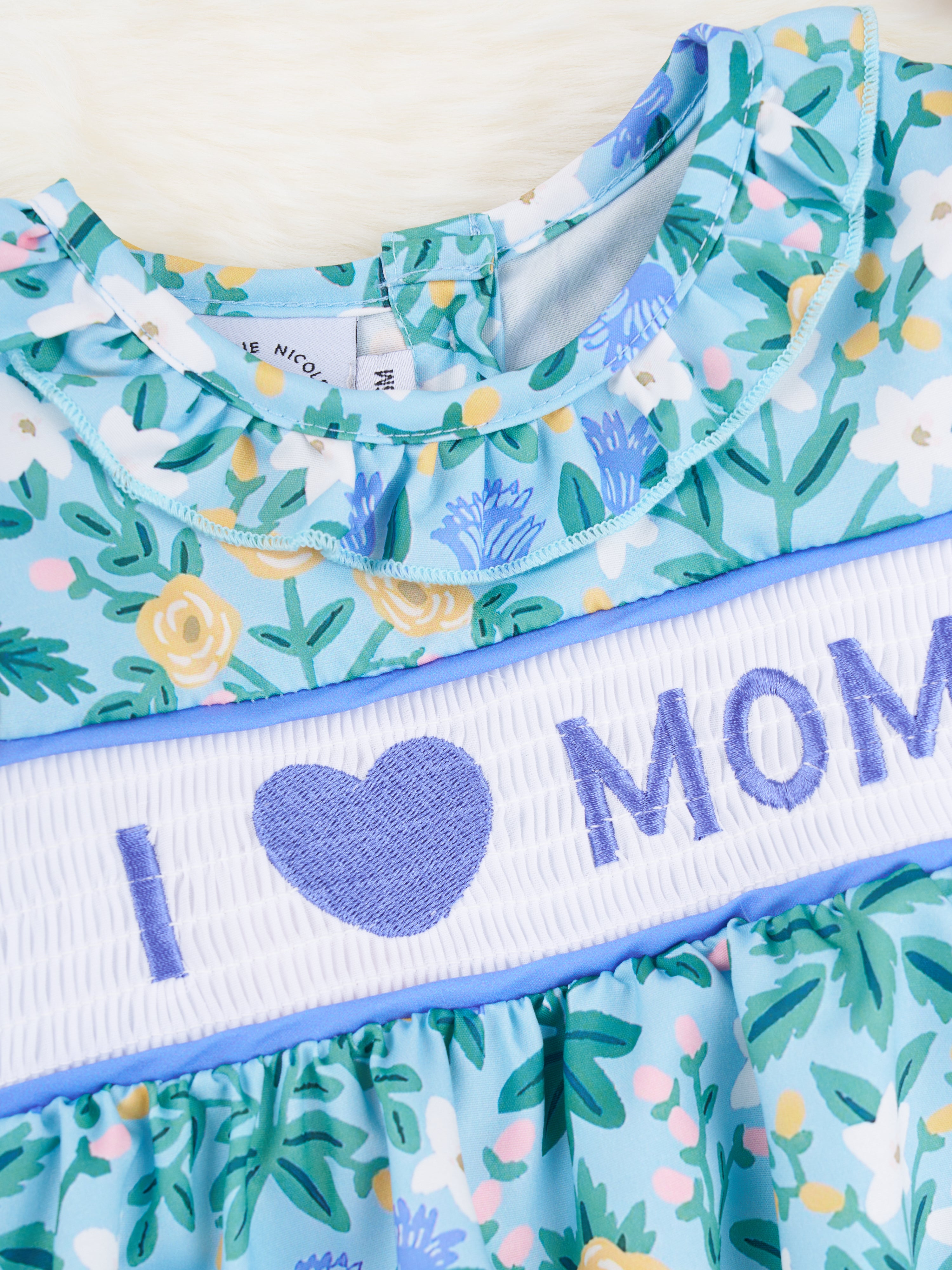 Floral "I Love Mom" Smocked Bubble