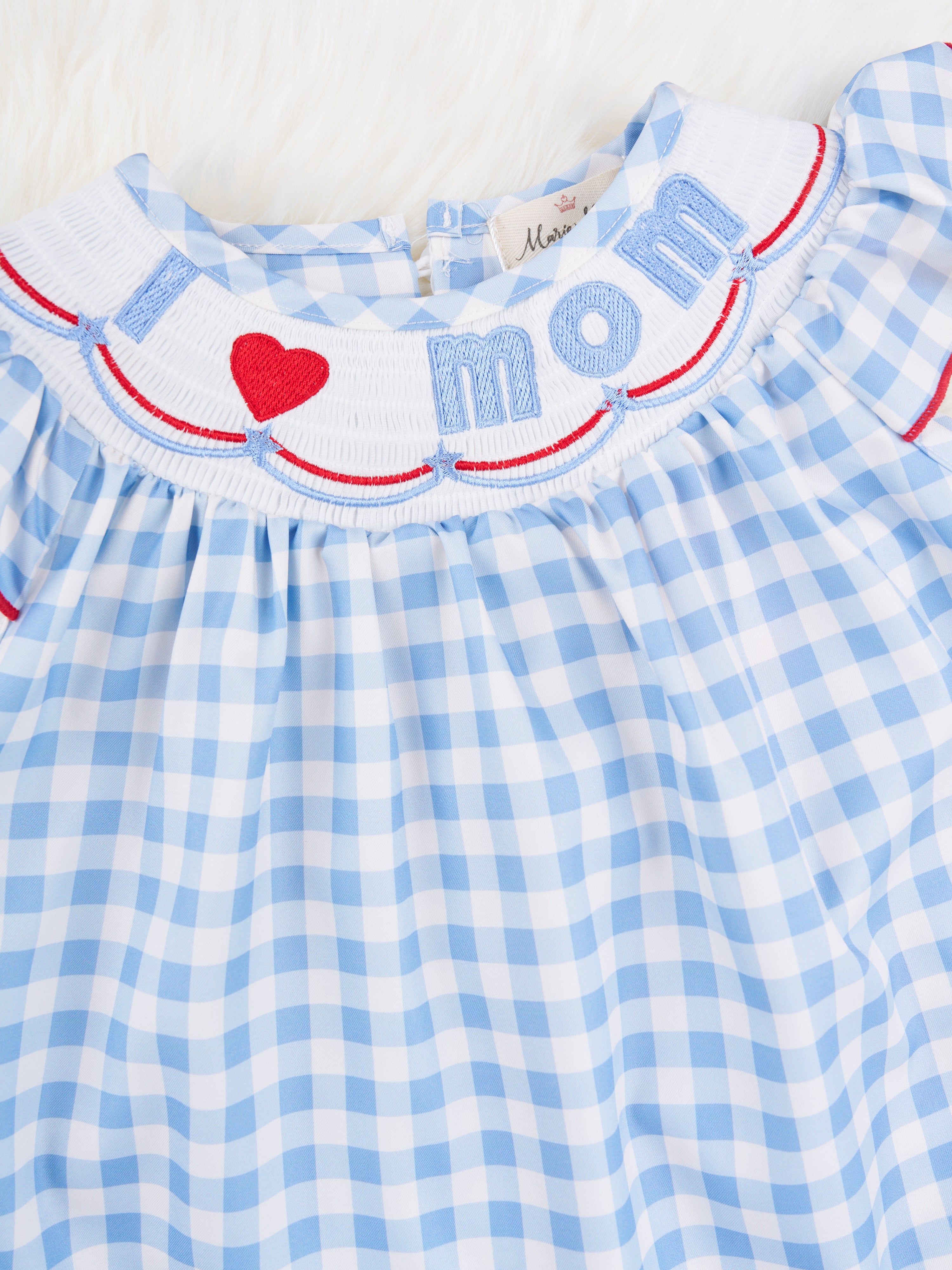 Send your little ones off in style with this adorable sibling set! They'll both be dressed to impress with the checkered gingham and hand-smocked "I Love Mom" detail. It's the cutest way to show your kiddos' love!