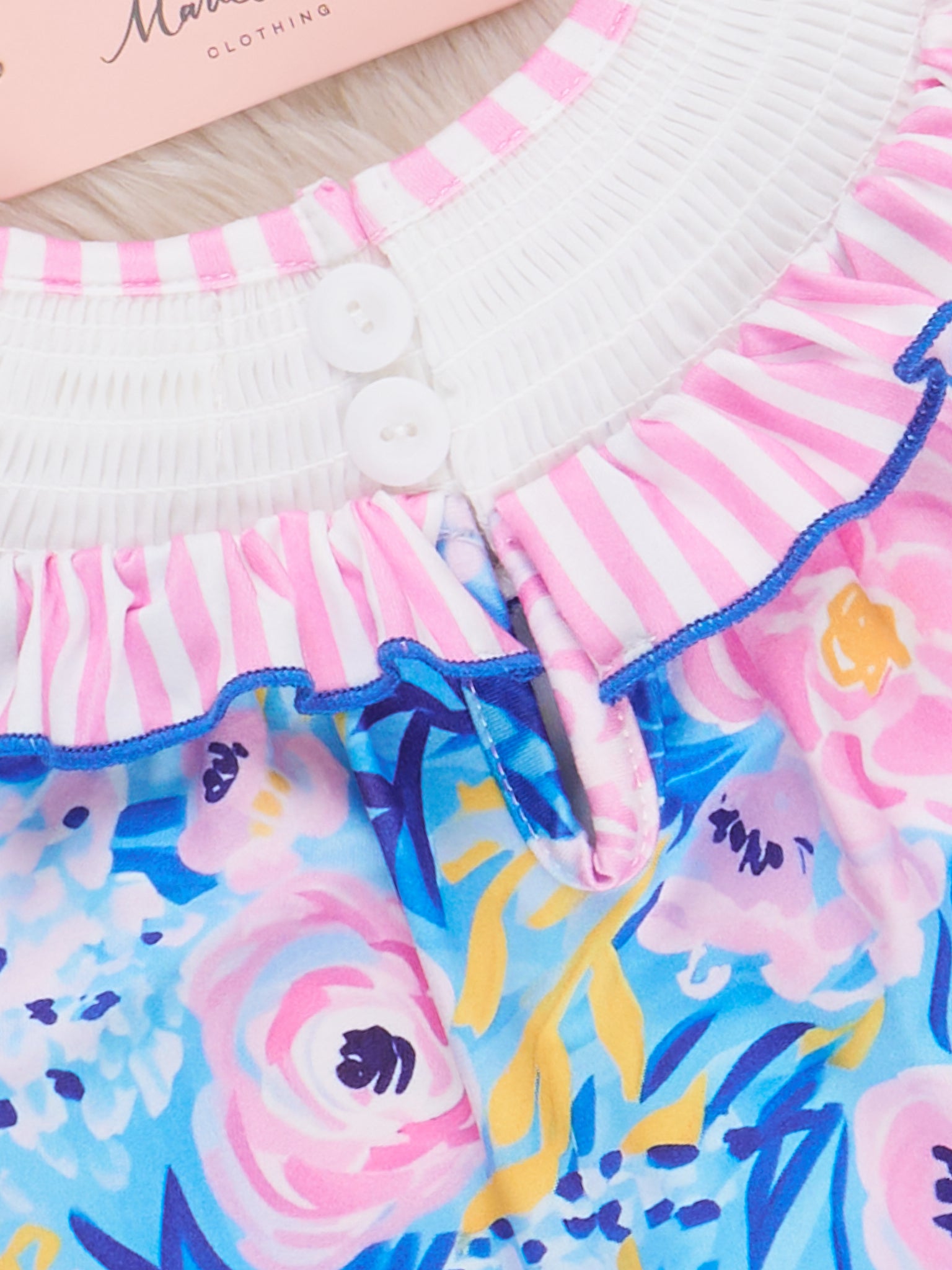 Get ready for summer with our Mama Love Smocked Dress! This adorable shift dress features a blue floral design and an embroidered "I ❤️ MAMA" over a smocked bib collar. Perfect for sisters, this set from Marie Nicole Clothing is sure to show some mama love.