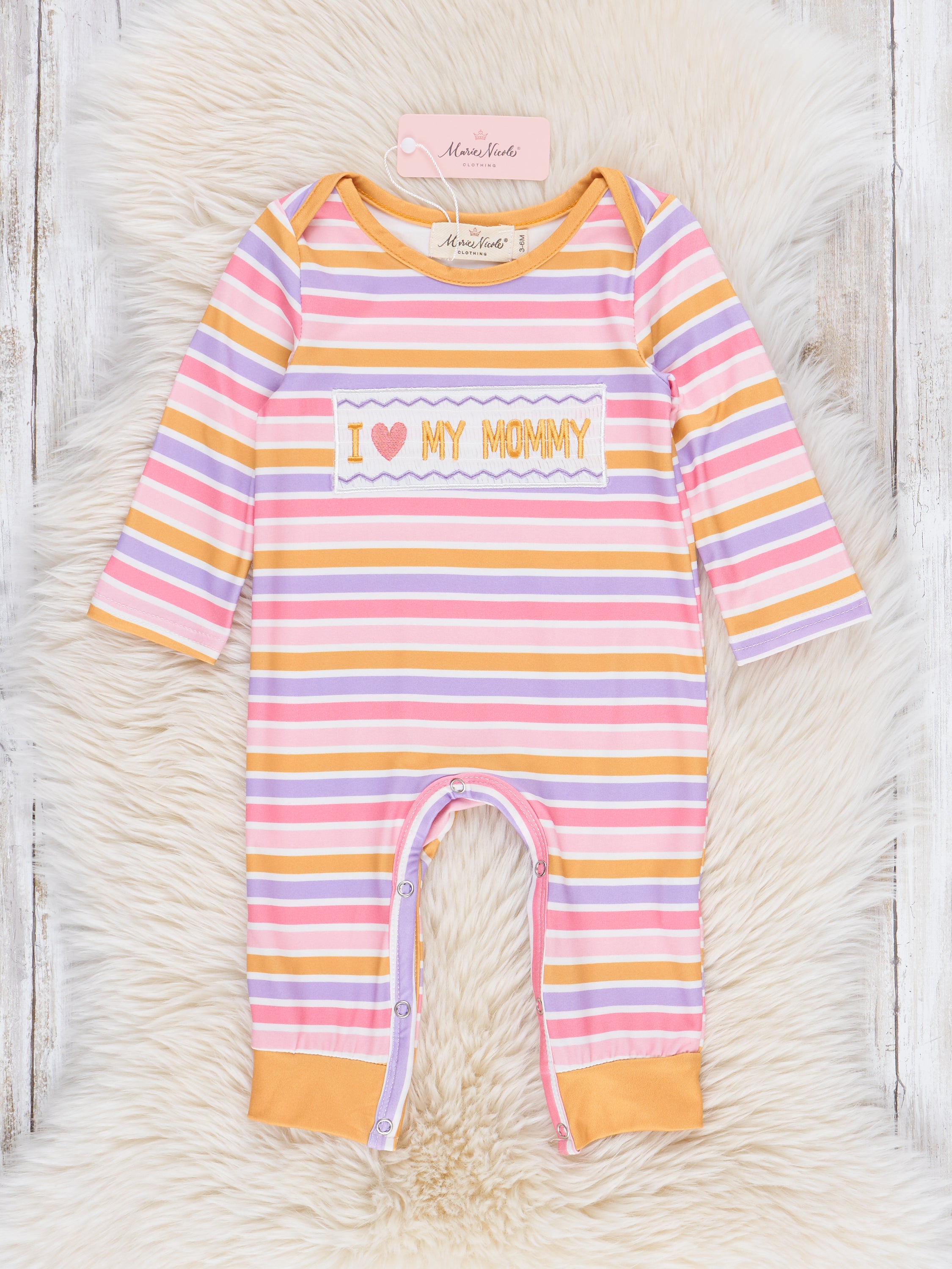 Pink & Purple Stripes Smocked Mommy Love Romper