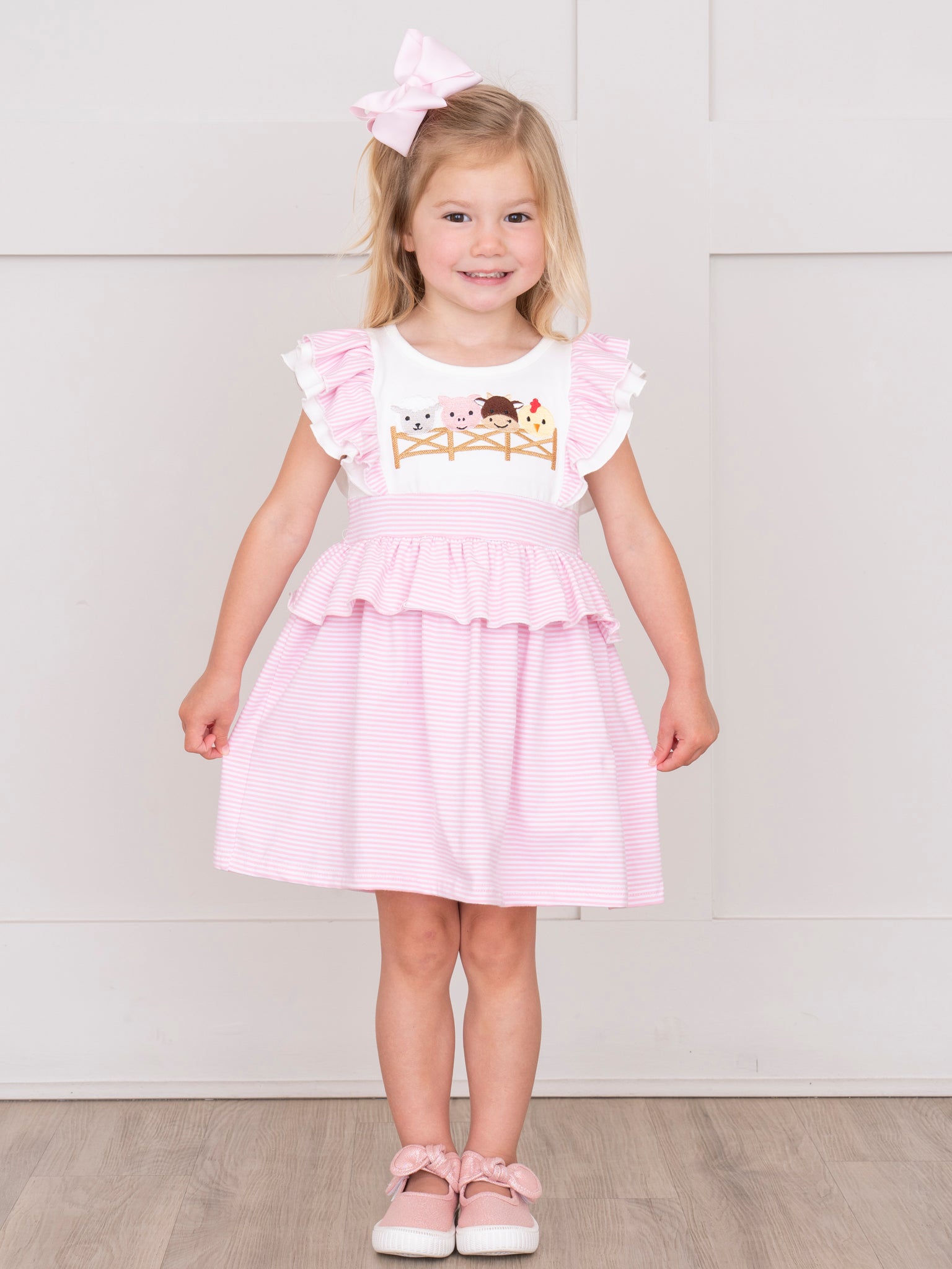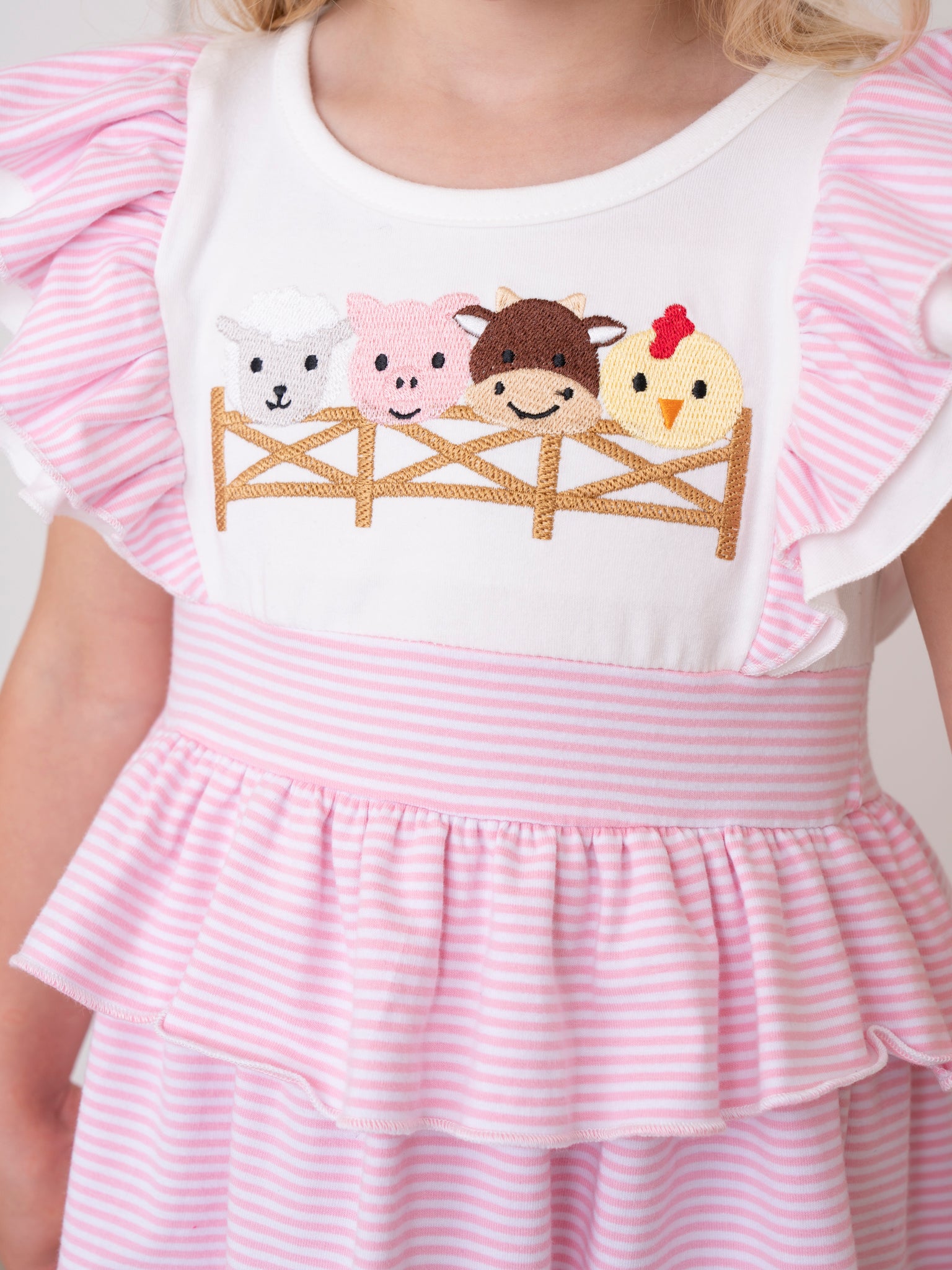 Embroidered Baby Farm Friends Ruffle Dress