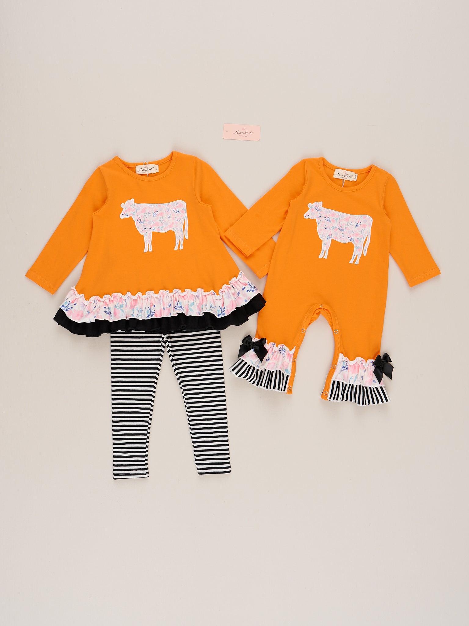 Pasture Pal Embroidered Ruffle Cow Outfit