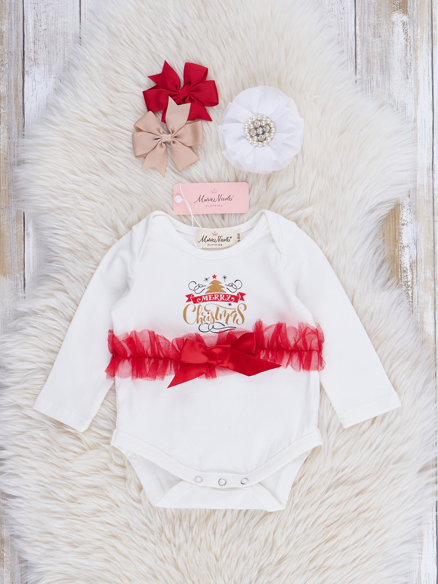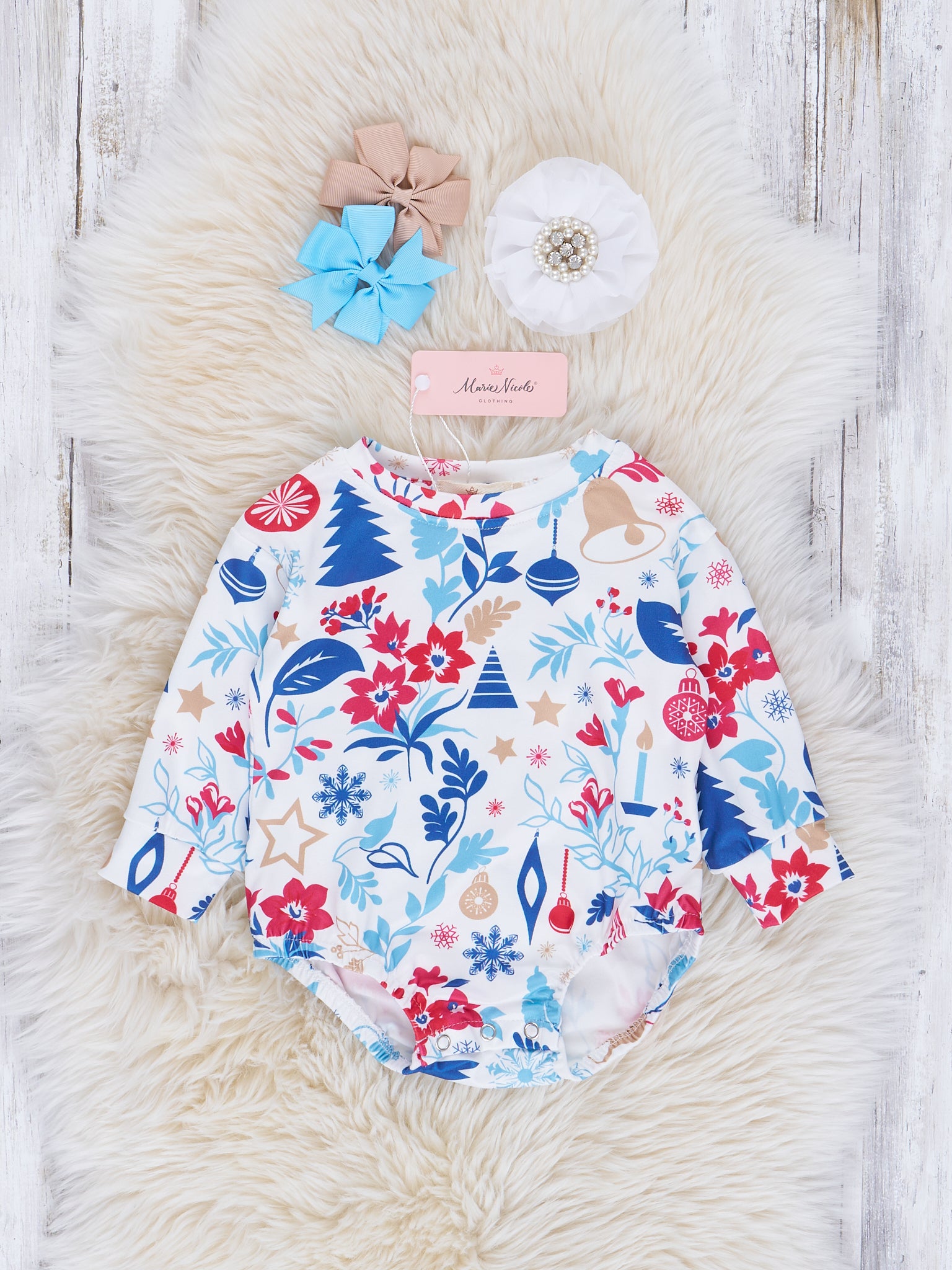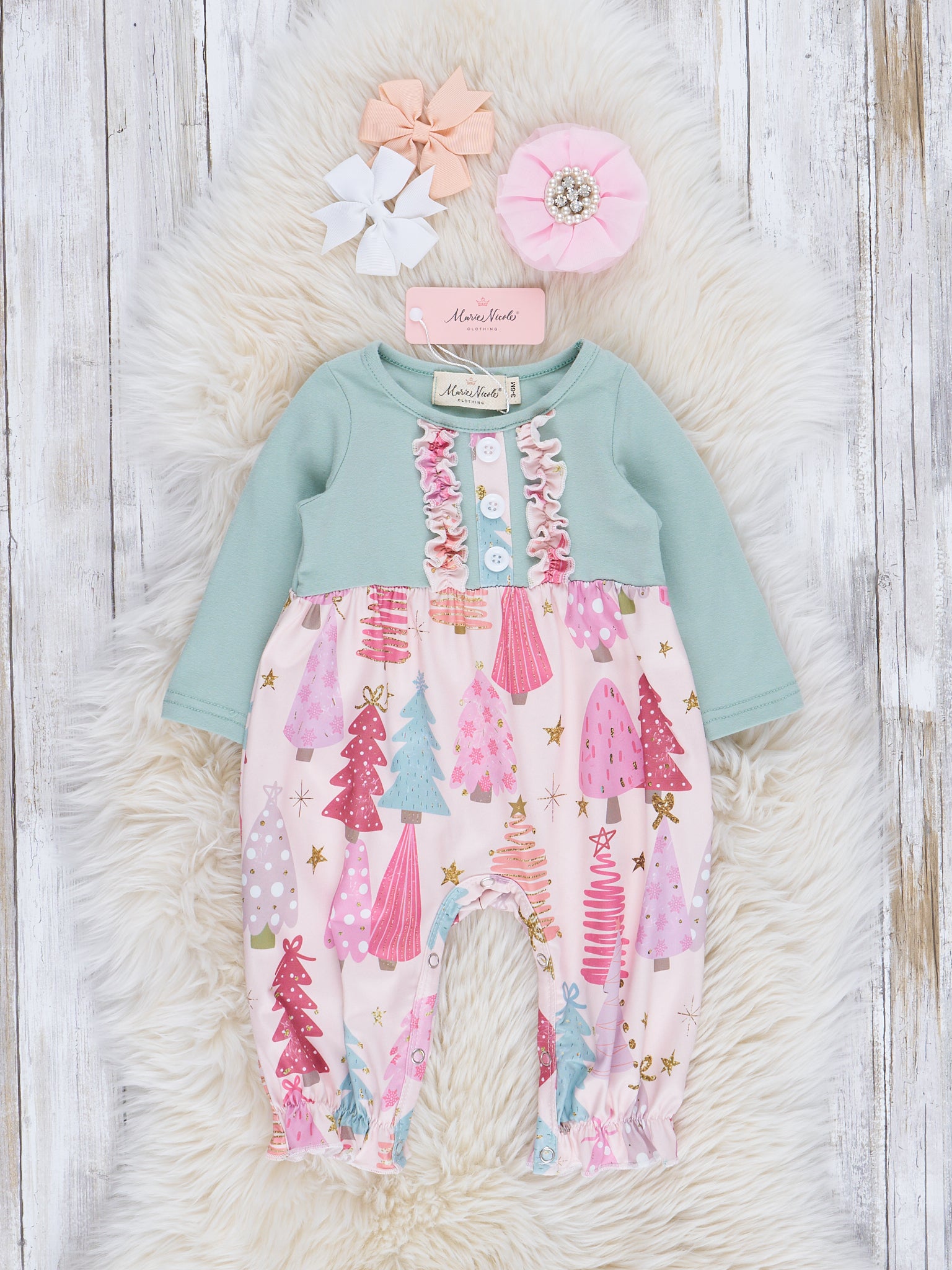 Soft Mint & Pink Christmas Trees Ruffle Romper