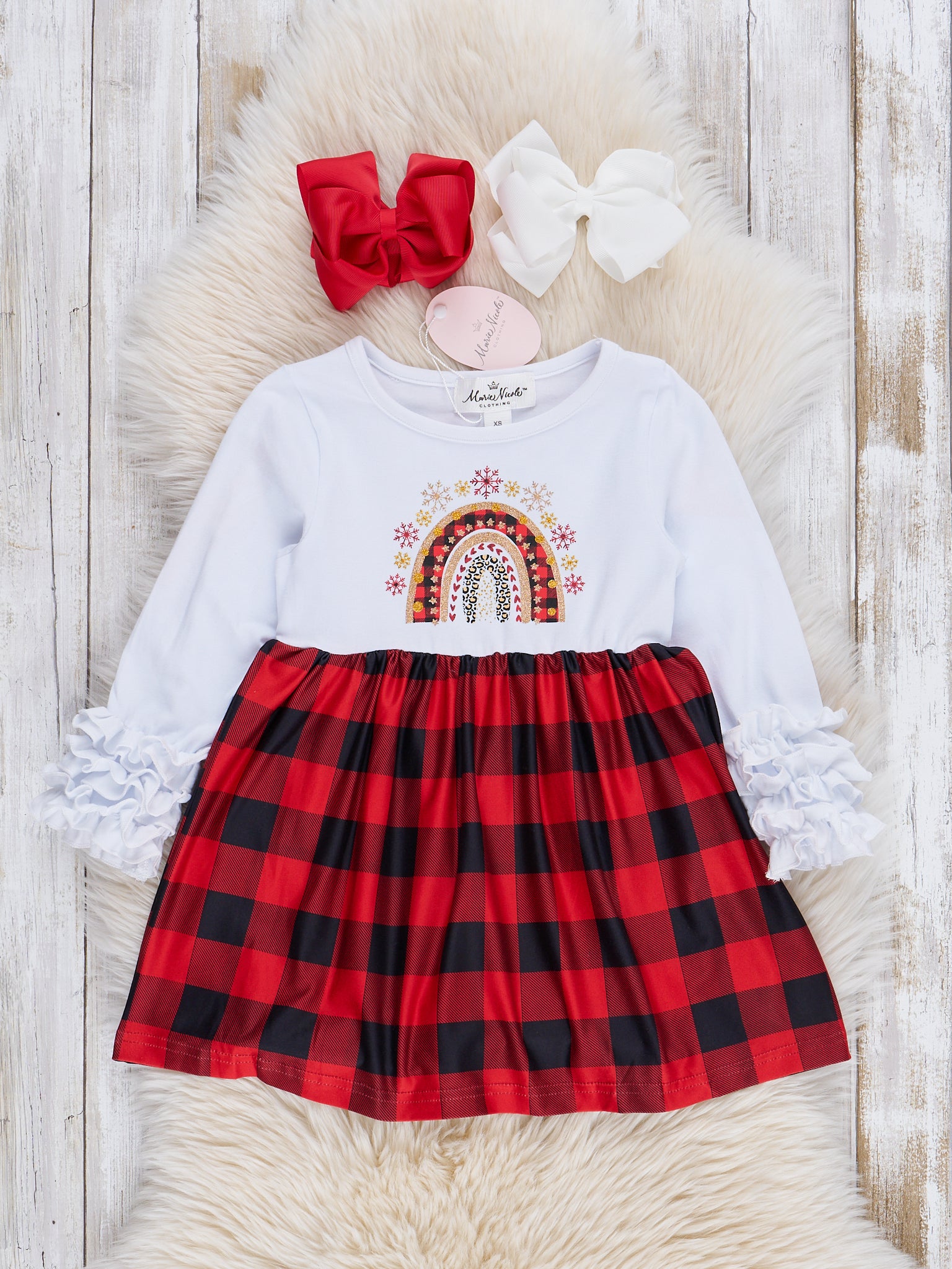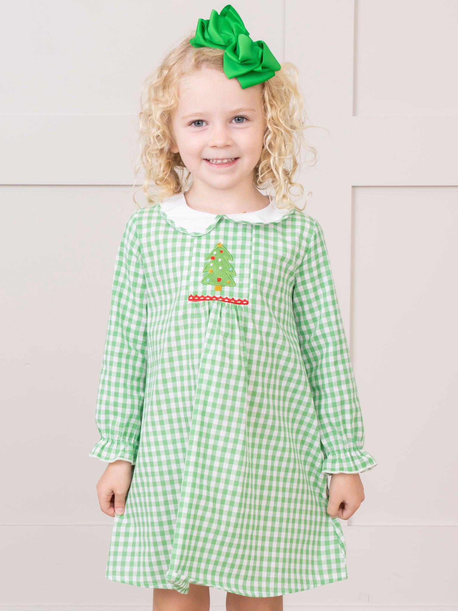 Soft Mint & Pink Christmas Trees Ruffle Dress