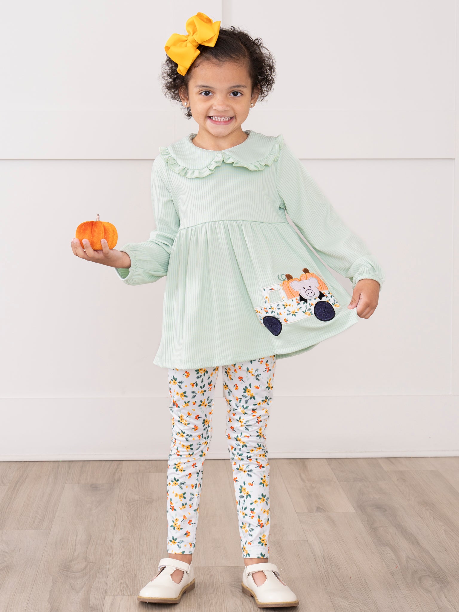 Mint Floral Piggy & Pumpkins Truck Ruffle Outfit