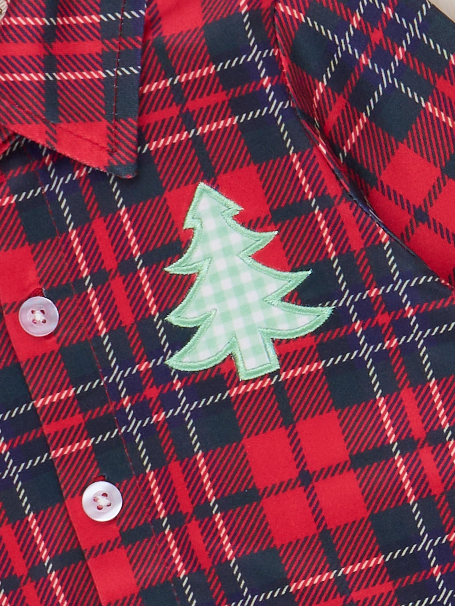 Christmas Tree Lumberjack Embroidered Button-Up Bubble