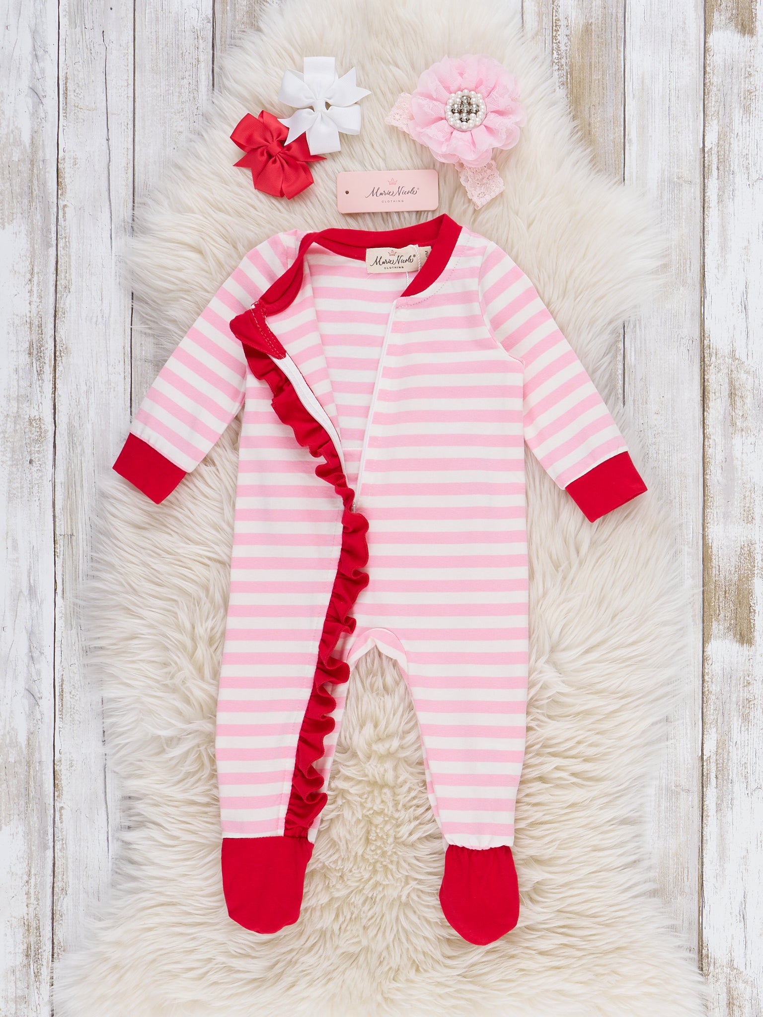 Red Peppermint Stripes & Dots Ruffle Bubble