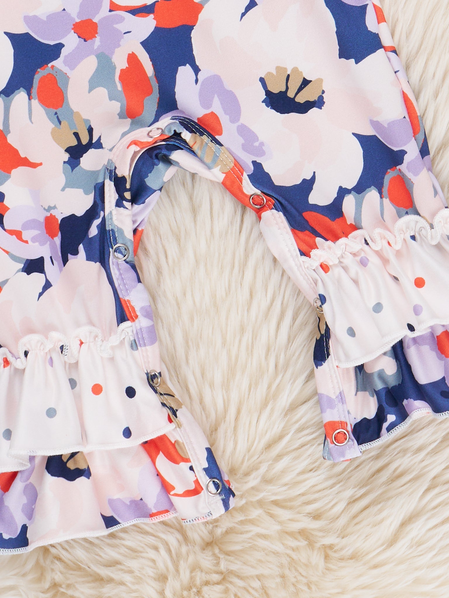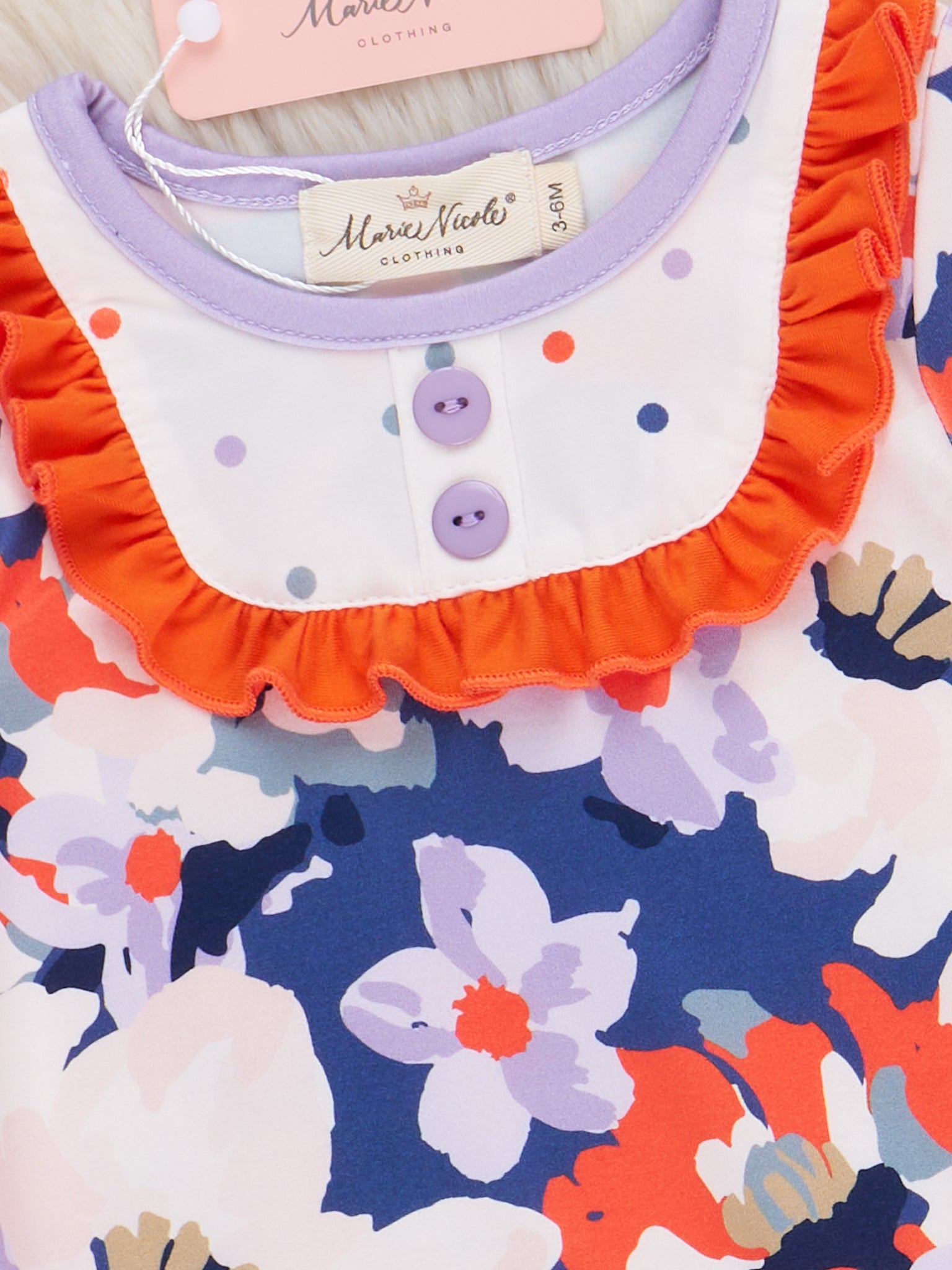 The Bloom & Dots Ruffle Romper is a sweet and playful pick for bright days and blooming adventures. Featuring a charming mix of floral blooms and classic polka dots, this romper from Marie Nicole Clothing is finished with soft ruffle details for added sweetness. Lightweight, breathable, and full of cheerful charm, it’s perfect for twirling through playdates, parties, or any day she wants to shine.