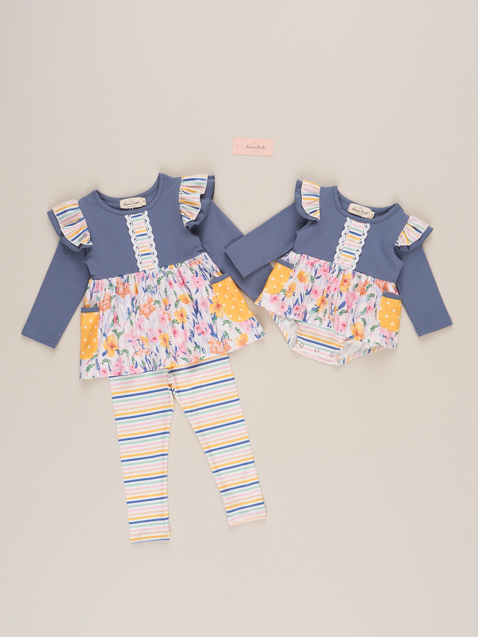 Delight in playful blooms with our Garden Frolic Ruffle Bubble! This adorable girls’ bubble from Marie Nicole Clothing features a cheerful garden print, soft ruffle accents, and bow-tied straps for extra sweetness. Perfect for sunny adventures, springtime photos, or carefree days filled with fun and flowers!